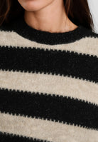 Il maglione a righe da donna SUSY MIX è un capo caldo e di tendenza, ideale per la stagione autunnale e invernale. Realizzato con una soffice miscela di lana e mohair, assicura comfort, morbidezza e una piacevole sensazione avvolgente durante i mesi più freddi. Il design a righe orizzontali dona un tocco moderno e dinamico, mentre le micro paillettes inserite nel tessuto aggiungono una nota luminosa e raffinata che valorizza ogni look. Il girocollo classico e la vestibilità regolare rendono questo maglione perfetto per completare outfit casual chic o abbinamenti più eleganti. SUSY MIX propone un capo versatile e di qualità, pensato per la donna che ama vestire alla moda con un tocco di personalità. Capo prodotto in Italia. Made in Italy
