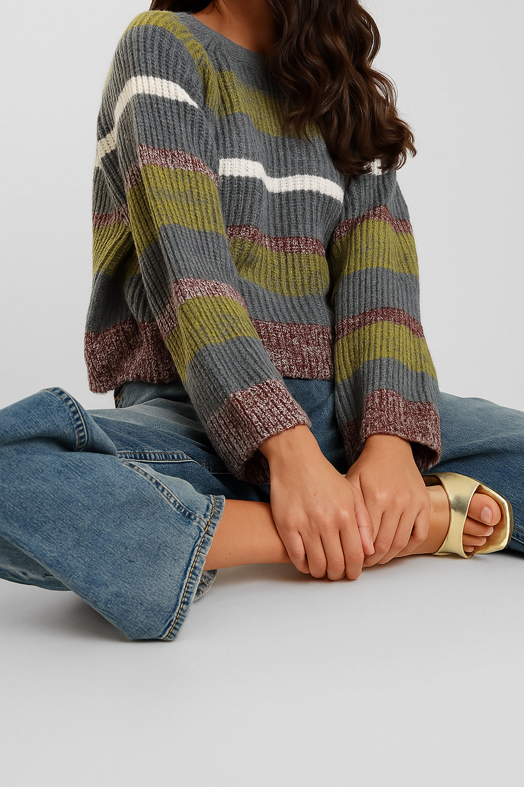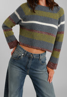 SUSY MIX Maglione Rigato Multicolor da Donna in Punto Pannocchia