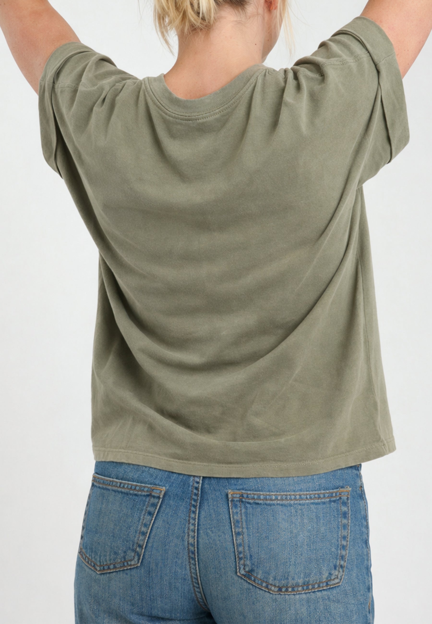 La lavorazione marmorizzata e la stampa frontale aggiungono carattere al capo, rendendolo dinamico e attuale. Il tessuto in cotone assicura traspirabilità e una sensazione piacevole sulla pelle, perfetta per affrontare le giornate più calde con naturalezza. Facile da abbinare a jeans, pantaloni o gonne casual, questa t-shirt rappresenta una scelta versatile per il guardaroba femminile estivo.