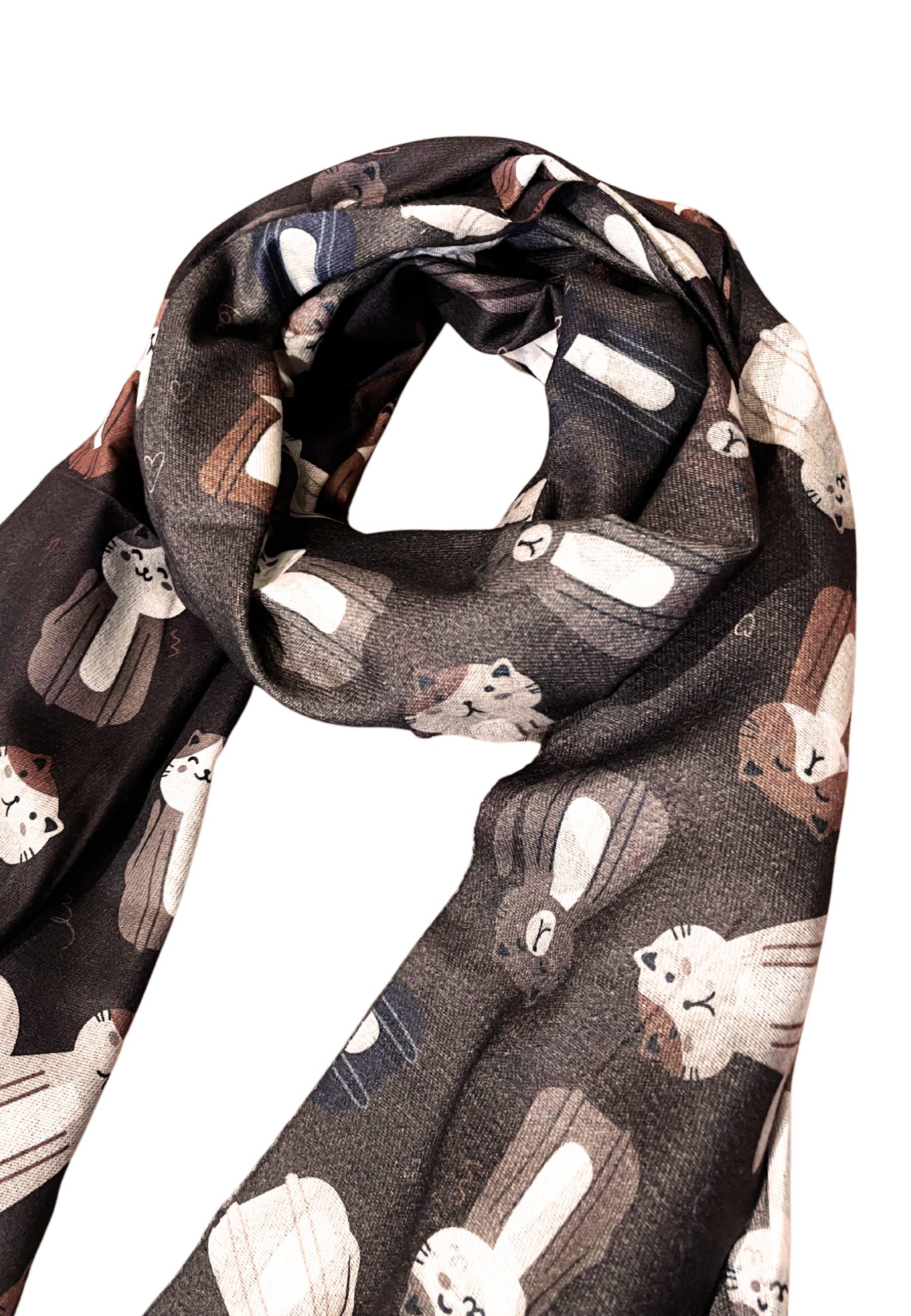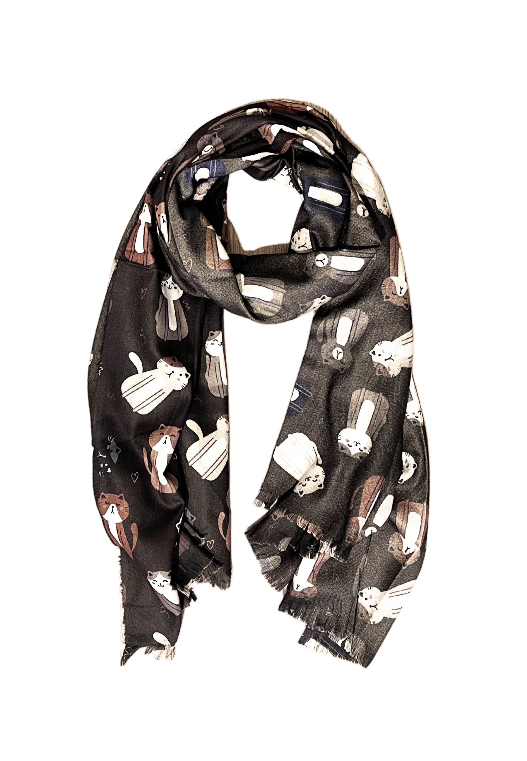 SUSYMIX Stola Donna con Stampa Gatti Elegante e Trendy