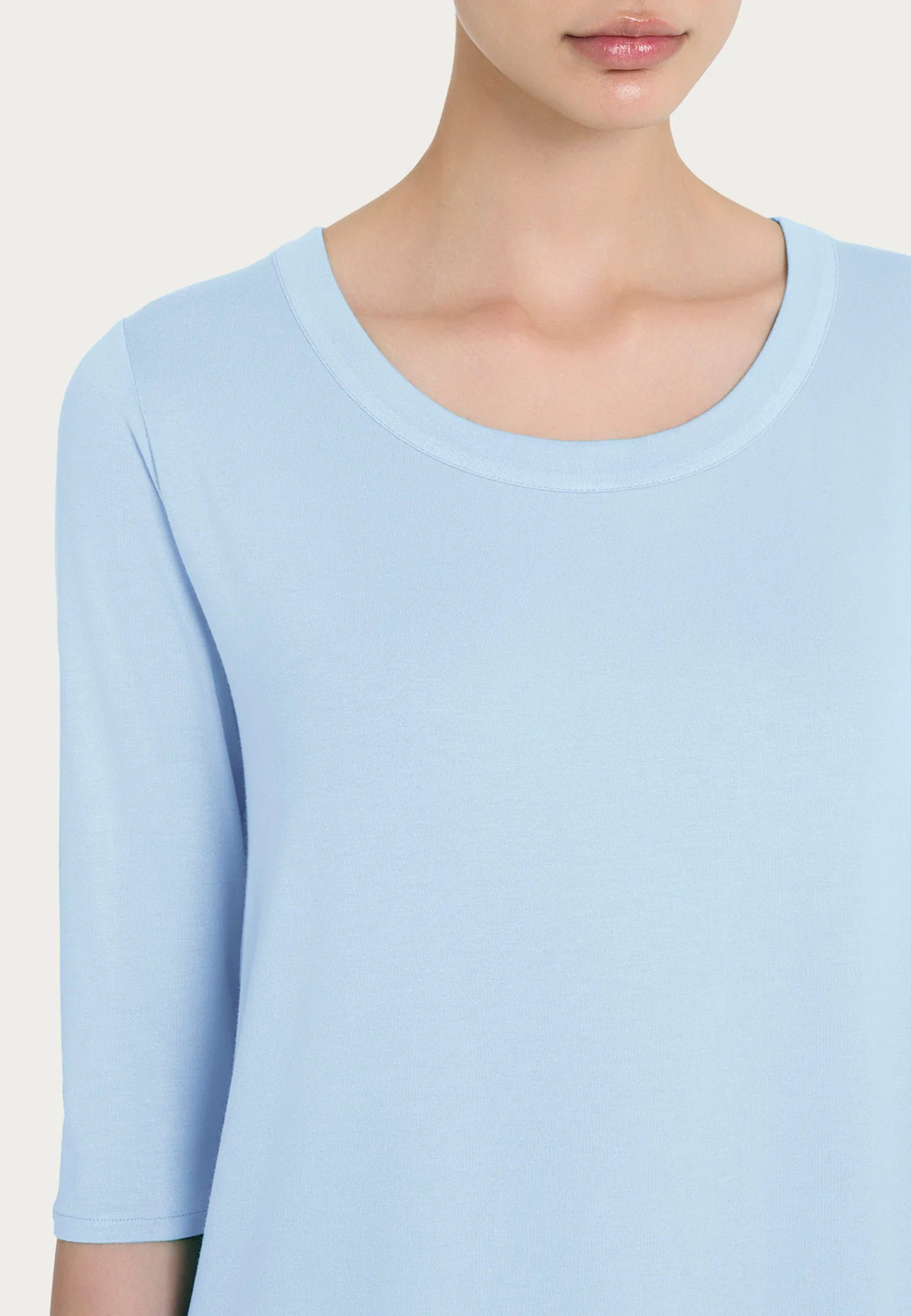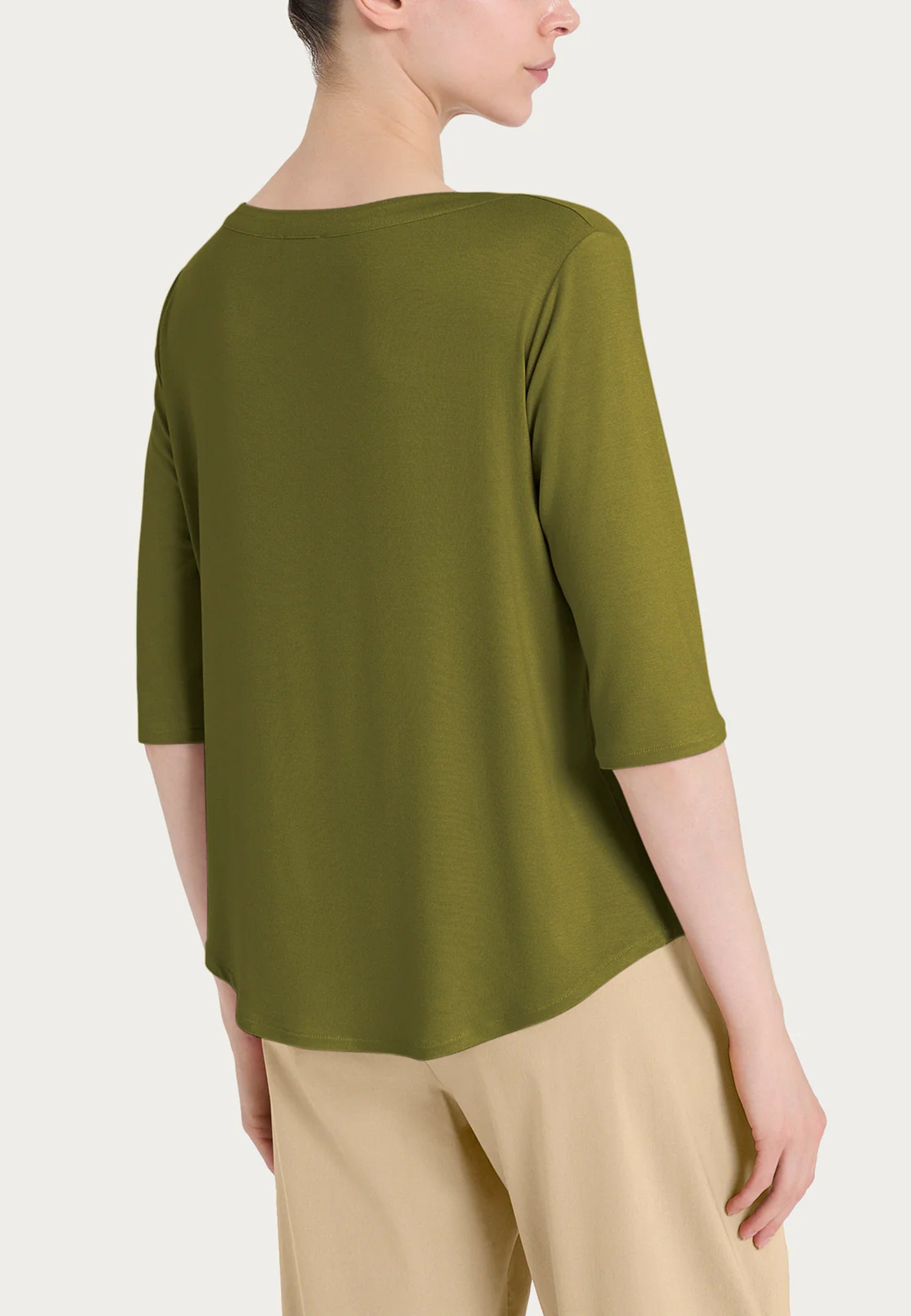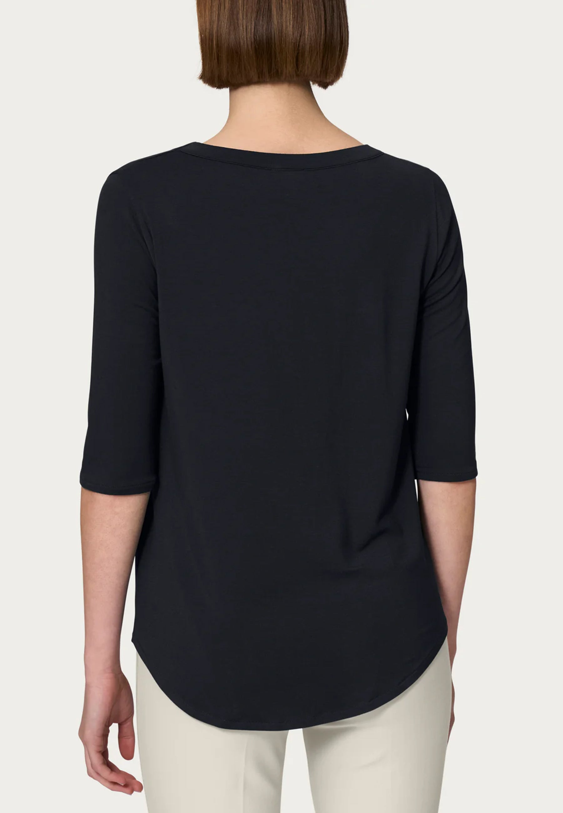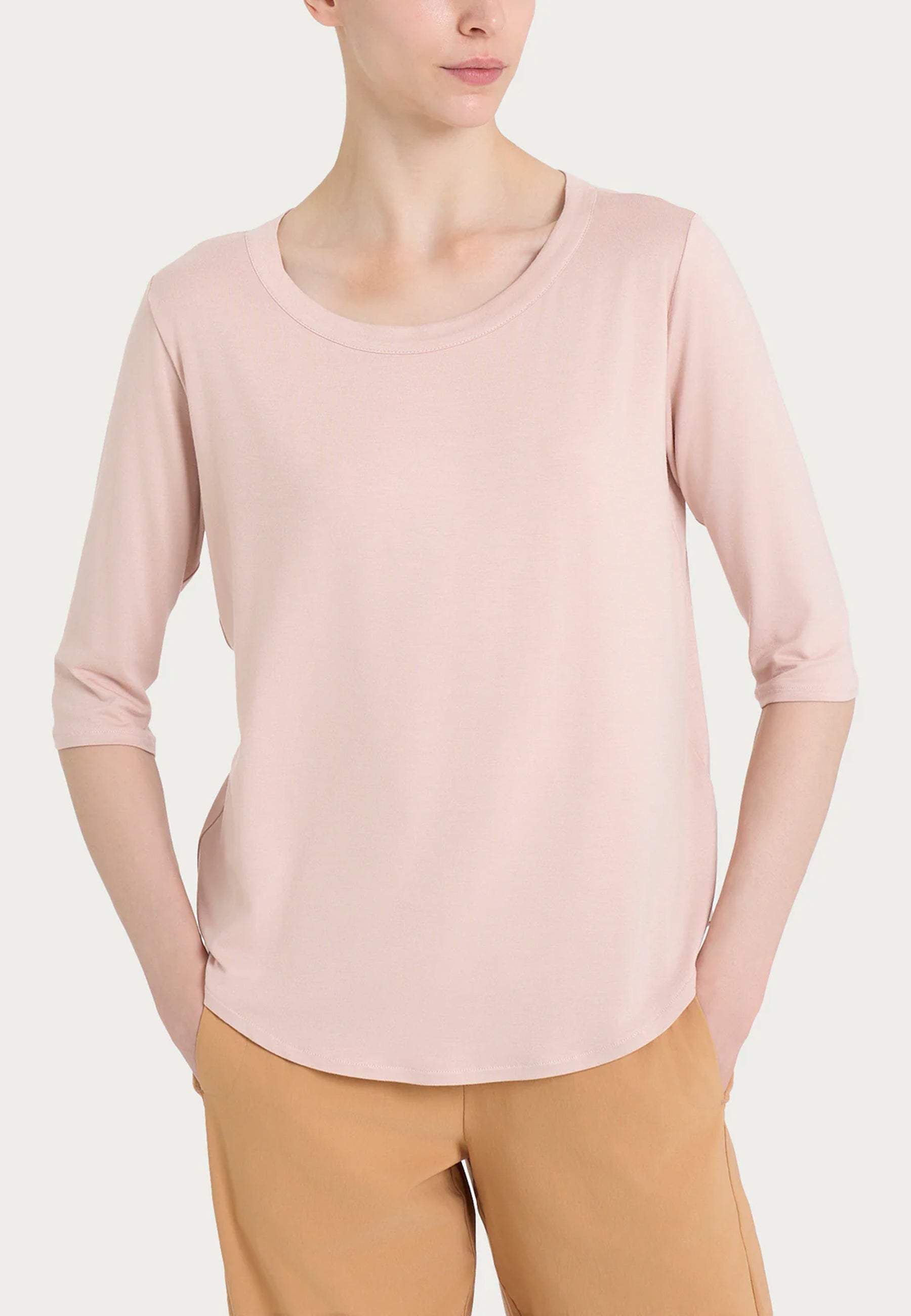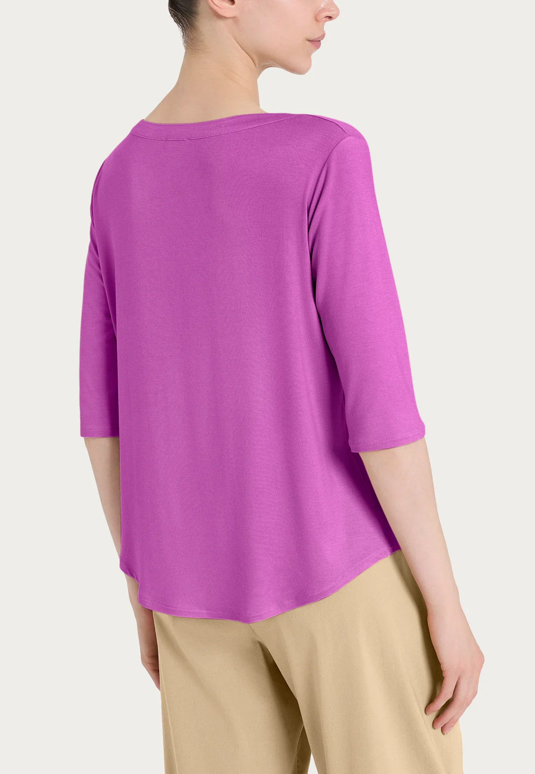 T-shirt donna in viscosa Ragno con manica a tre quarti, ideale per comfort quotidiano e stile essenziale.