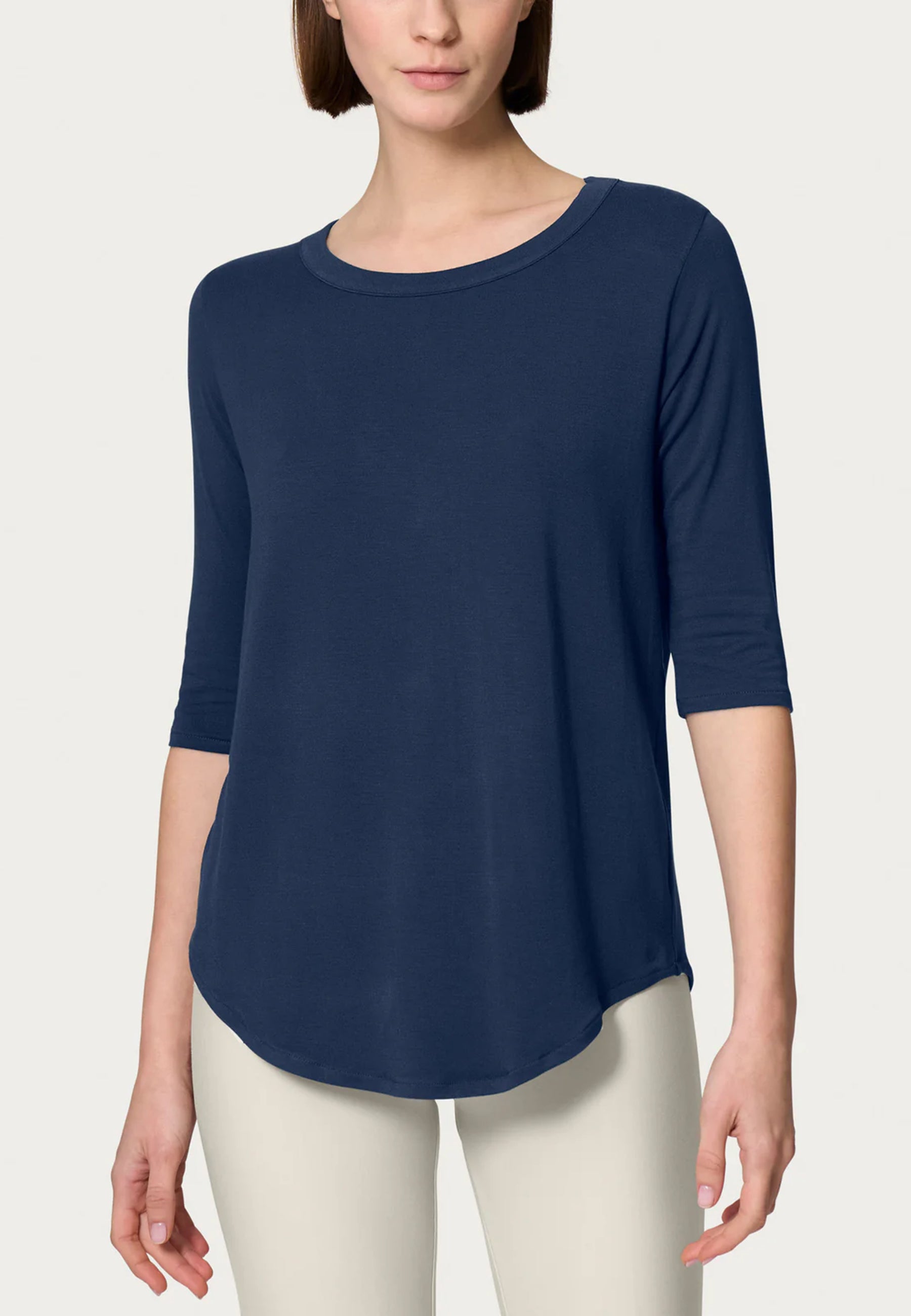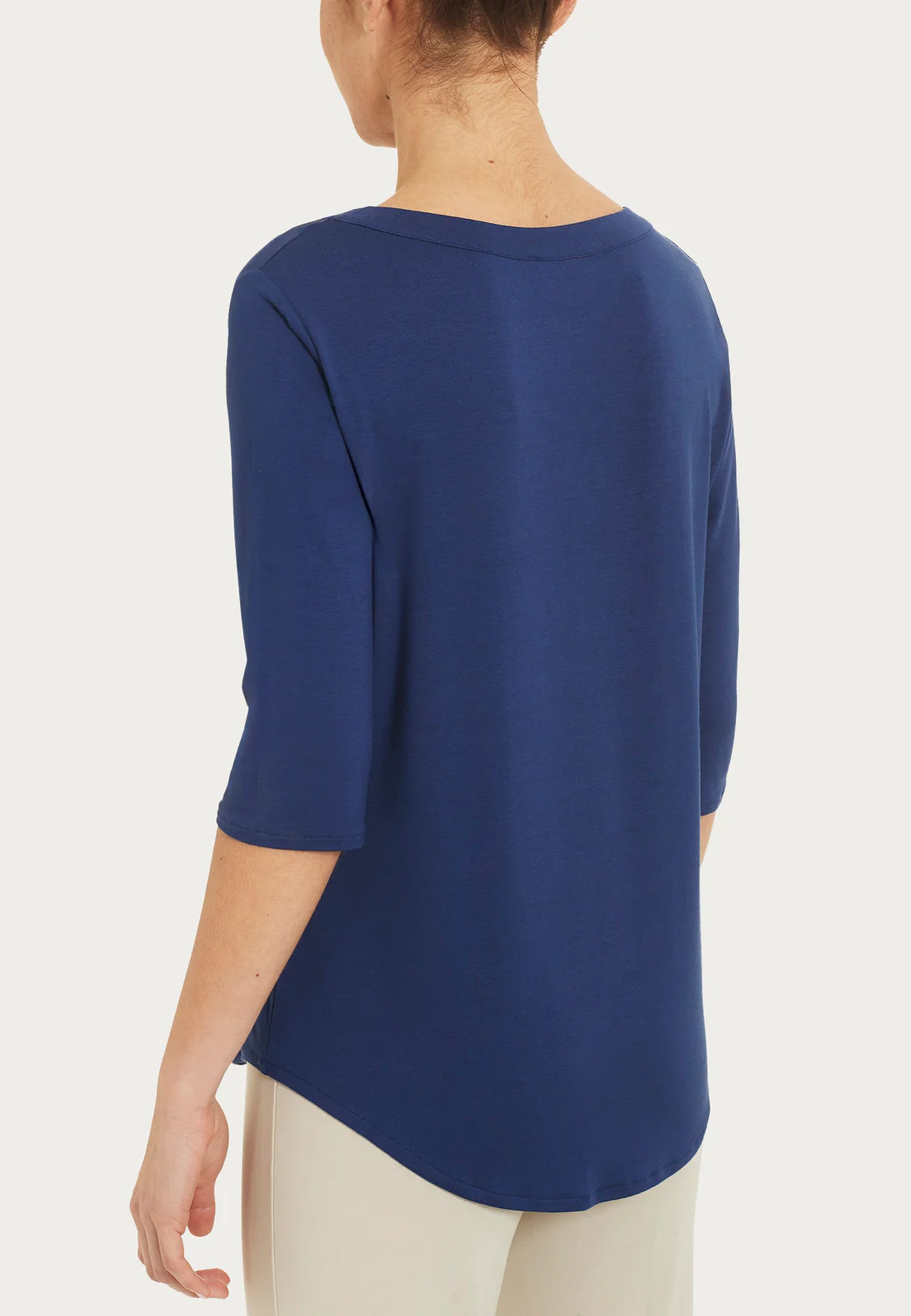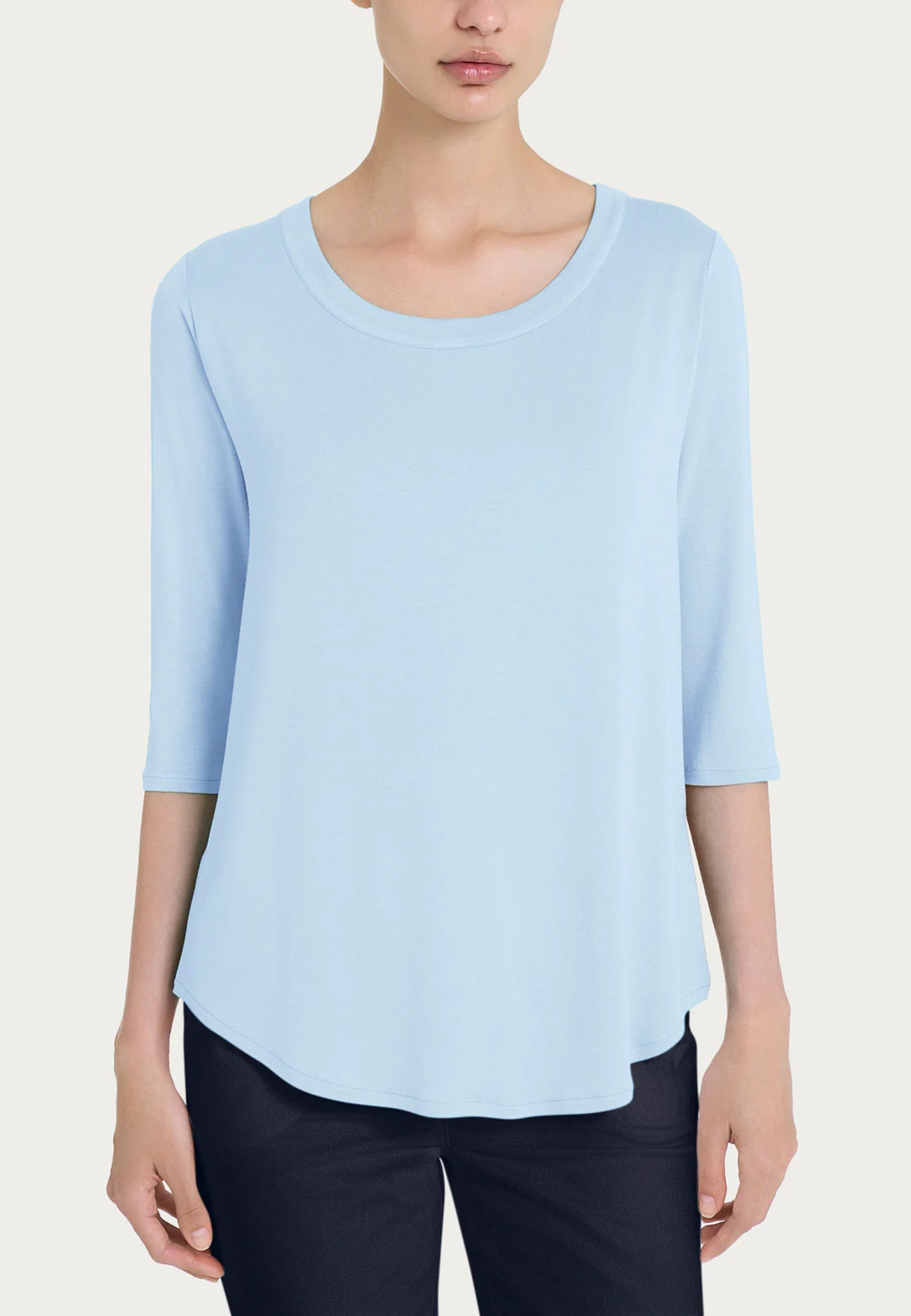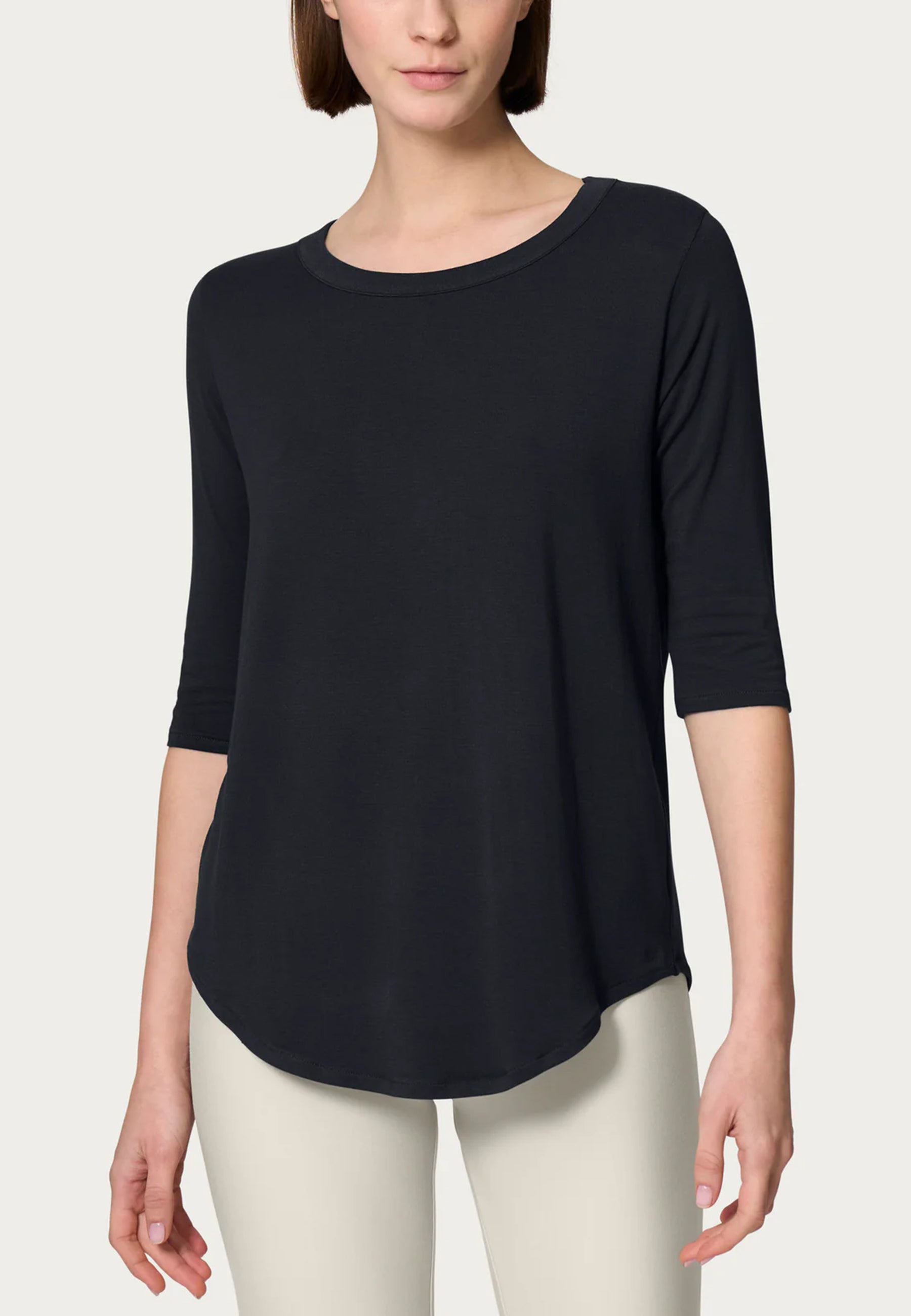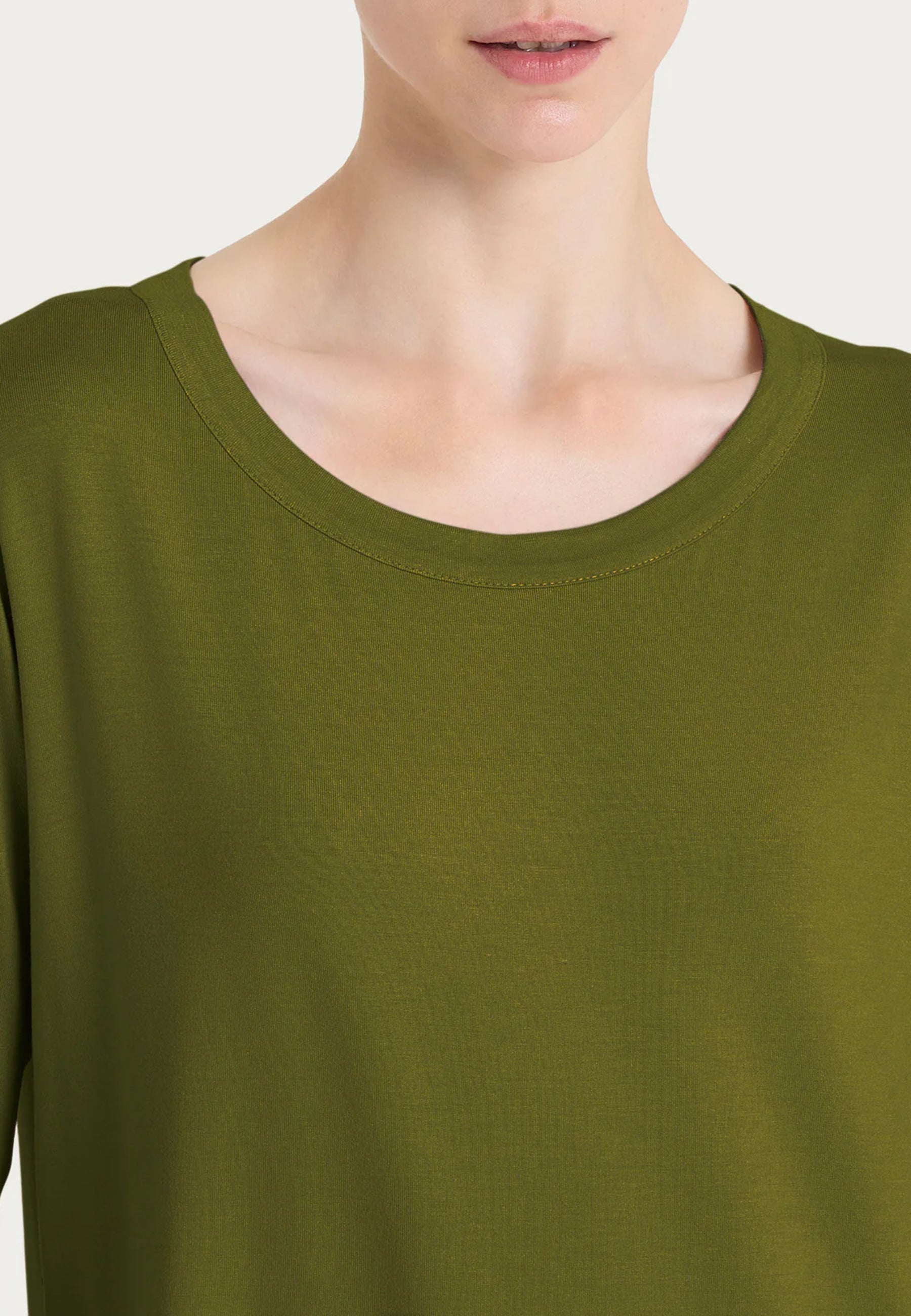 T-shirt donna in viscosa Ragno con manica a tre quarti, ideale per comfort quotidiano e stile essenziale.