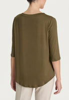 T-shirt donna in viscosa Ragno con manica a tre quarti, ideale per comfort quotidiano e stile essenziale.