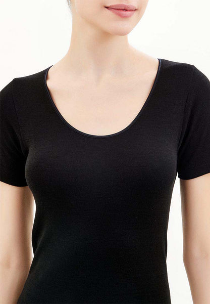 3 Magliette intime donna con girocollo a manica corta in misto lana fuori e cotone sulla pelle articolo RAGNO 072457. Questo capo fa parte della linea Sintonia realizzata in particolare tessuto doubleface in lana e acrilico fuori e puro cotone sulla pelle che unisce le proprietà termoregolanti della lana, la praticità dell'acrilico e la morbidezza del cotone. (Il prezzo si riferisce alla confezione da 3 magliette).