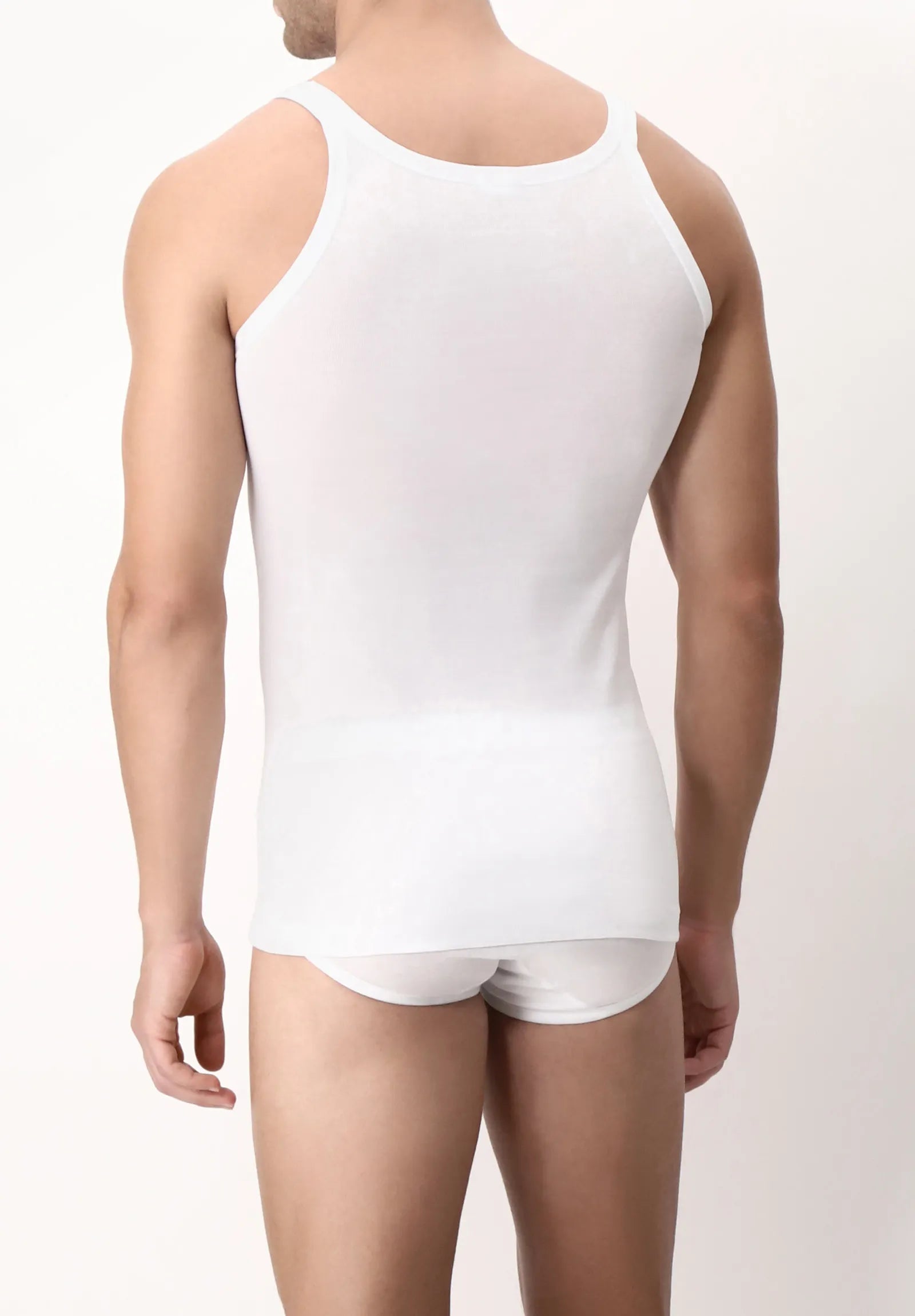 Canottiera Spalla Stretta in 100% pregiato cotone filo di scozia realizzato senza cuciture ai fianchi che conferisce al capo una naturale elasticità, per il massimo comfort e vestibilità. (Il prezzo si riferisce alla confezione da 6 canottiere).