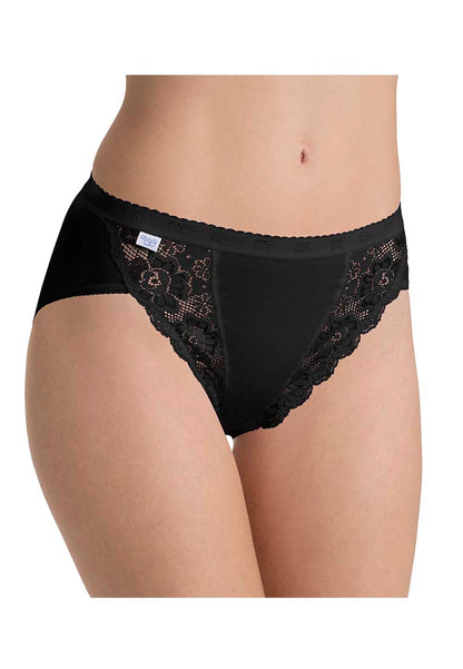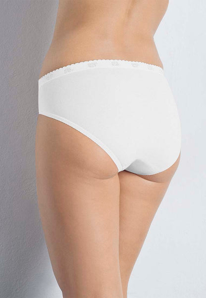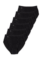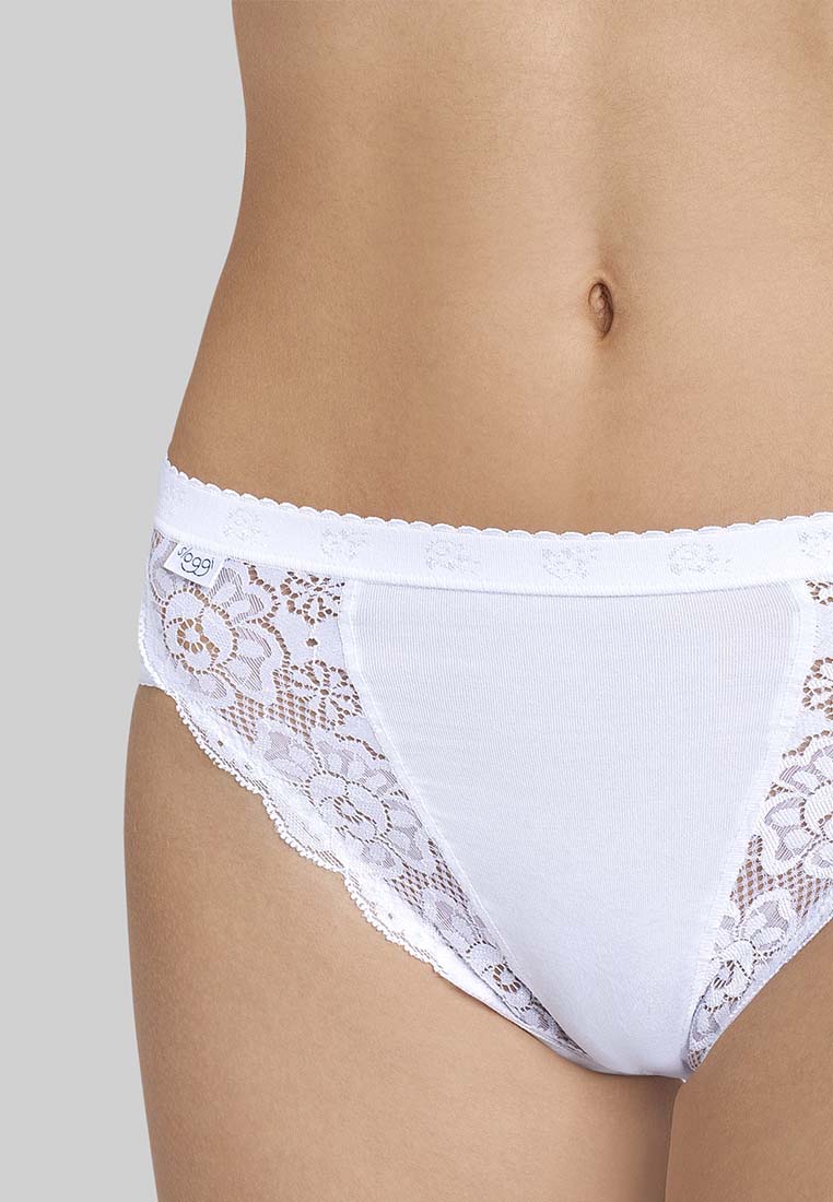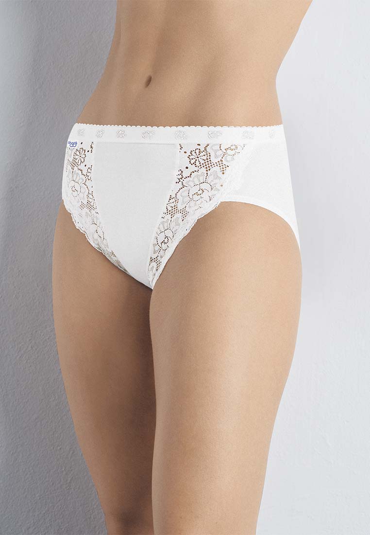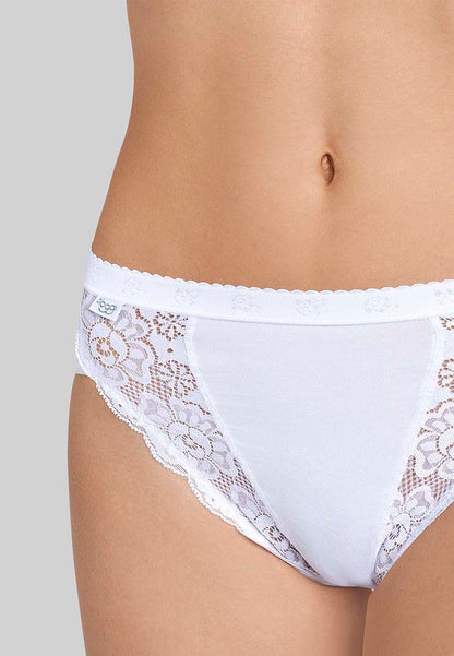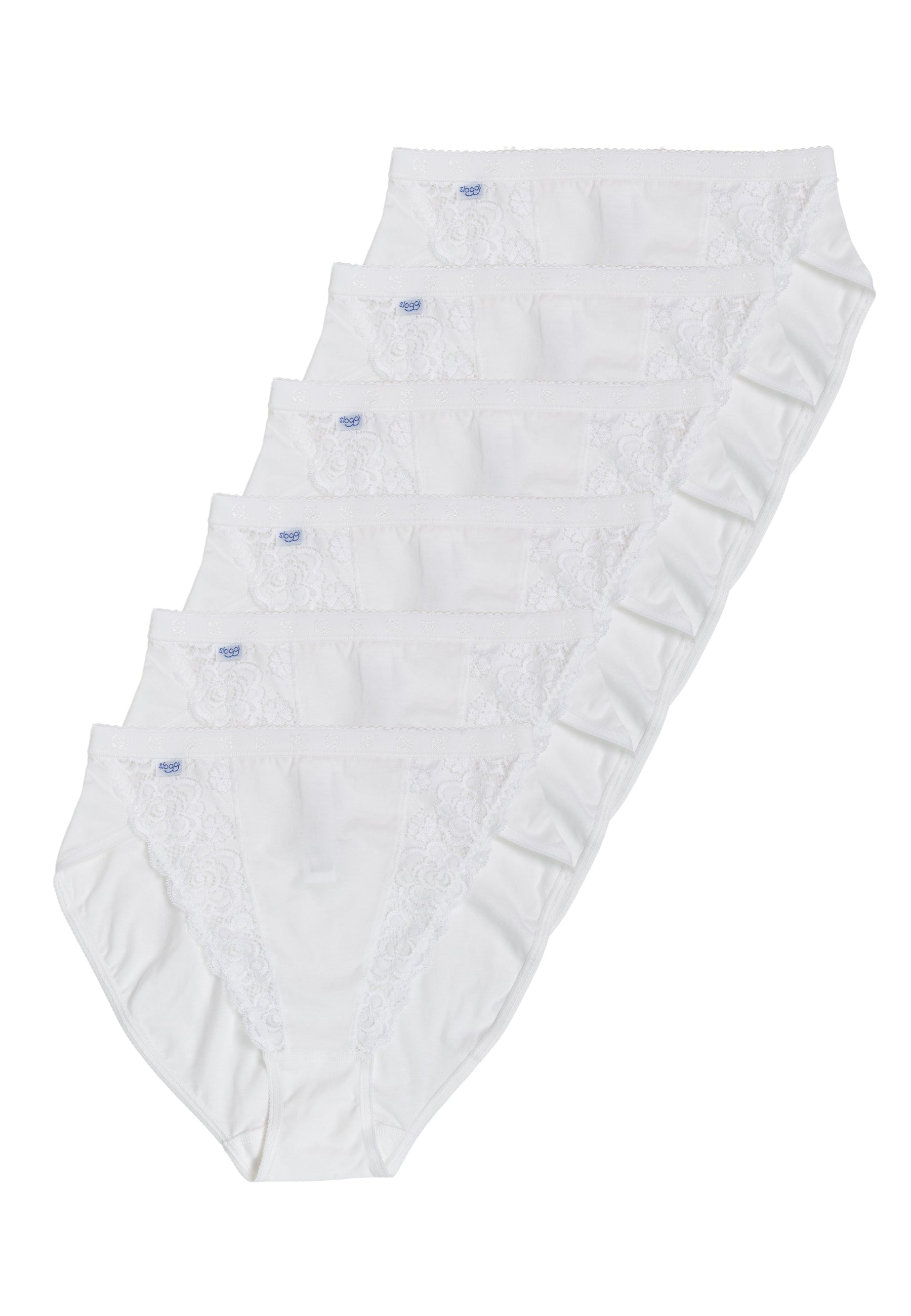 Slip sgambato da donna con inserti in pizzo elasticizzato sulla parte anteriore realizzato con una maglina di cotone elasticizzato che conferisce al capo una morbidezza e una comodità unica. A seconda della quantità ordinata la confezione potrebbe cambiare. (Il prezzo si riferisce alla confezione da 6 slip).