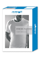T-shirt intima classica con girocollo basso realizzata in pregiato jersey 100% cotone filo di scozia senza cuciture ai fianchi. Questo filato conferisce al capo una perfetta vestibilità e comodità. (Il prezzo si riferisce alla confezione da 6 t-shirt).