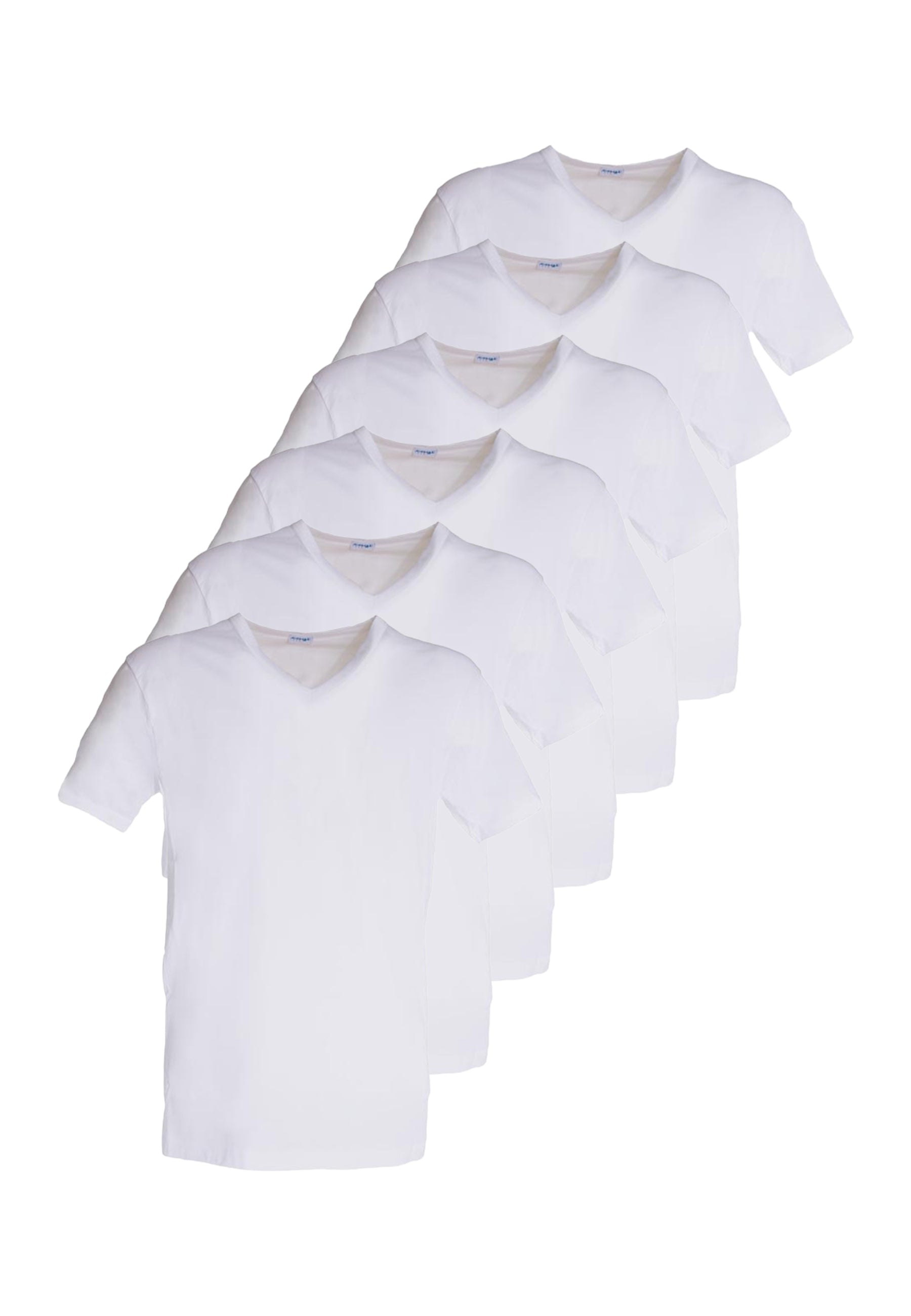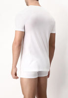 T-shirt intima con scollo a V realizzata in pregiato jersey 100% cotone filo di scozia senza cuciture ai fianchi. Questo filato conferisce al capo una perfetta vestibilità e comodità. (Il prezzo si riferisce alla confezione da 6 t-shirt).