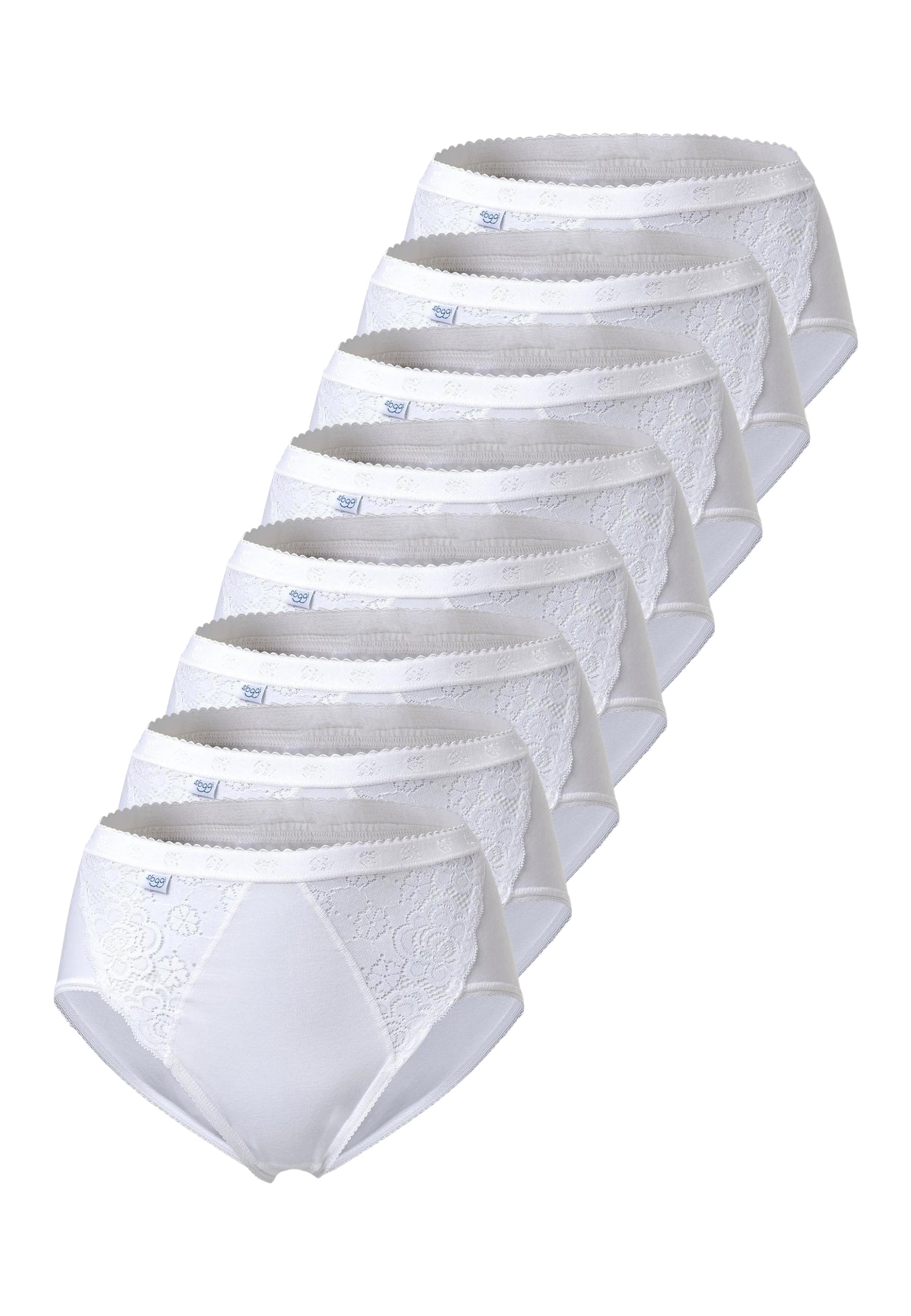 8 Slip medio da donna con inserti in pizzo elasticizzato sulla parte anteriore realizzato con una maglina di cotone elasticizzato che conferisce al capo una morbidezza e una comodità unica. A seconda della quantità ordinata la confezione potrebbe cambiare. (Il prezzo si riferisce alla confezione da 8 slip).