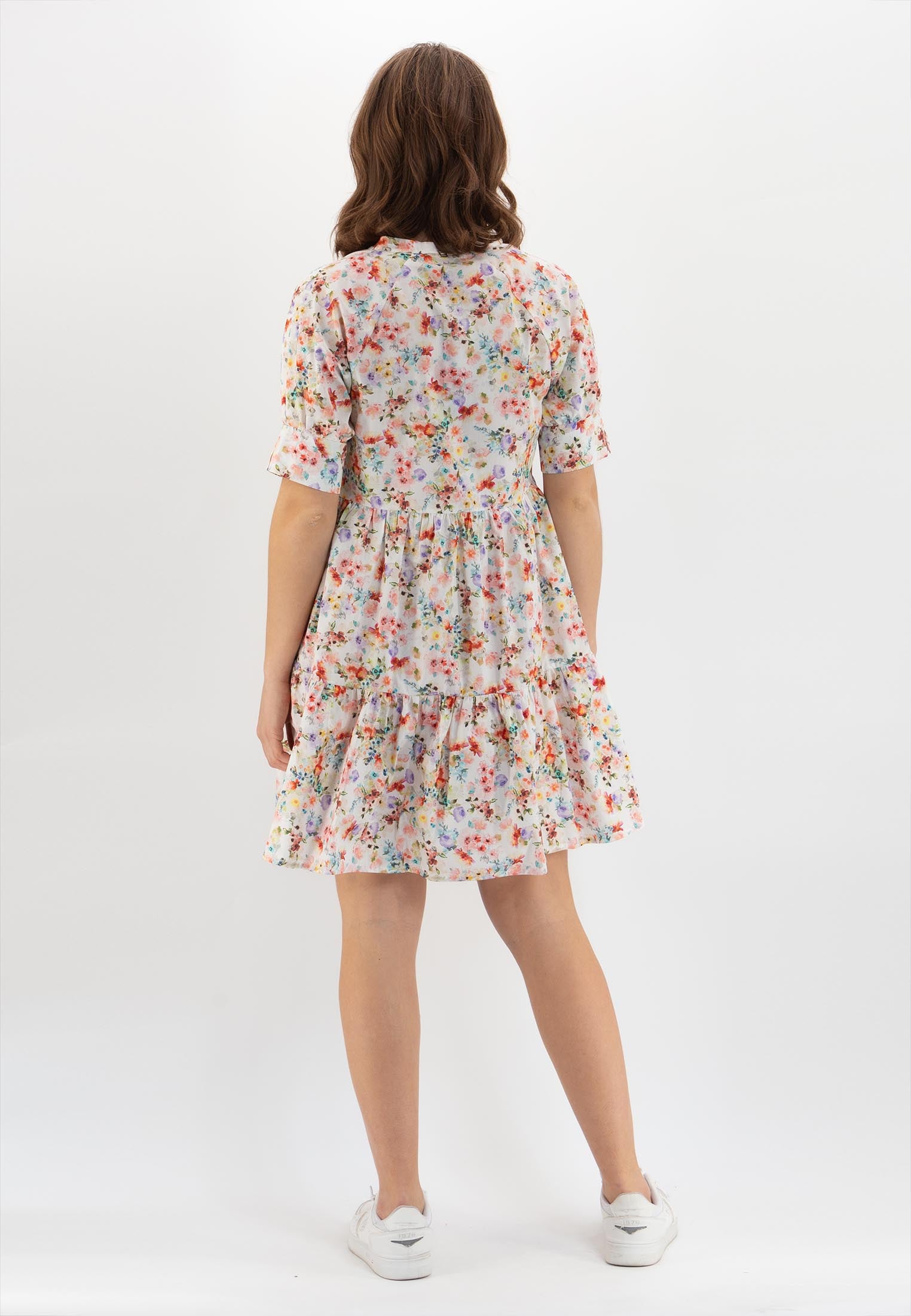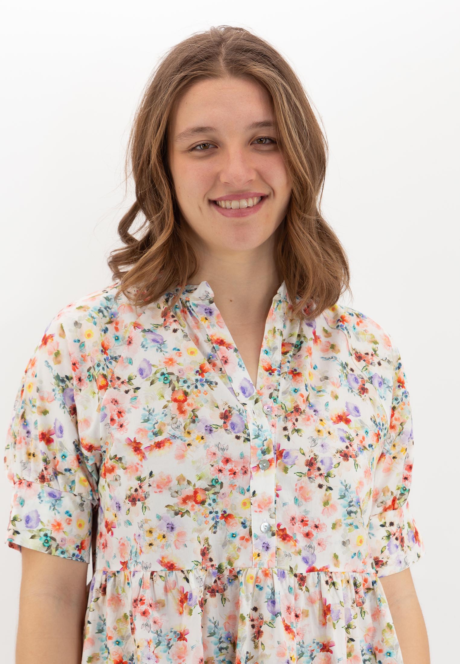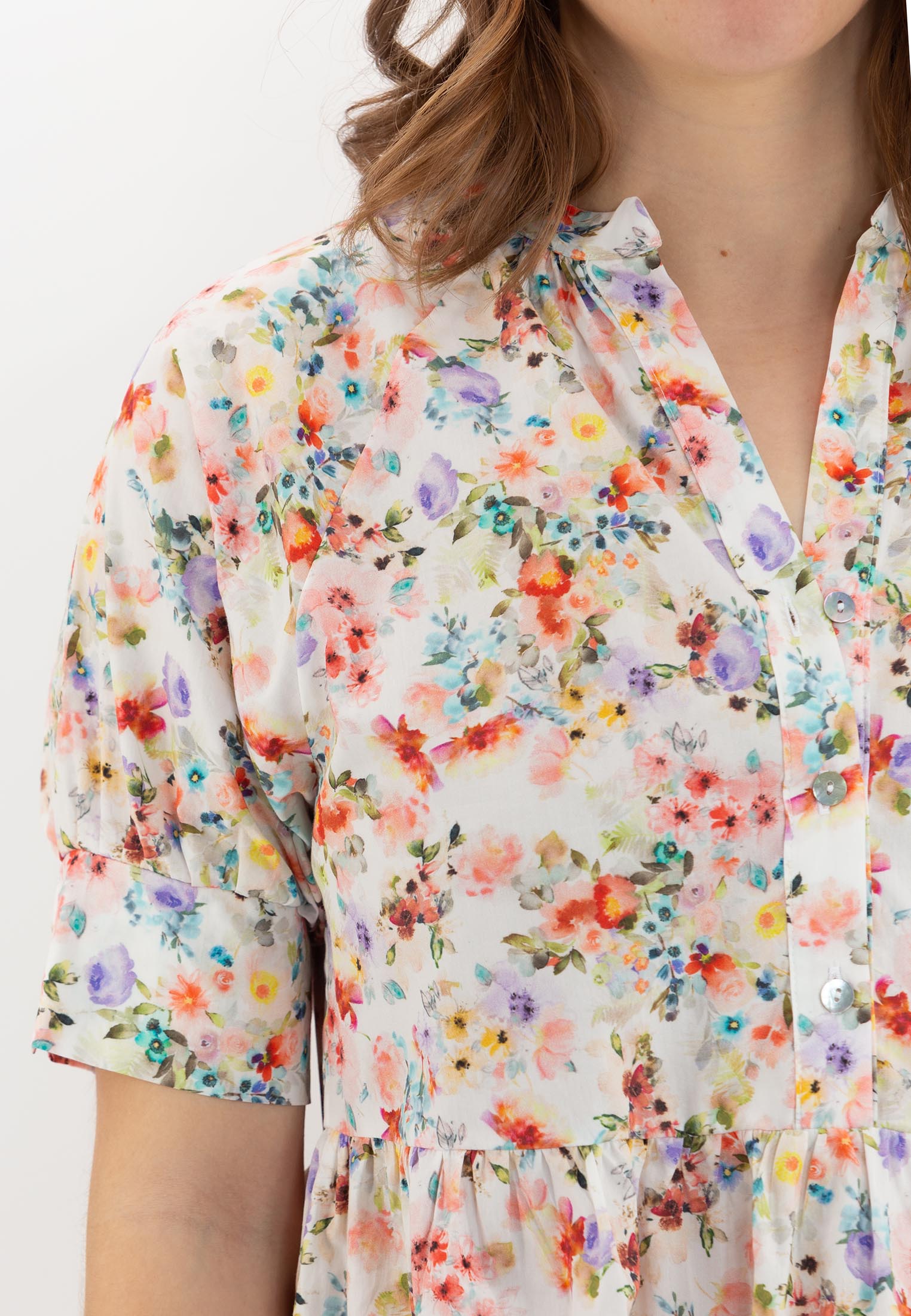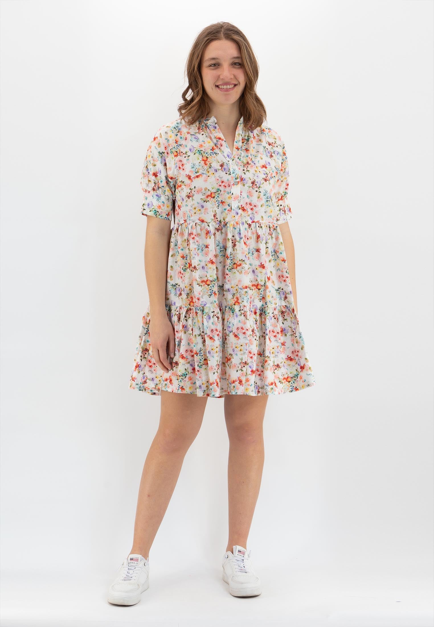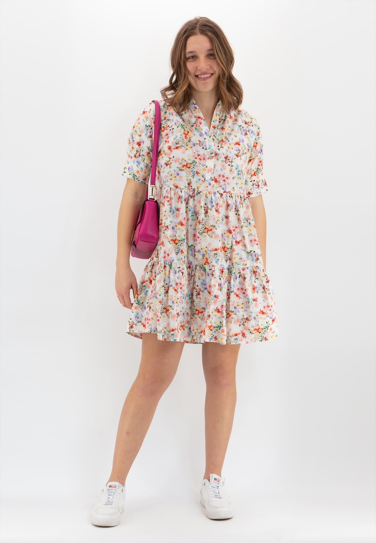 L’abito camicia a fiori con balze firmato MARKUP è la scelta perfetta per vivere la primavera e l’estate con stile e leggerezza. Realizzato in popeline di puro cotone, questo capo combina freschezza e comfort, valorizzando la silhouette con un design femminile e dinamico. Le maniche corte a palloncino con polsino donano volume e delicatezza, mentre il collo alla coreana arricchito da un dettaglio a pieghe e chiuso da tre bottoni aggiunge un tocco di eleganza sobria. La fantasia floreale vivace e le balze morbide rendono questo abito estremamente versatile: ideale da indossare durante il giorno o per un’occasione informale, si abbina con facilità a una giacca in jeans per un look casual o a una giacca in pelle per un effetto più deciso e contemporaneo. Un capo essenziale per rinnovare il tuo guardaroba con stile e praticità.