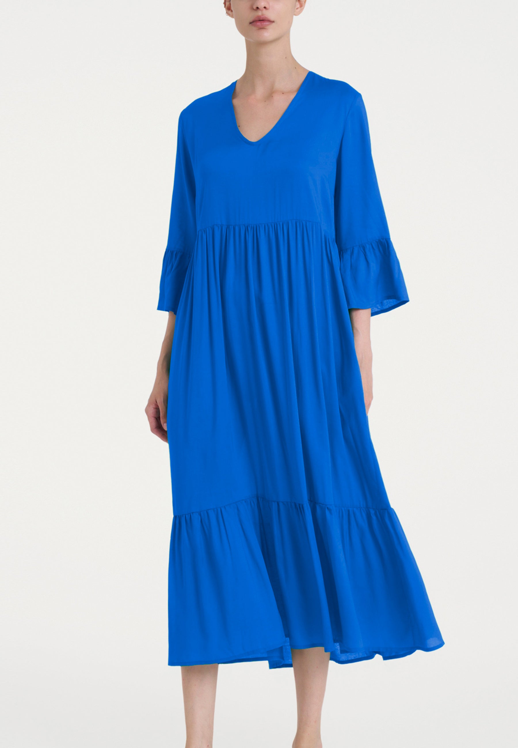 L'abito lungo a manica tre quarti del brand RAGNO è la scelta ideale per la donna che ama vestire con eleganza e leggerezza. Realizzato in jersey di viscosa, un tessuto fluido e confortevole, questo abito unito si distingue per il suo design femminile e dinamico. Le balze donano movimento alla silhouette, valorizzando ogni figura con naturalezza. Perfetto per le giornate primaverili ed estive, si adatta con semplicità a diverse occasioni, dal tempo libero agli appuntamenti più curati. Lo stile essenziale e il taglio morbido riflettono l’anima del marchio RAGNO, da sempre attento alle esigenze di una donna moderna e raffinata.