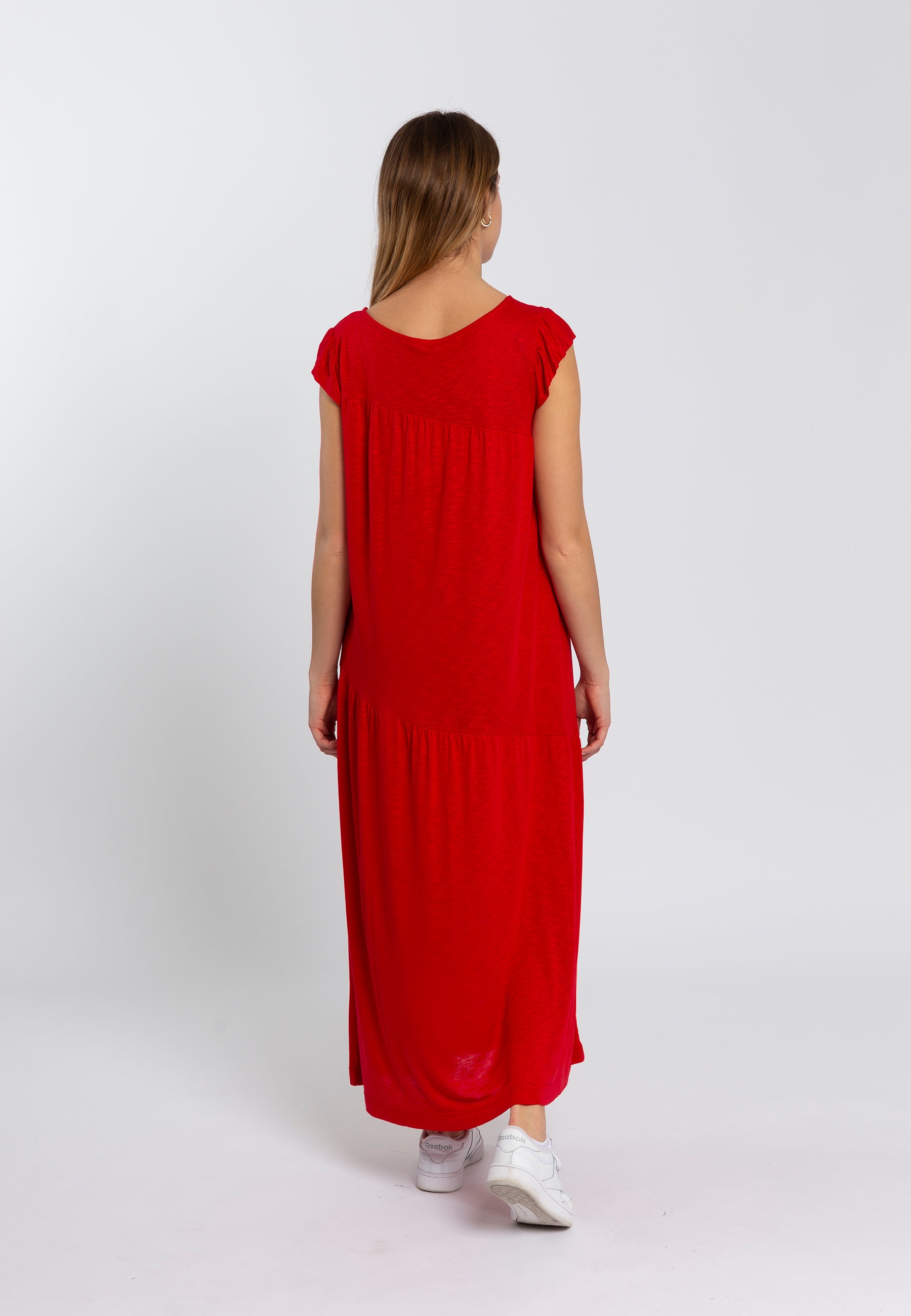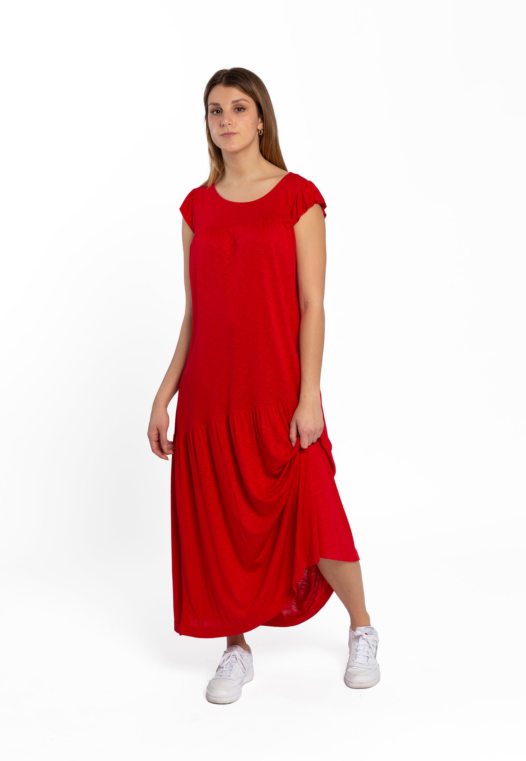 Questo abito è perfetto per l'estate grazie al tessuto di viscosa fresco e traspirante. Con le sue mezza maniche e la pura viscosa tessuto fiammato, è l'abito ideale per mantenere freschezza e stile durante le giornate più calde. Disponibile in una tinta unita, questo abito sarà sicuramente un must-have nel guardaroba estivo.