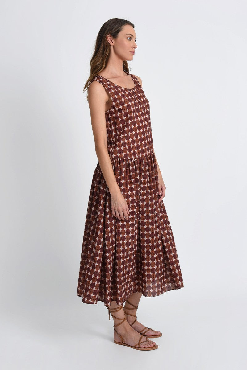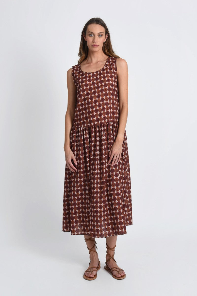 Abito fantasia Etnica MOLLY BRACKEN RR116BE con taglio all'altezza dei fianchi, dettaglio di arriccio sulla gonna a mezza ruota. La stampa etnica è perfetta per completare il tuo look estivo in modo unico.
