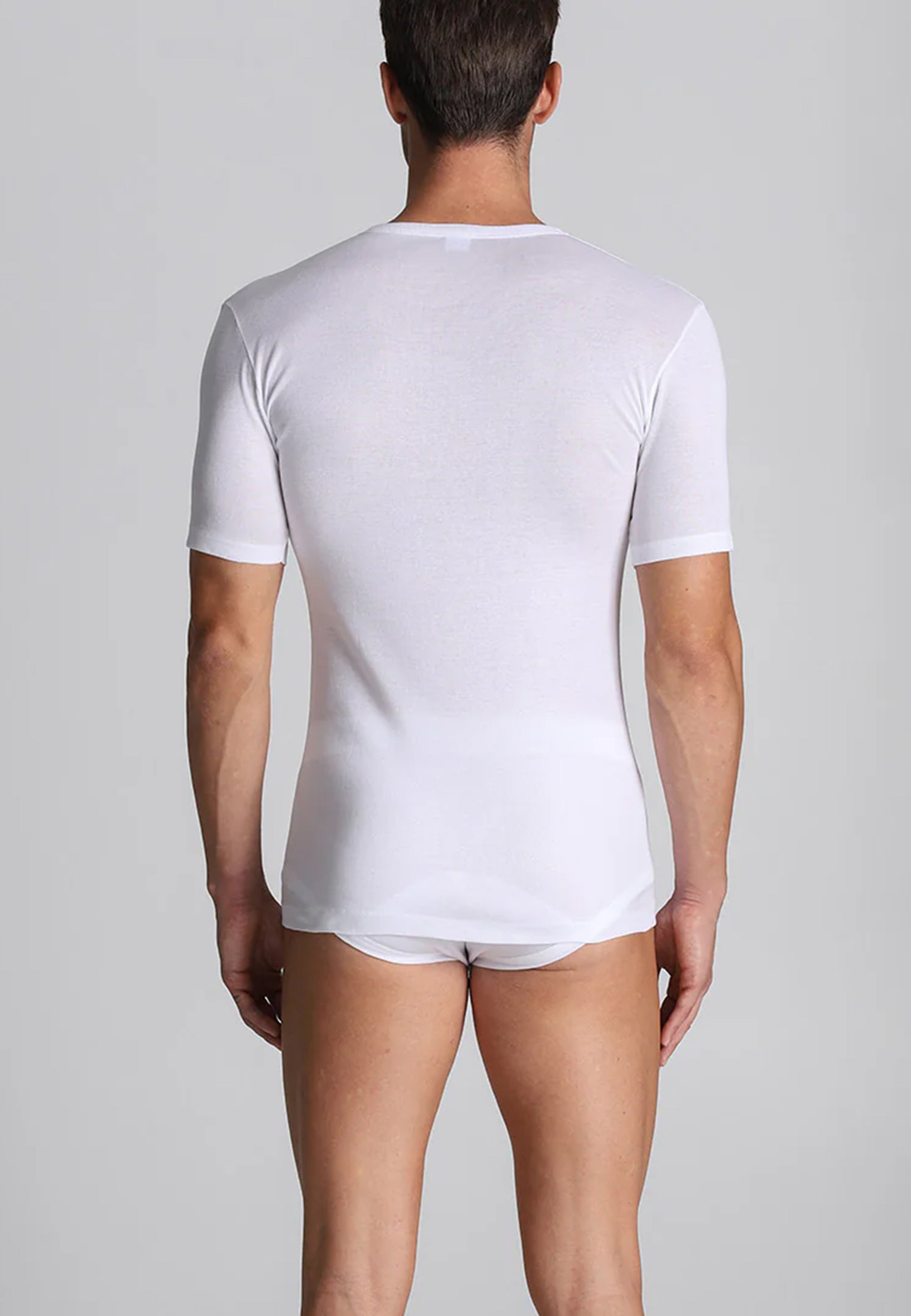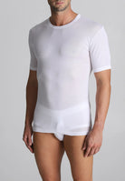 Questa maglietta da uomo Alpina Intimo è realizzata in puro cotone Filoscozia certificato di alta qualità. Morbida e piacevole al tatto, è perfetta per chi ha allergie. Le sue fibre pure e lucenti garantiscono durata nel tempo, mentre le proprietà antibatteriche la rendono ideale per la pelle sensibile.