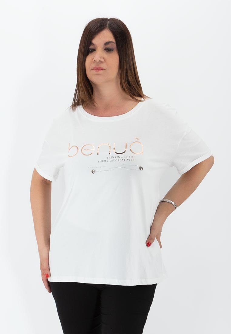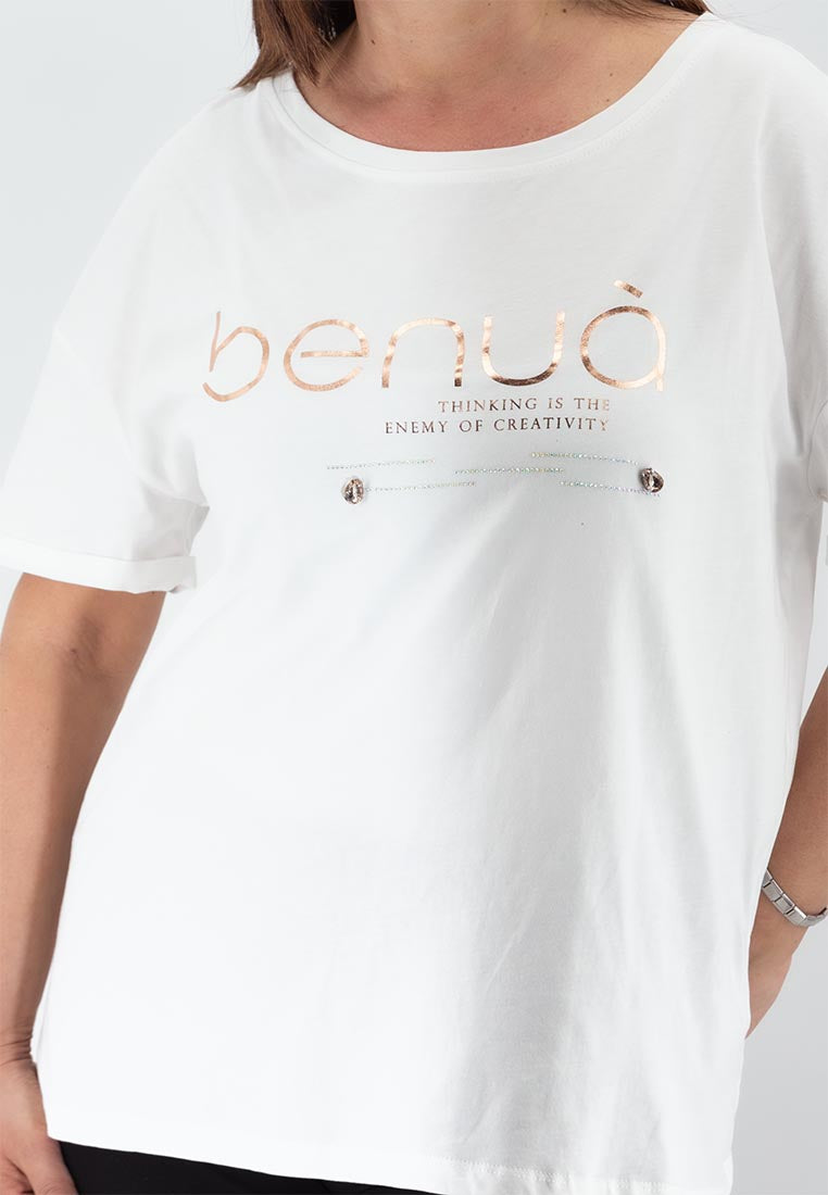 T-shirt mezza manica in 100% cotone con piccole applicazioni e stampa personalizzata Benua'