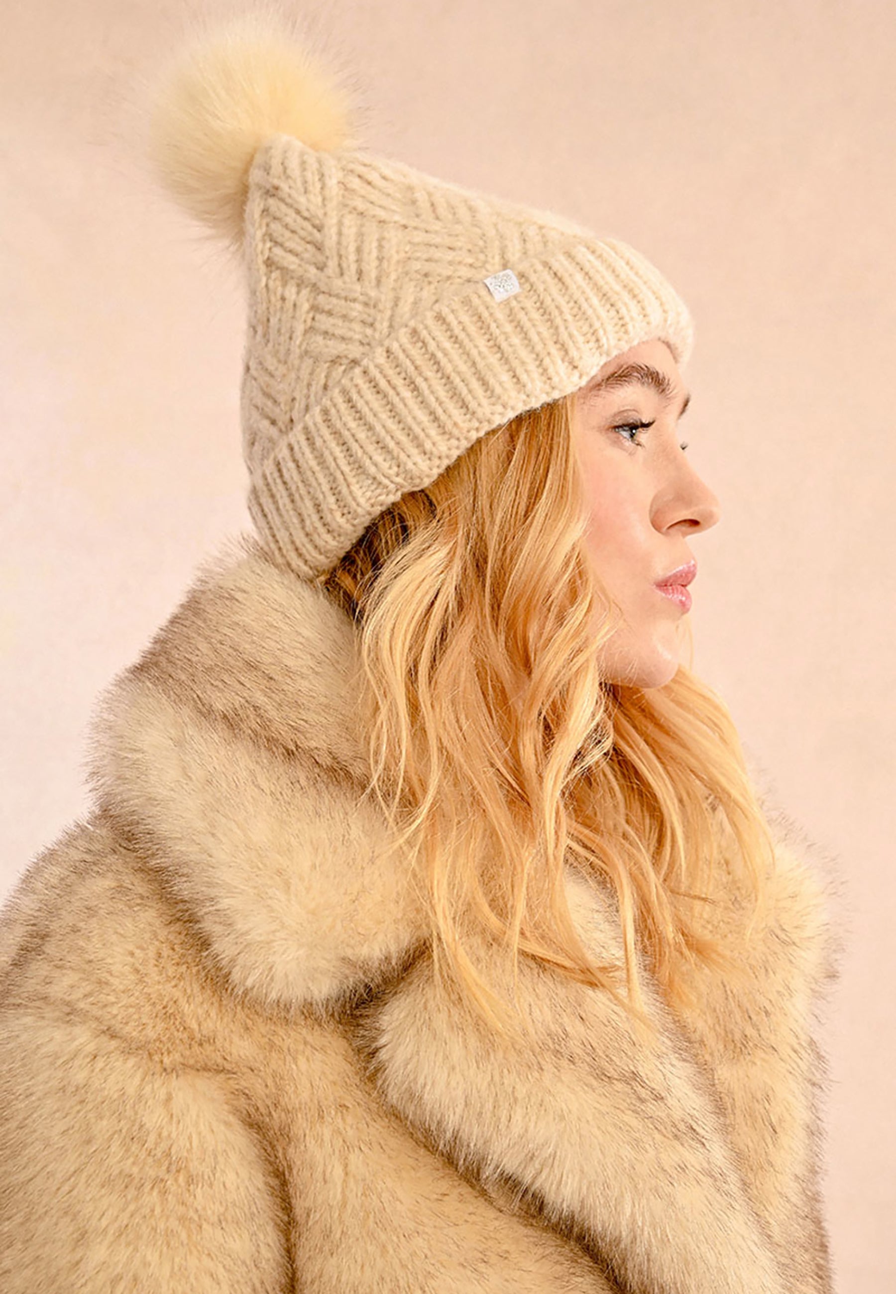 Il berretto di maglia pesante spigato con pom pom di Molly Bracken è perfetto per gli inverni freddi. Realizzato con morbido filato, mantiene la testa al caldo e aggiunge un tocco di stile al tuo outfit. Comodo e versatile, ideale per qualsiasi attività all'aperto.
