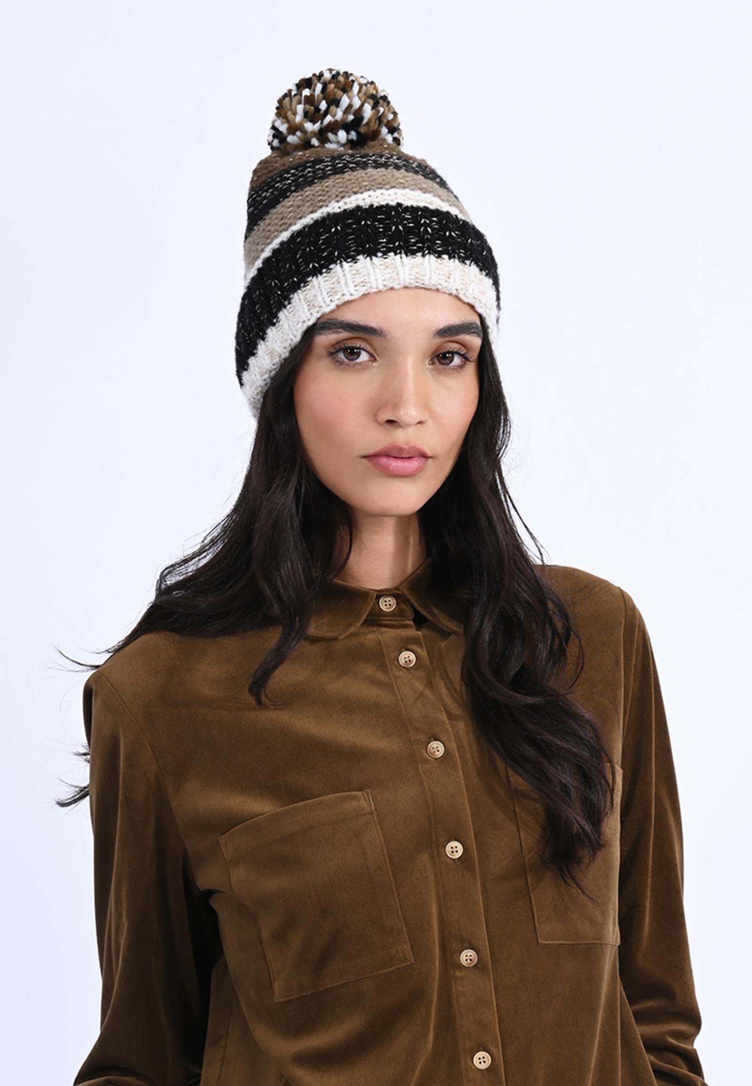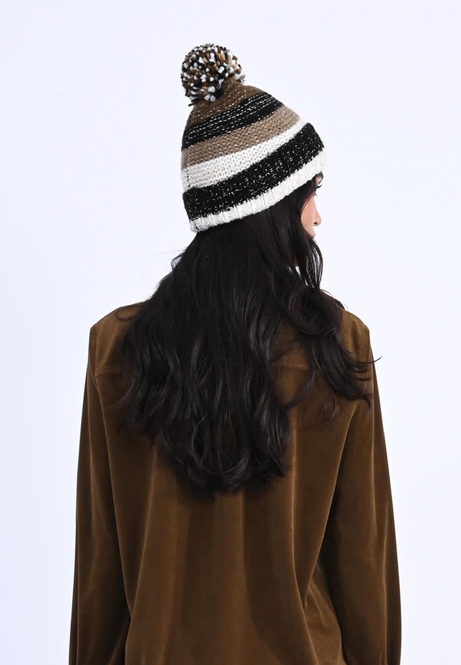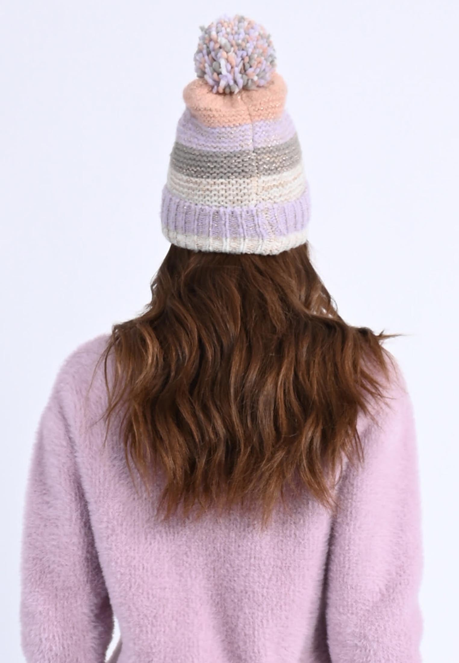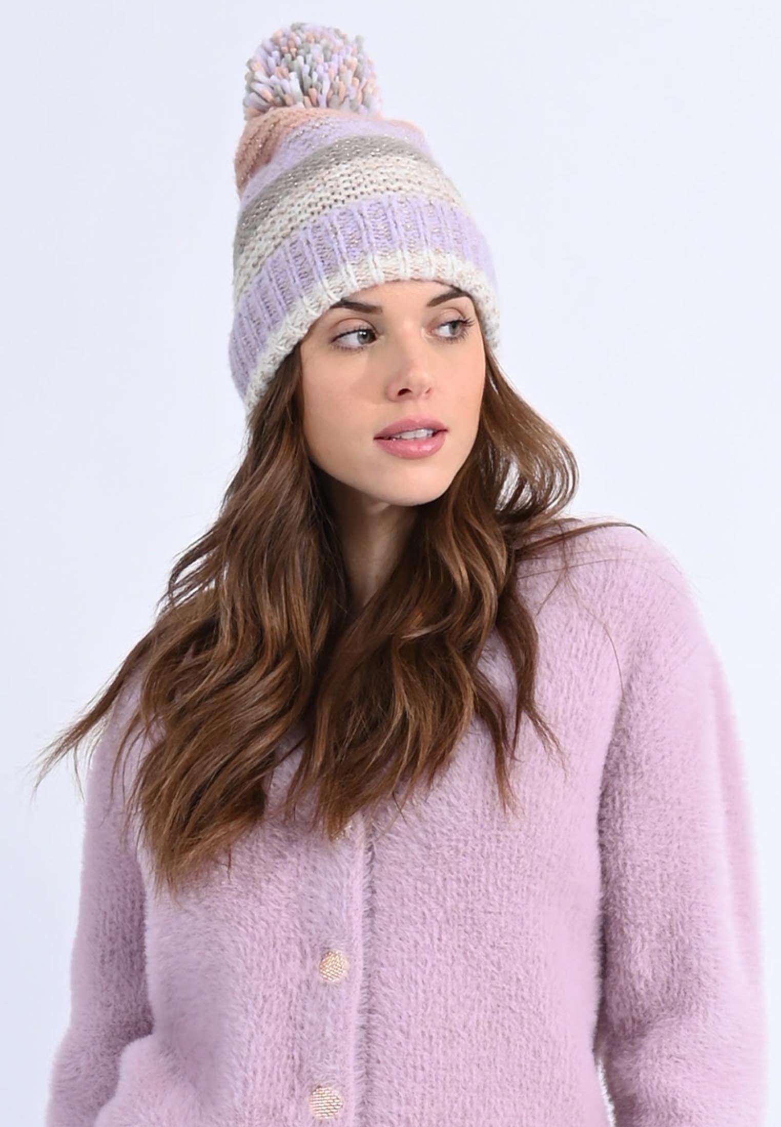 Berretto lavorazione a Righe e Lamé con Pon Pon MOLLY BRACKEN B256BH