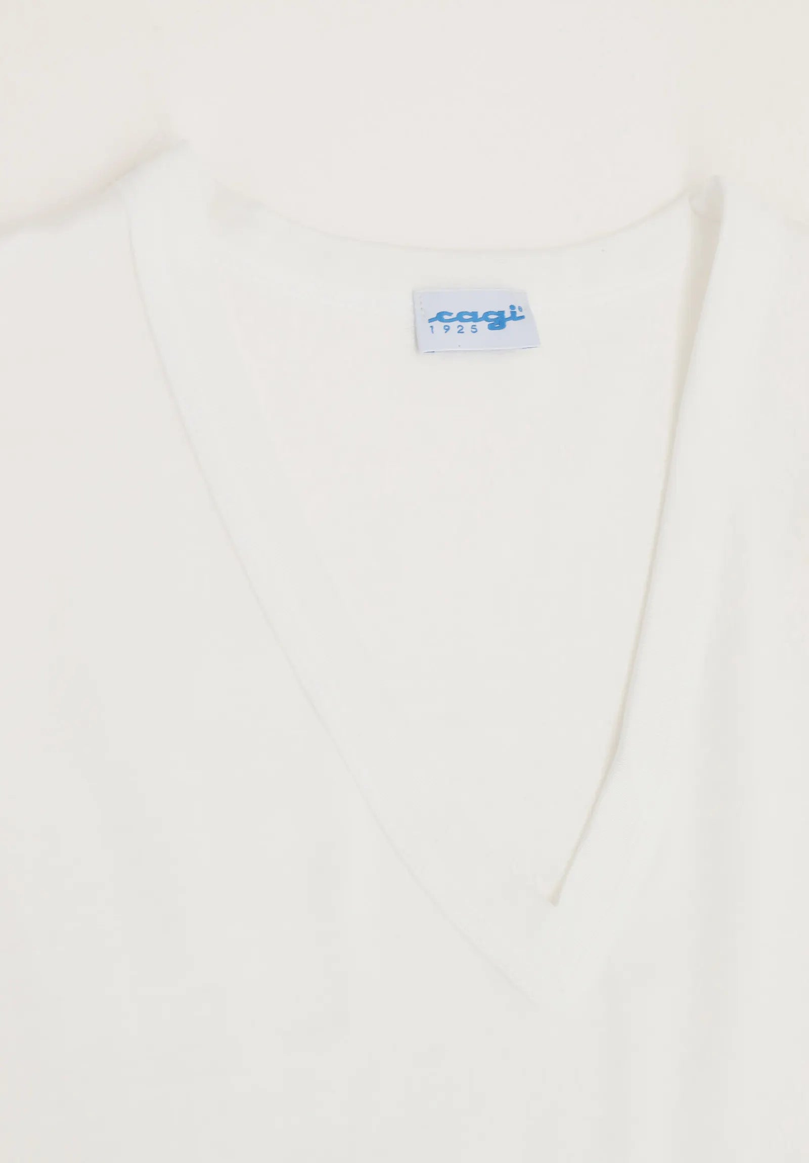 T-shirt intima mezza manica con scollo a V realizzata in pregiato jersey 100% cotone filo di scozia senza cuciture ai fianchi. Questo filato conferisce al capo una perfetta vestibilità e comodità.