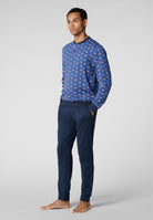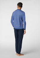 Pigiama uomo Cagi lungo in cotone leggero con collo serafino, ideale per garantire comfort notturno, traspirabilità e benessere durante il riposo nelle stagioni più miti.