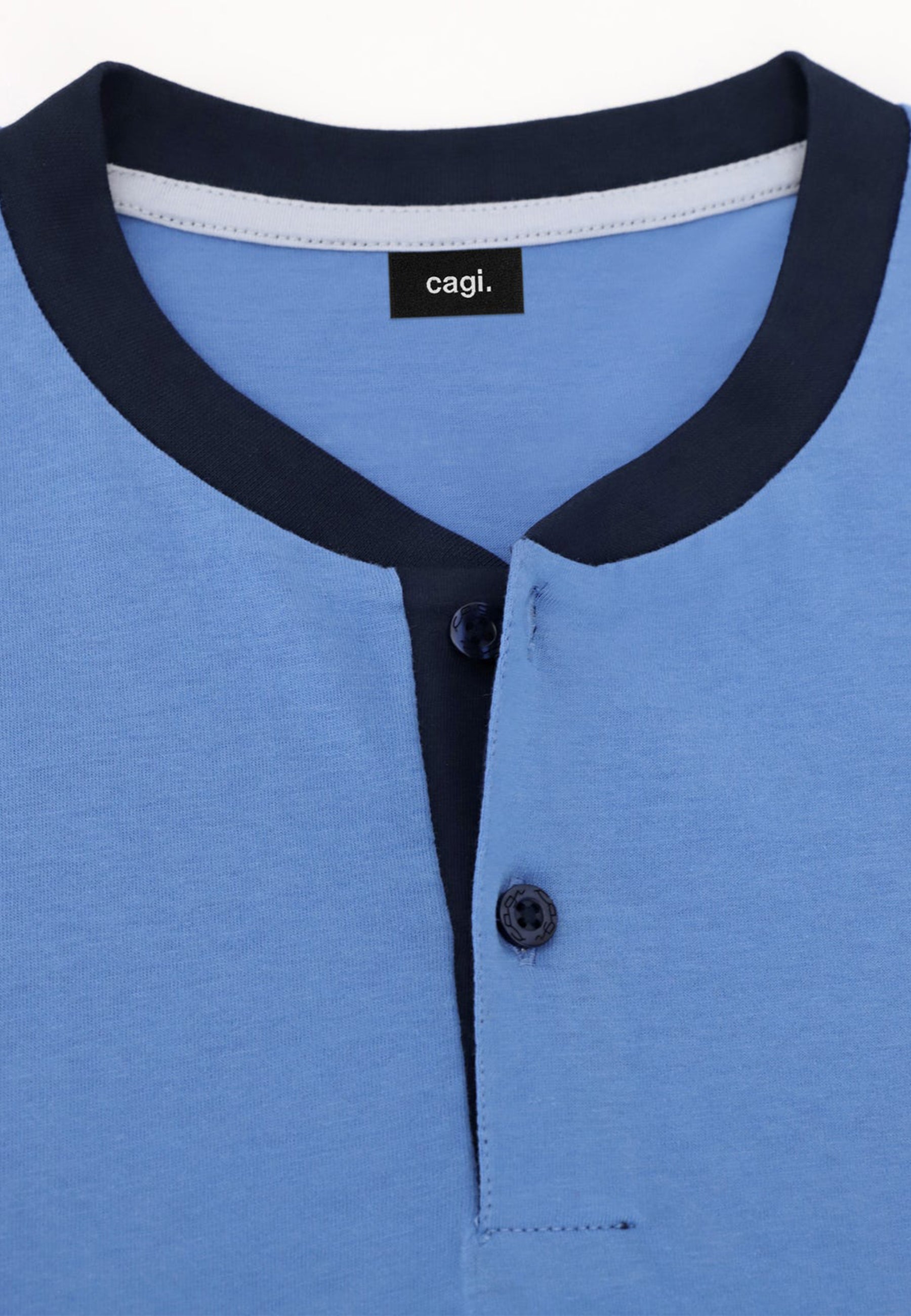 Pigiama uomo Cagi lungo in cotone leggero con collo serafino, ideale per garantire comfort notturno, traspirabilità e una piacevole sensazione di benessere durante il riposo estivo.