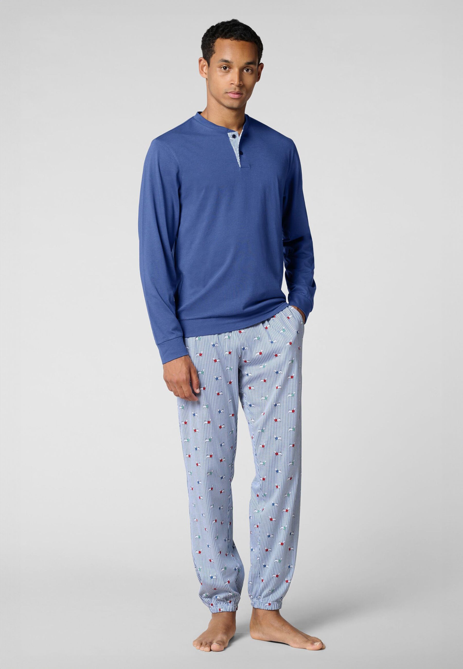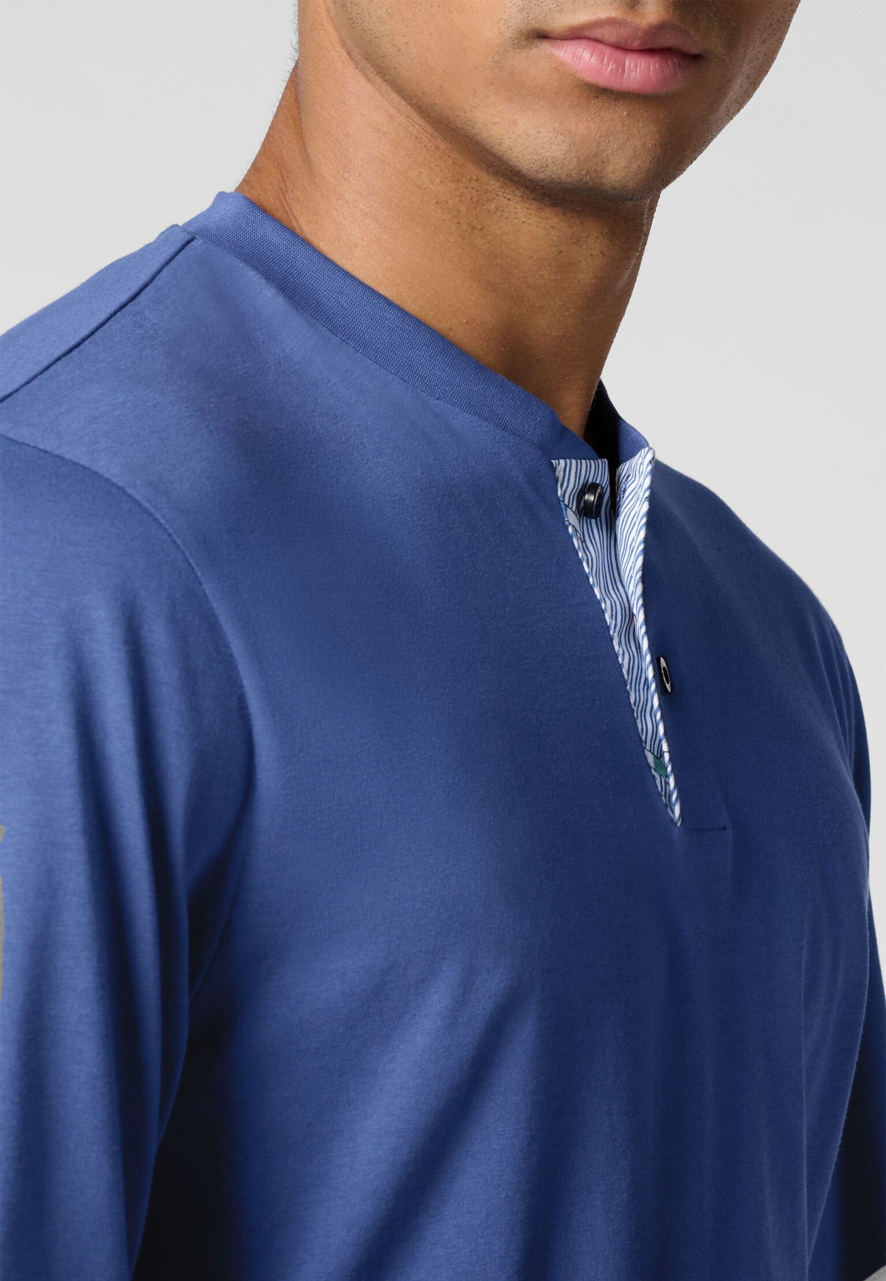 Pigiama uomo Cagi lungo in cotone leggero con collo serafino, ideale per garantire comfort notturno, traspirabilità e benessere durante il riposo estivo e nelle mezze stagioni.
