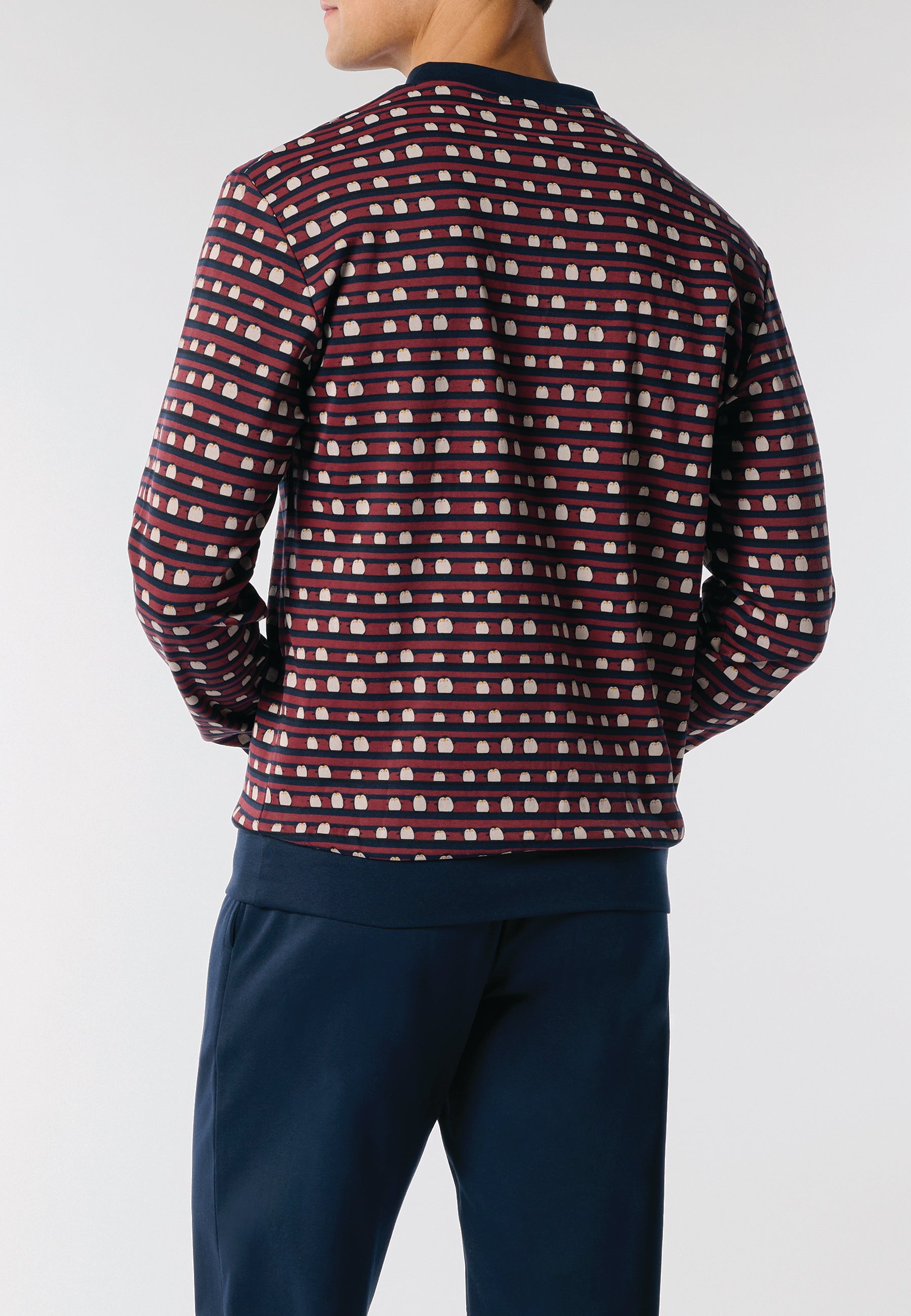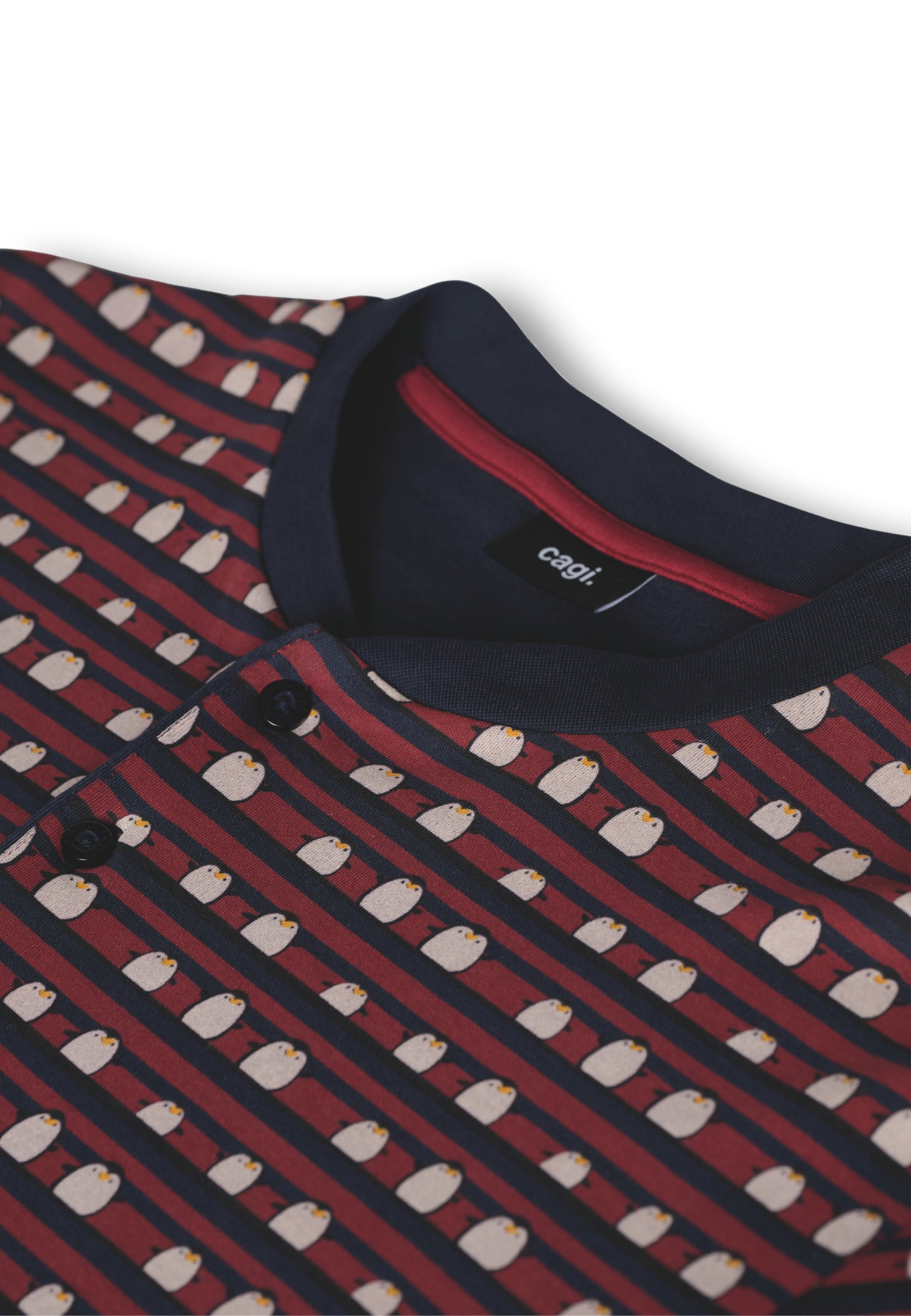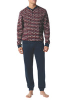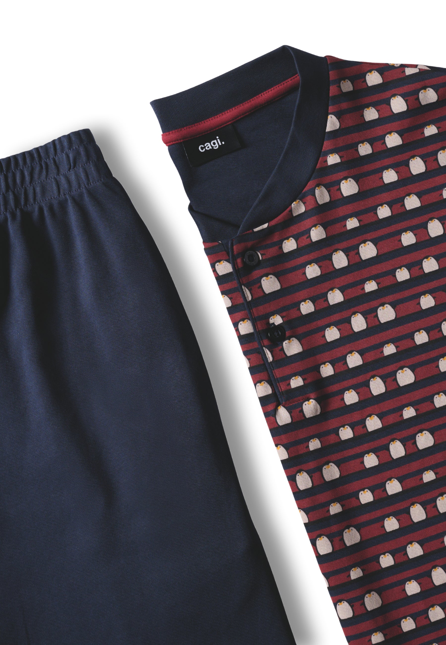 Il pigiama da uomo CAGI con manica lunga è realizzato in morbido cotone interlock felpato, ideale per offrire calore e comfort durante le notti più fredde. Il design presenta polsini e caviglie bordati che garantiscono una vestibilità perfetta e aiutano a trattenere il calore. La fantasia con simpatici pinguini aggiunge un tocco di originalità e stile, rendendo questo capo piacevole da indossare anche nei momenti di relax. Il collo serafino completa il look con un dettaglio classico e raffinato. Pensato per chi cerca qualità, praticità e un pizzico di allegria nel proprio abbigliamento da notte.