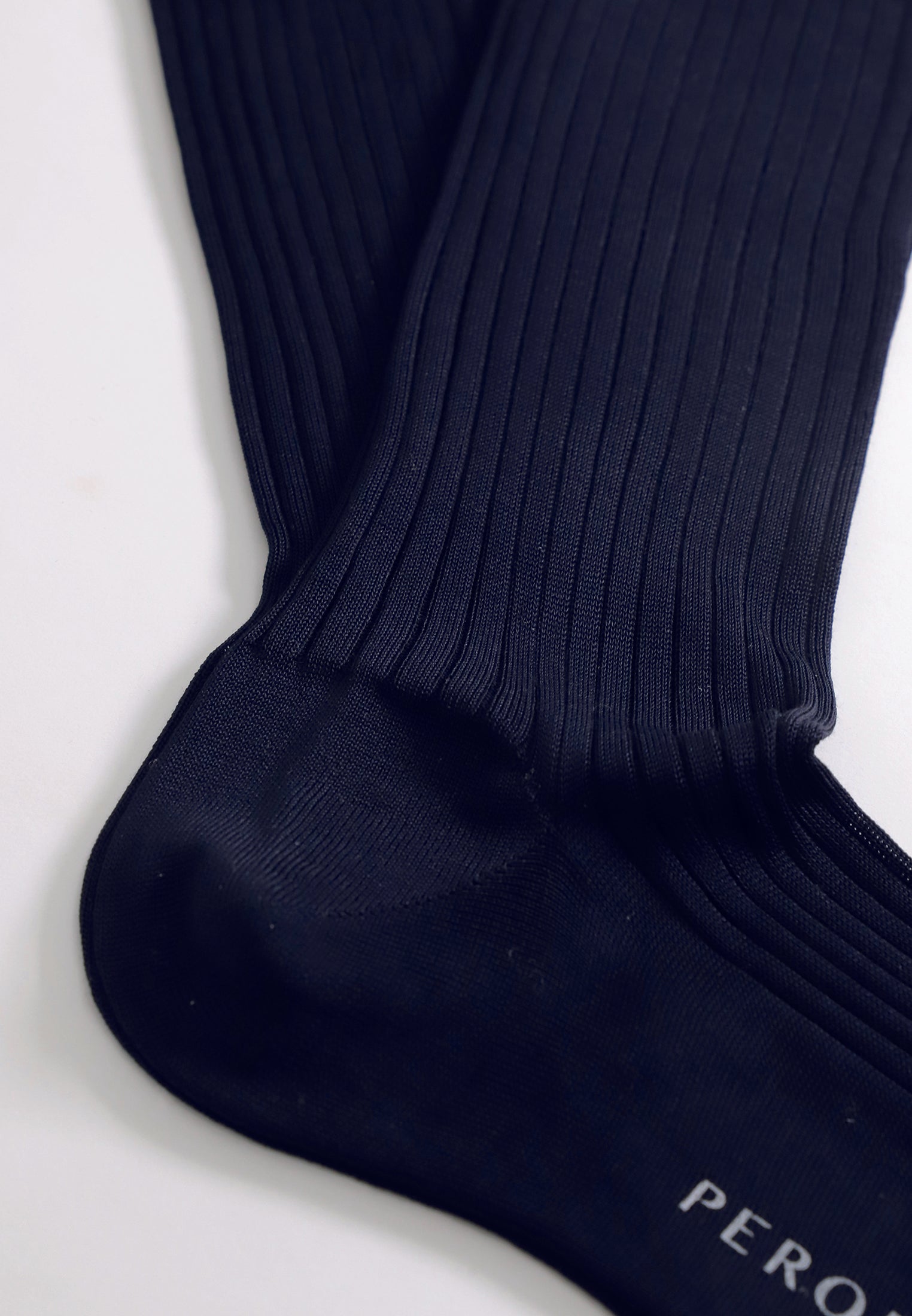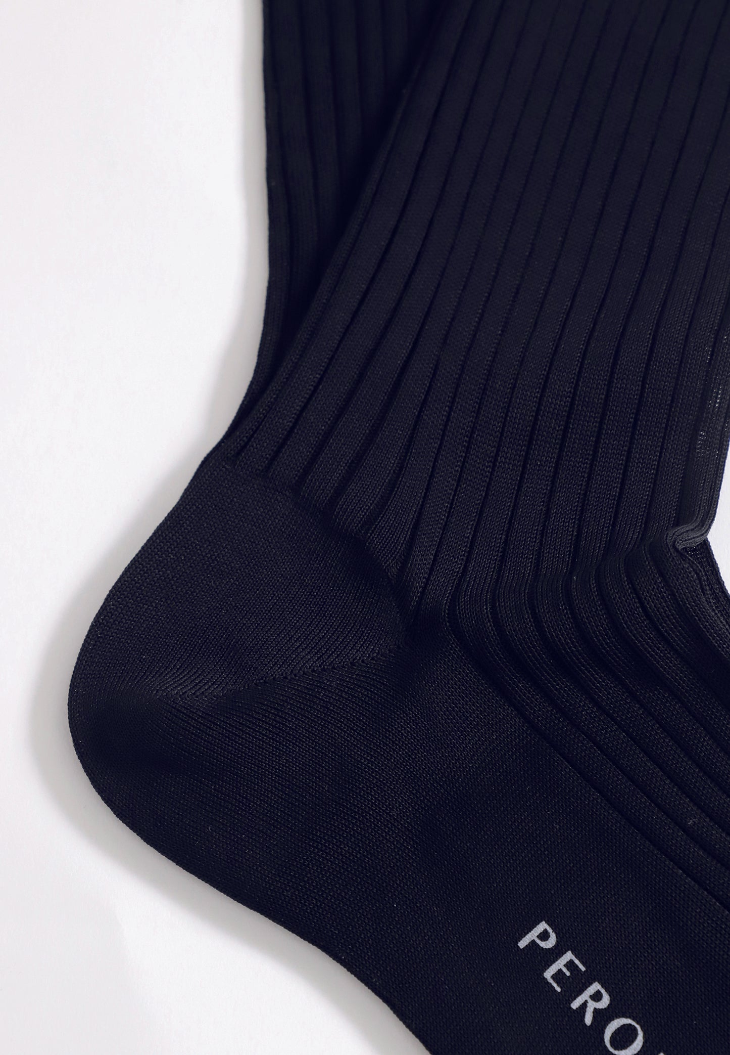 Calza corta a costina in puro Filo di Scozia PEROFIL VPRC00326 è realizzata con tessuti di alta qualità, prodotti con il pregiato cotone di Filo di Scozia.