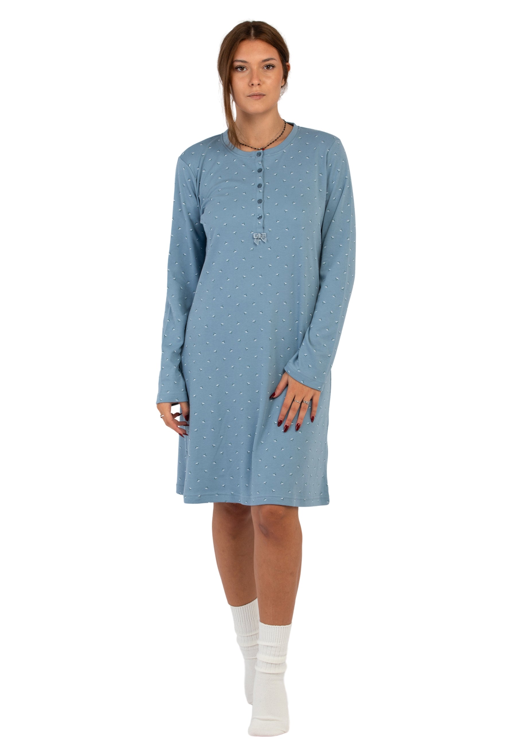 Esplora la nostra Camicia da notte NOI DI NOTTE in cotone interlock felpato, perfetta per le notti più fredde. La tinta unita si unisce alla microfantasia per un tocco di stile, mentre il tessuto in cotone morbido assicura comfort e calore durante il sonno. Dormi tranquilla con NOI DI NOTTE.