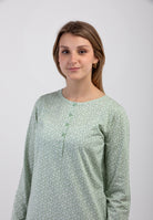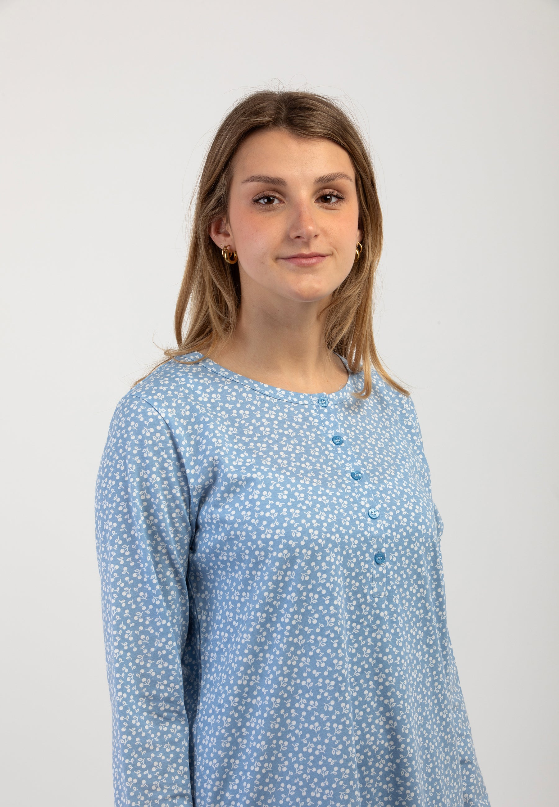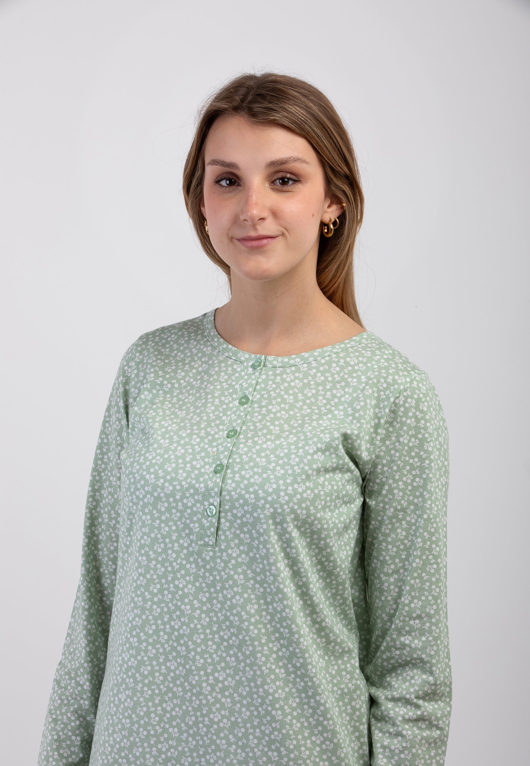 La camicia da notte da donna a manica lunga in jersey di cotone leggero del brand NOI DI NOTTE è la scelta ideale per chi desidera comfort e raffinatezza anche nei momenti di relax. Realizzata in un tessuto morbido e traspirante, avvolge delicatamente la silhouette garantendo una sensazione di benessere per tutta la notte. La microfantasia discreta e delicata aggiunge un tocco di eleganza, rendendo questo capo perfetto per chi ama uno stile raffinato senza rinunciare alla comodità. Ideale per le stagioni più fresche, questa camicia da notte è pensata per accompagnarti con dolcezza nei tuoi momenti di riposo, assicurando leggerezza e vestibilità impeccabile.