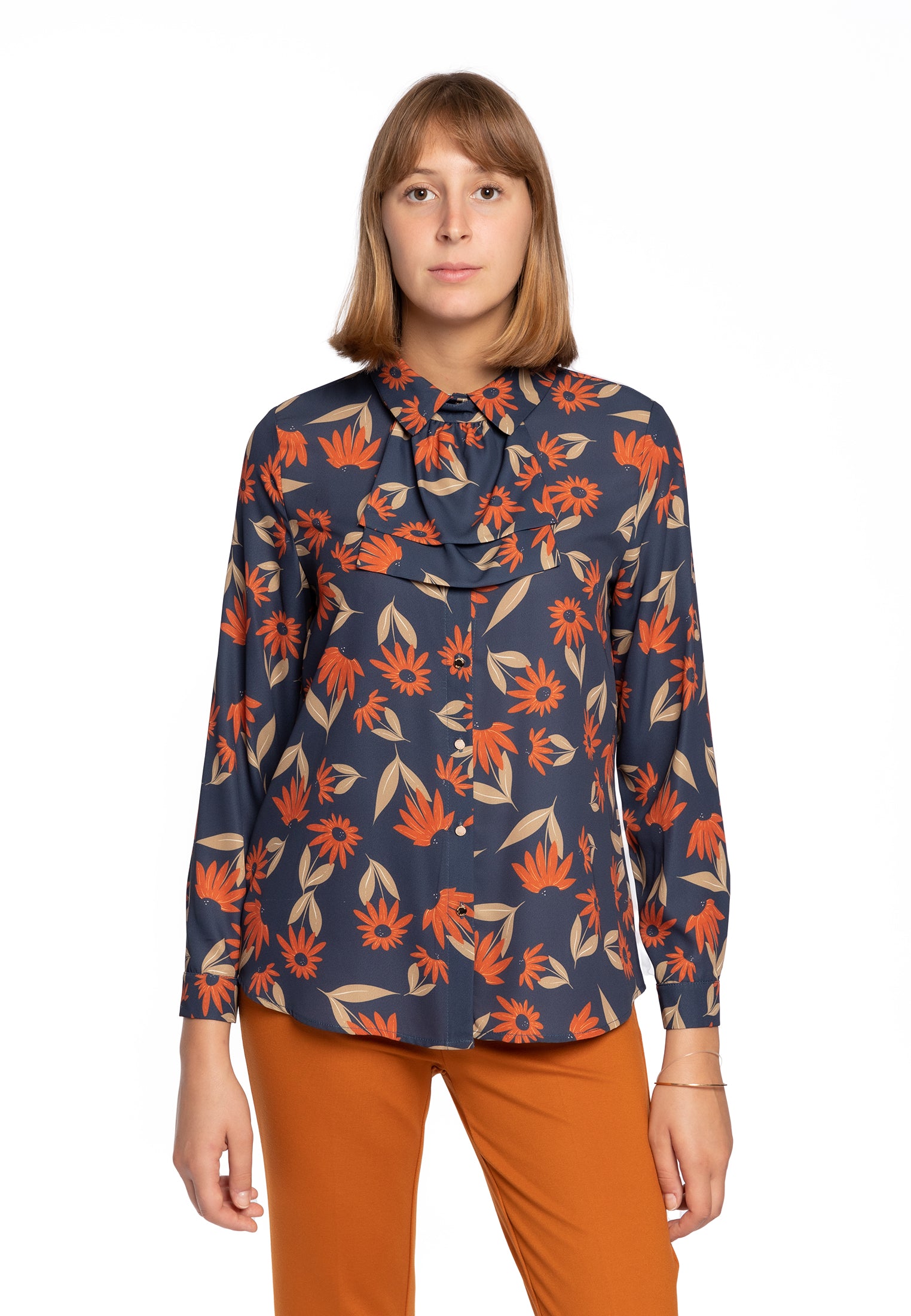 Camicia in Raso fantasia con collo jabot LAURA BIAGIOTTI LB24I1510