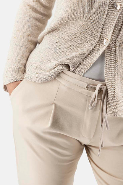 Pantalone con coulisse in vita realizzato con un morbido e leggero tessuto di viscosa in tinta unita