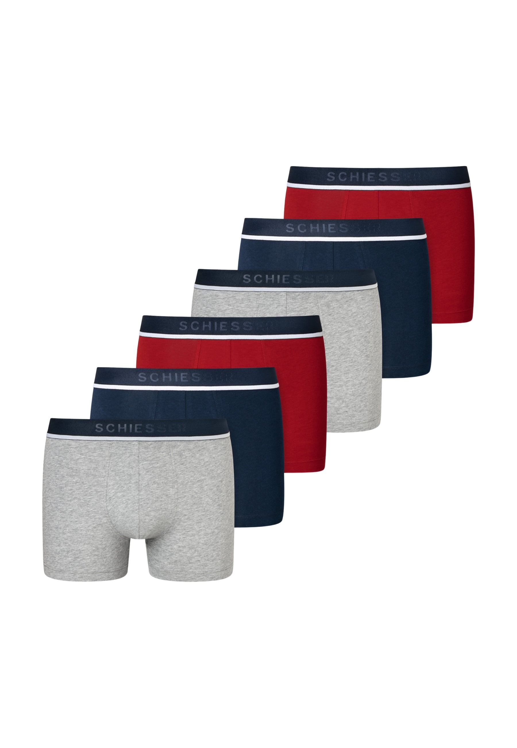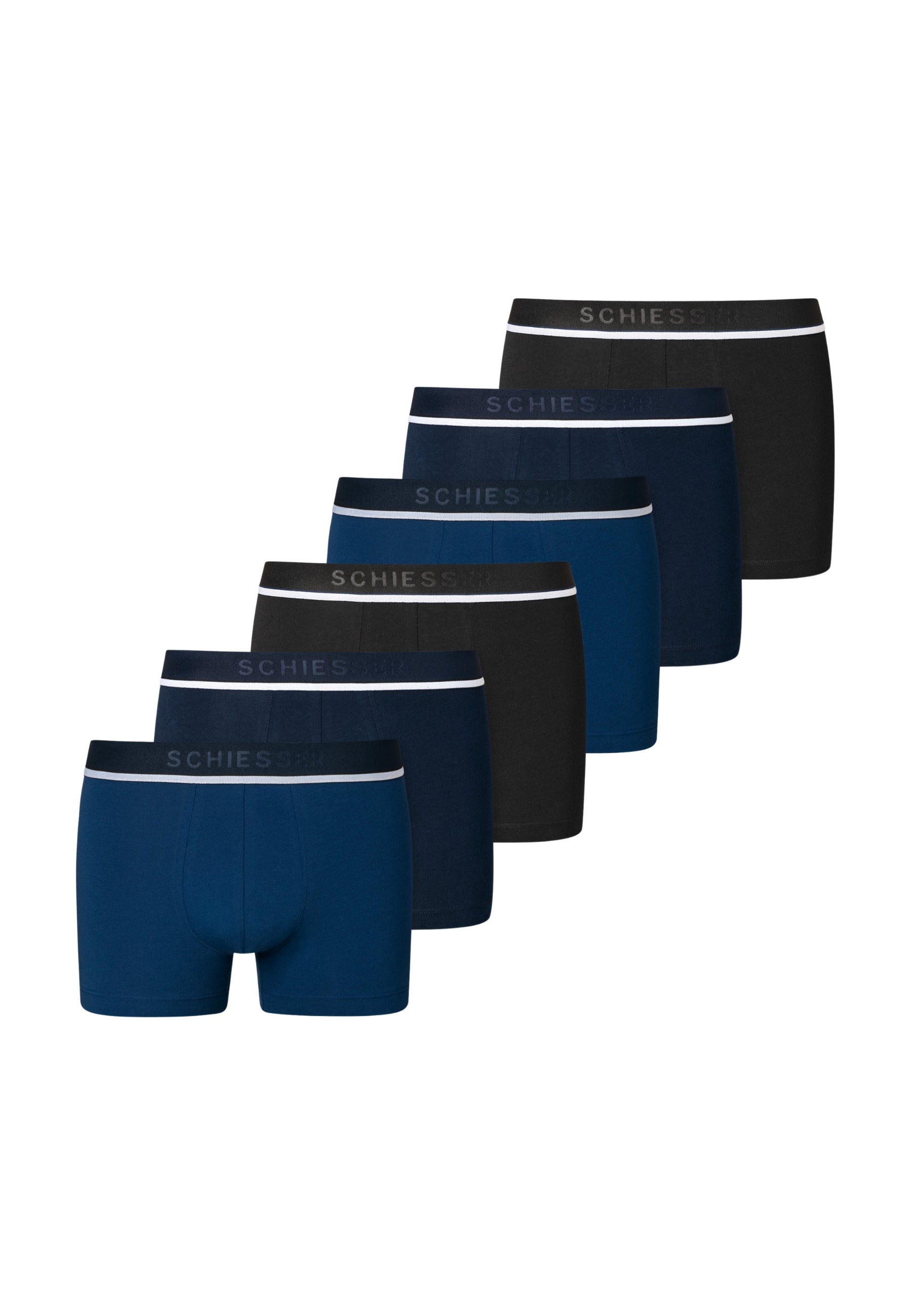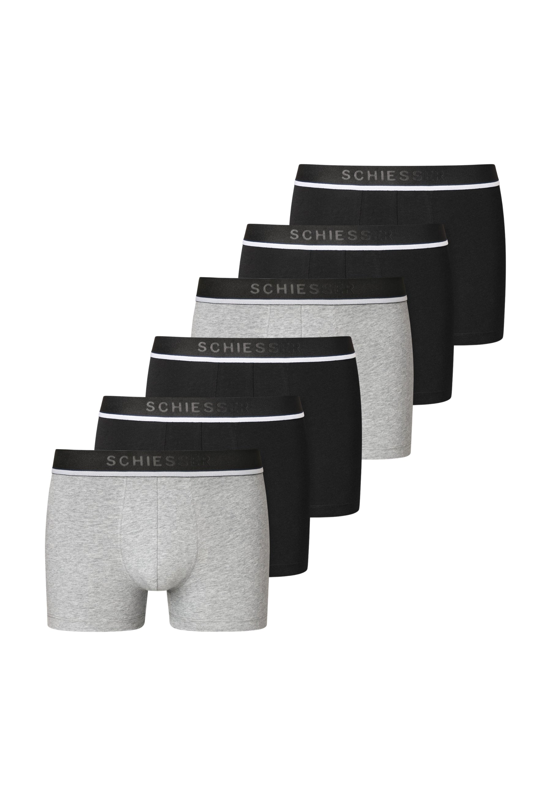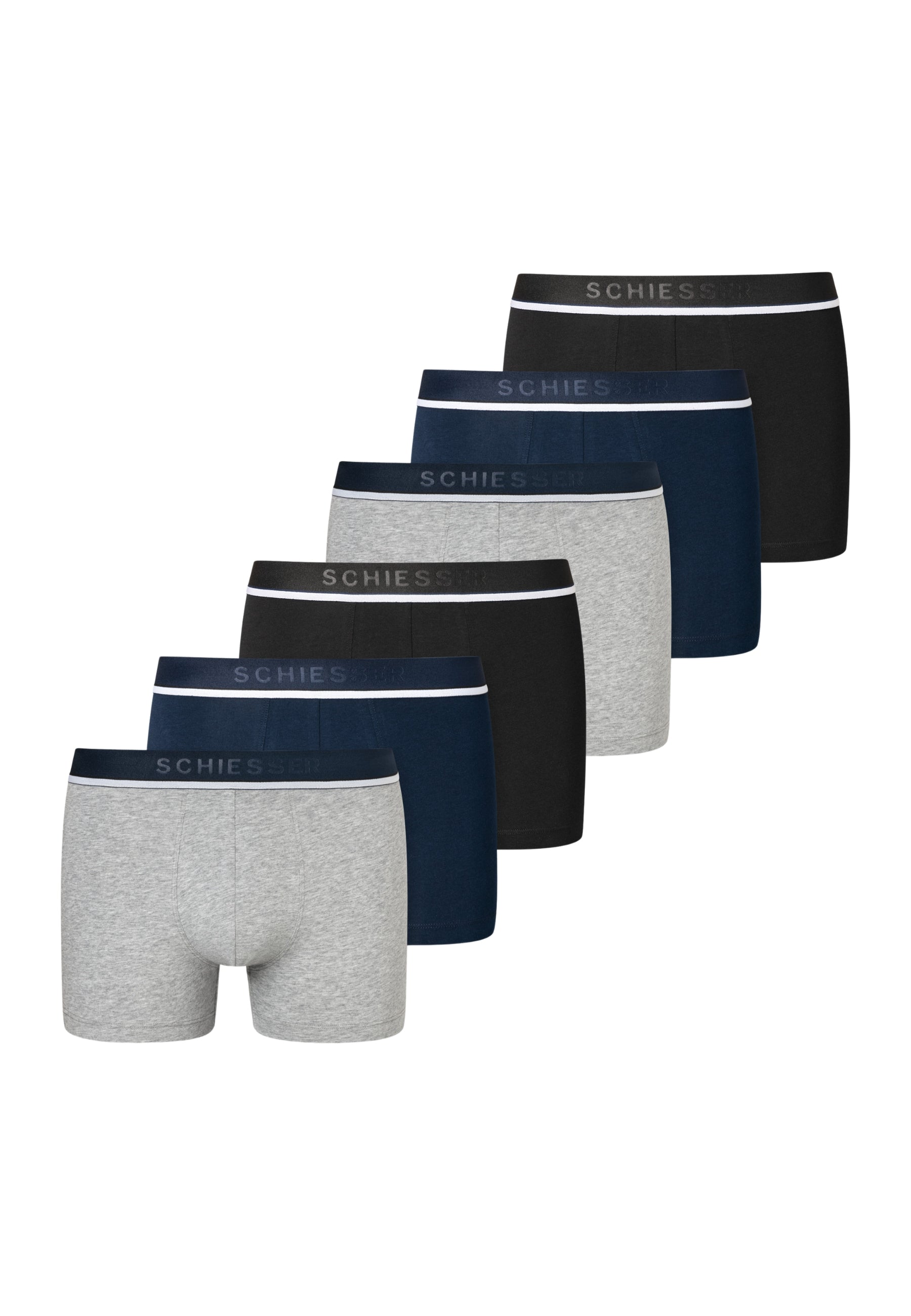 6 Boxer Short da uomo della storica linea 95/5 della Schiesser. Realizzati in un morbido e comodo cotone elasticizzato, garantiscono un confort unico. L'elastico in vita parlato, oltre a dare un tocco di stile, garantisce la massima tenuta e comodità. Inoltre, grazie al cotone organico sostenibile testato nei laboratori Schiesser, questi boxer hanno una durata unica anche dopo molti lavaggi.