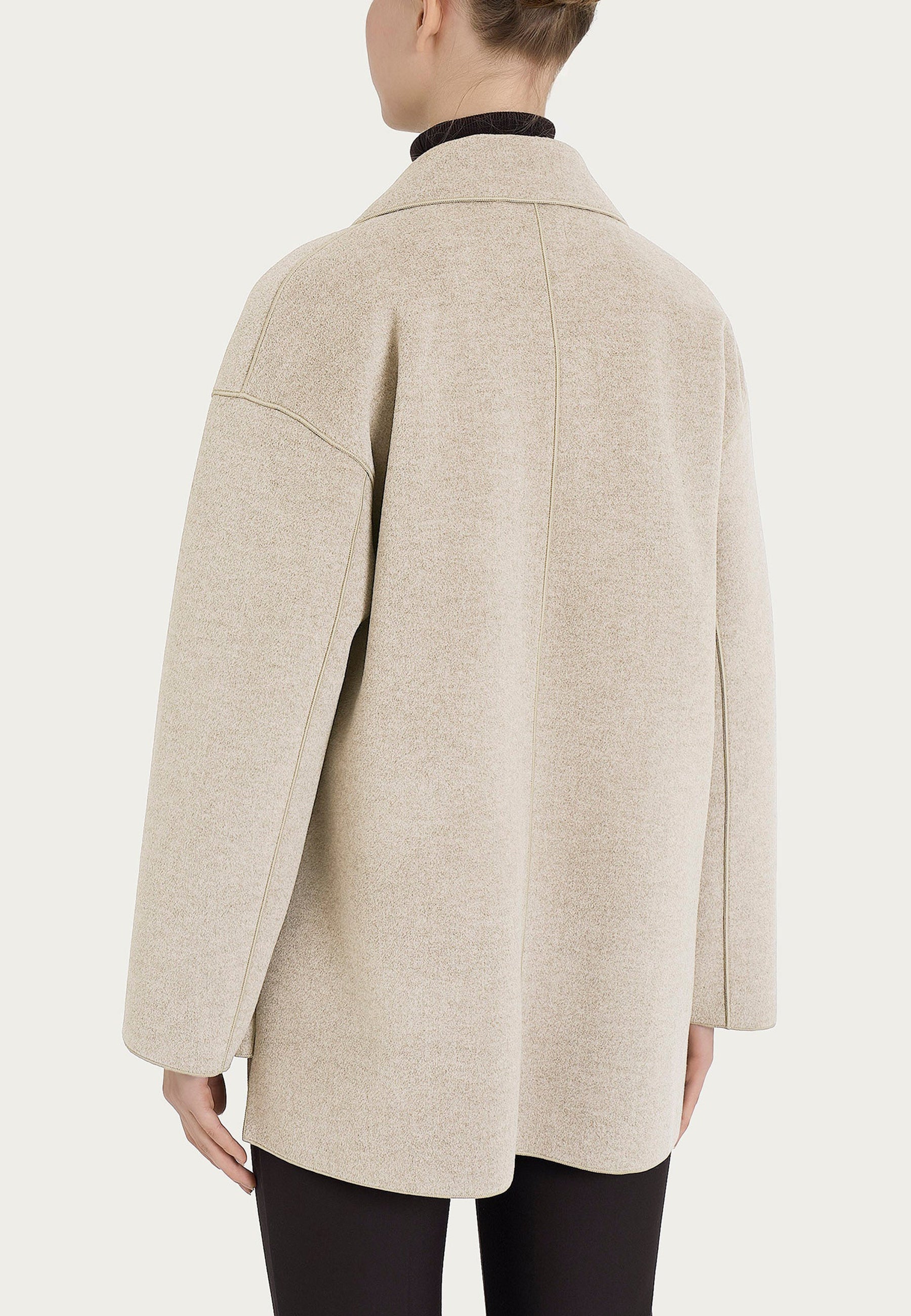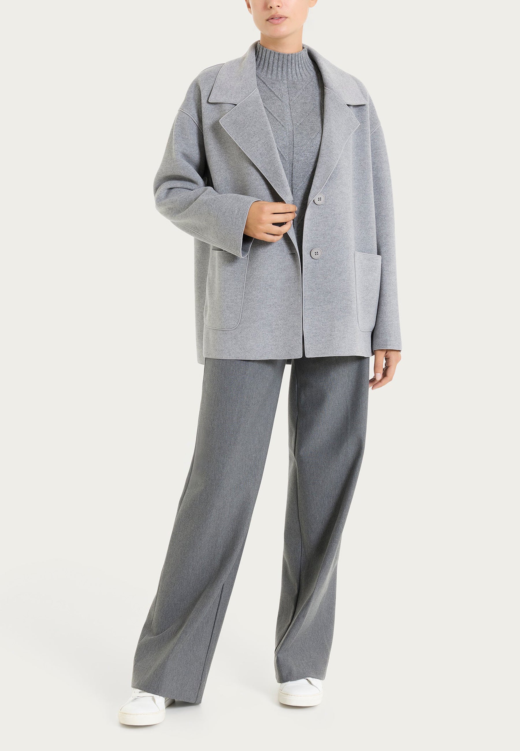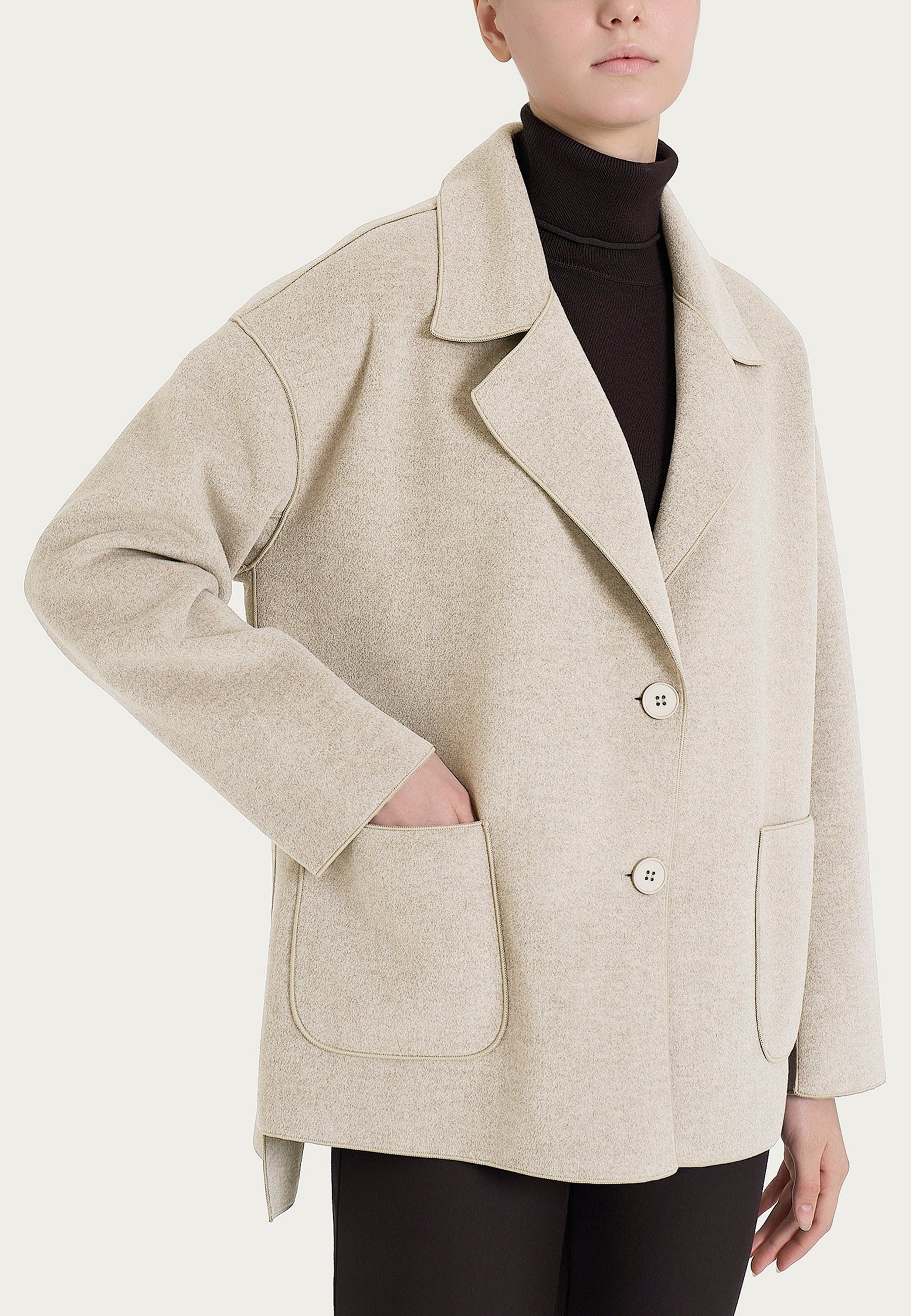 Il cappottino corto sfoderato di RAGNO è un capo versatile e raffinato, pensato per affrontare la stagione invernale con stile e comfort. Realizzato in morbido tessuto vegan wool, offre una piacevole sensazione di calore senza rinunciare alla leggerezza. La vestibilità comoda lo rende ideale per essere indossato sopra maglioni e outfit a strati, garantendo libertà di movimento e praticità. Le tasche laterali aggiungono un tocco funzionale e casual, mentre il design pulito e contemporaneo si adatta perfettamente a look sia formali che quotidiani. La viscosa invernale dona una texture fluida e piacevole al tatto, ideale per chi cerca eleganza sostenibile.