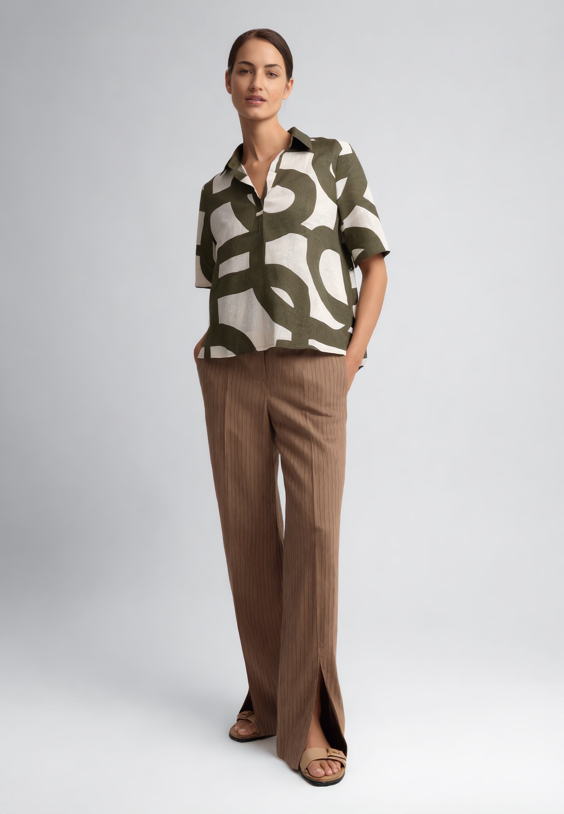 Camicia donna Emme Marella a mezza manica chiusa con collo a polo in tessuto lino e cotone, ideale per uno stile fresco, elegante e versatile nelle stagioni più miti. Questa camicia da donna Emme Marella interpreta l’eleganza contemporanea con una linea essenziale e femminile, pensata per accompagnare la quotidianità con naturalezza. Il collo a polo conferisce al capo un carattere ordinato e moderno, mentre la mezza manica garantisce comfort e praticità, rendendola adatta a diversi contesti d’uso. Il tessuto in lino e cotone assicura leggerezza e traspirabilità, offrendo una piacevole sensazione di freschezza anche durante le giornate più calde. La vestibilità equilibrata valorizza la silhouette senza costrizioni, mantenendo uno stile curato e facile da indossare. Grazie al design pulito, questa camicia si abbina con facilità a pantaloni sartoriali, gonne o soluzioni più casual, adattandosi con versatilità dal lavoro al tempo libero. La qualità dei materiali e l’attenzione ai dettagli riflettono pienamente l’identità Emme Marella, brand del gruppo Max Mara sinonimo di gusto italiano, femminilità moderna e affidabilità nel tempo. Un capo fresco e raffinato, ideale per una donna dinamica che cerca stile e comfort senza eccessi.