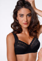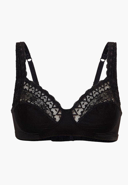 Reggiseno intimo LOVABLE 5240 senza ferretto della linea Lov'Ring in morbido cotone jacquard e sovracoppe in pizzo elasticizzato. Molto comodo, perfetto da indossare ogni giorno garantendoti aderenza e comfort con un tocco di raffinatezza e sensualità. Disponibile anche in Coppa D.