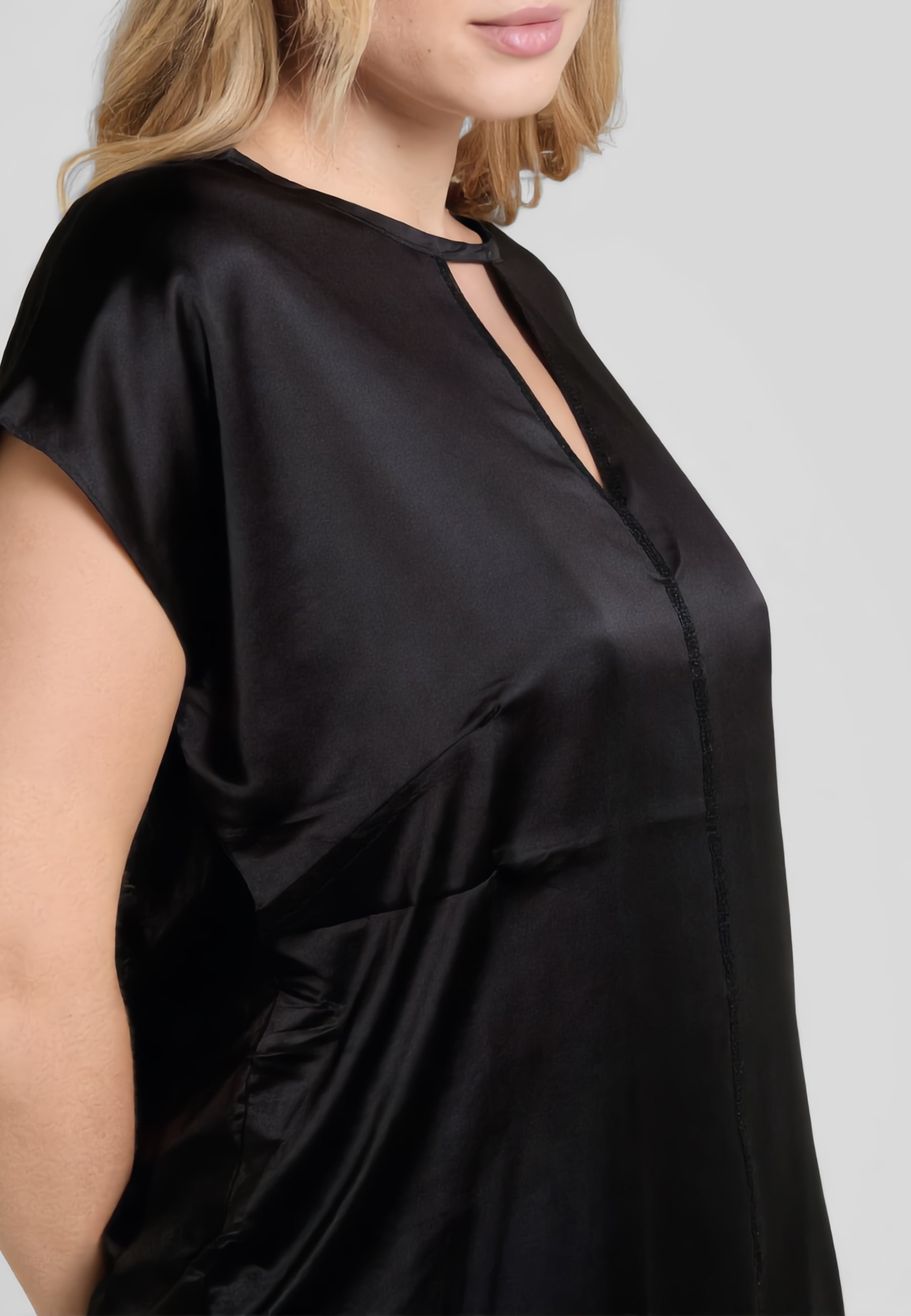 Maglia donna curvy Luisa Viola in viscosa elasticizzata con apertura a goccia e dettagli luminosi, ideale per comfort e femminilità.