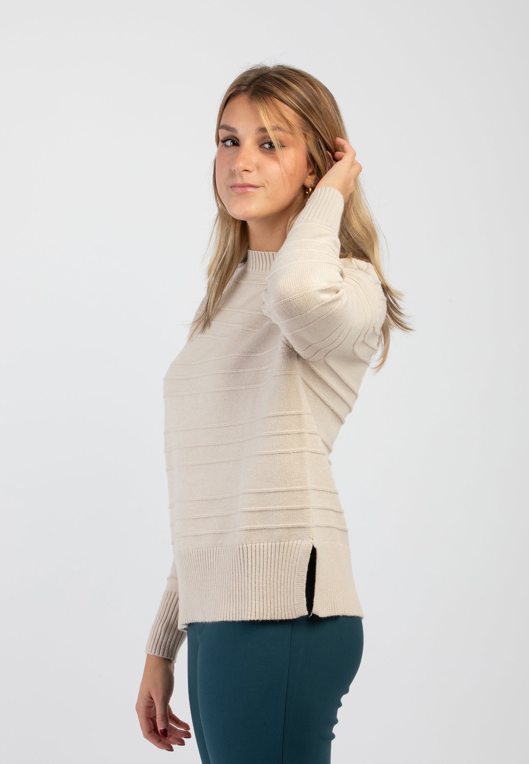 La maglia girocollo Ragno Donna è realizzata in un morbido e caldo misto viscosa, con una fantasia a righe a rilievo che dona profondità e dinamicità al capo. Il modello presenta spacchetti laterali e una vestibilità boxy, garantendo comfort e libertà di movimento per tutte le fisicità. Combinata con un Ragno Pants, aggiunge personalità e stile al tuo guardaroba.