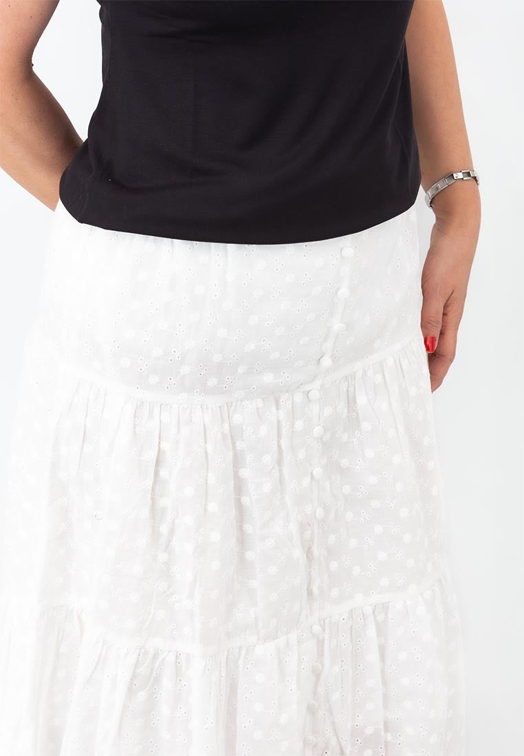 Il gonnellone con finta apertura firmato MOLLY BRACKEN è un capo dallo stile romantico e senza tempo, perfetto per affrontare la bella stagione con leggerezza e femminilità. Realizzato in tessuto sangallo 100% cotone, questo modello unisce comfort e freschezza, garantendo traspirabilità e morbidezza al tatto. Il design curato nei dettagli e la lavorazione traforata conferiscono un’eleganza naturale, mentre la finta apertura frontale aggiunge un tocco originale e ricercato. Ideale per creare look casual chic o più sofisticati a seconda degli abbinamenti, è un capo versatile che non può mancare nel guardaroba estivo di chi ama distinguersi con discrezione e stile.