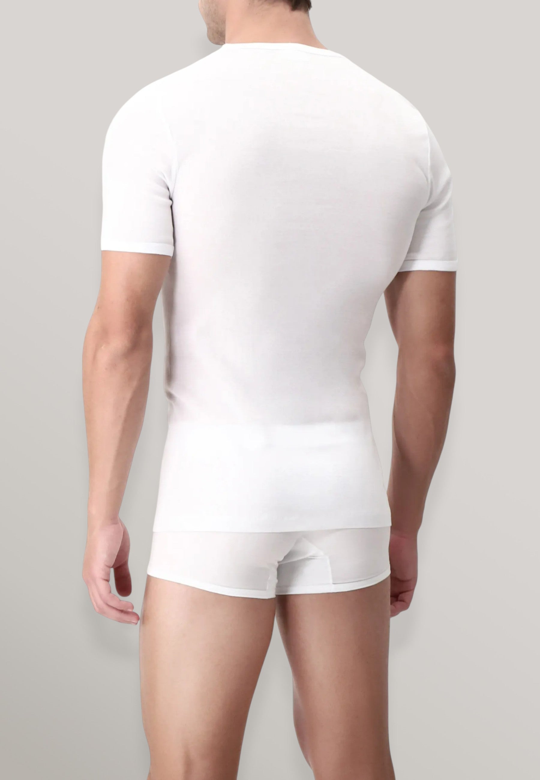 T-shirt manica corta articolo COLLO A V VPRT00008 . Realizzata in 100% filo di scozia ultra fine, il filato più nobile per l'intimo maschile che dona al capo massima morbidezza, lucentezza, resistenza e freschezza. Vestibilità impeccabile senza cuciture laterali che offrono il massimo comfort. Invisibile sotto le camicie. ( Il prezzo si riferisce alla confezione da 3 T-shirt ).