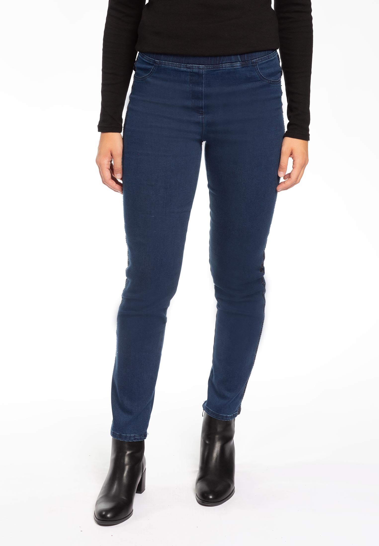 Esalta il tuo stile con il Pantajeans con Strass CARLA FERRONI 17436 made in Italy, disponibile nel nostro esclusivo e-commerce di abbigliamento. Questo capo unisce l'artigianalità italiana alla comodità moderna, grazie all'elastico in vita che garantisce vestibilità ideale. I dettagli in strass aggiungono una nota di glamour, rendendo questo pantalone versatile per ogni occasione. Scopri l'eleganza senza sforzo con il nostro Pantajeans CARLA FERRONI 17436.
