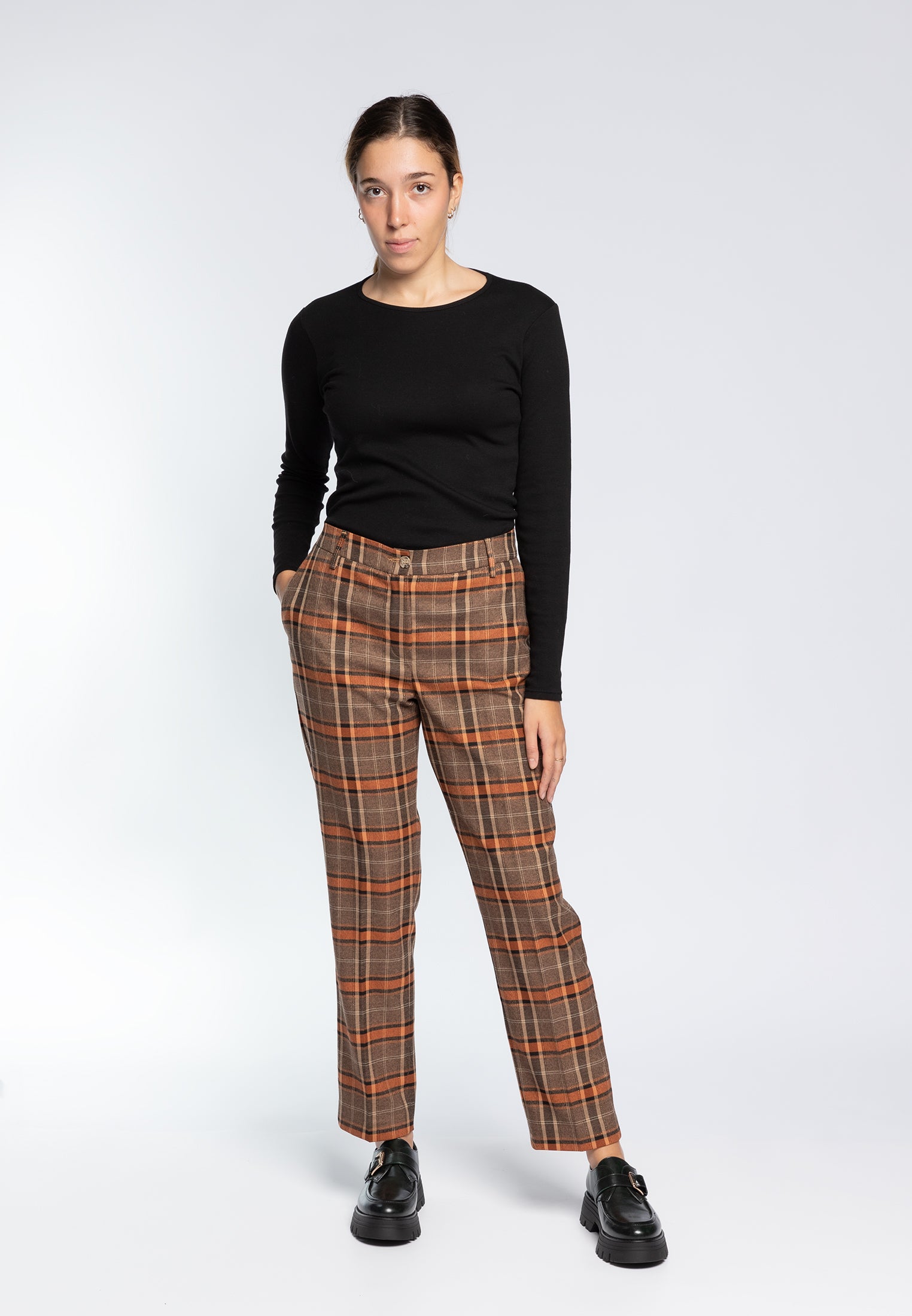 Esplora il nostro esclusivo Pantalone Sigaretta a quadri scozzese da donna, modello MARKUP MW565136, perfetto per un look elegante e alla moda. Dotato di una vita con chiusura a bottone e zip e passanti, questo pantalone offre comfort e stile senza compromessi. Le tasche laterali all'italiana aggiungono praticità al tuo outfit.