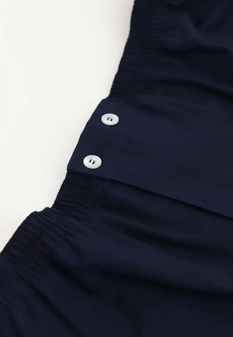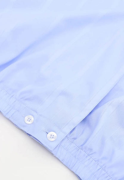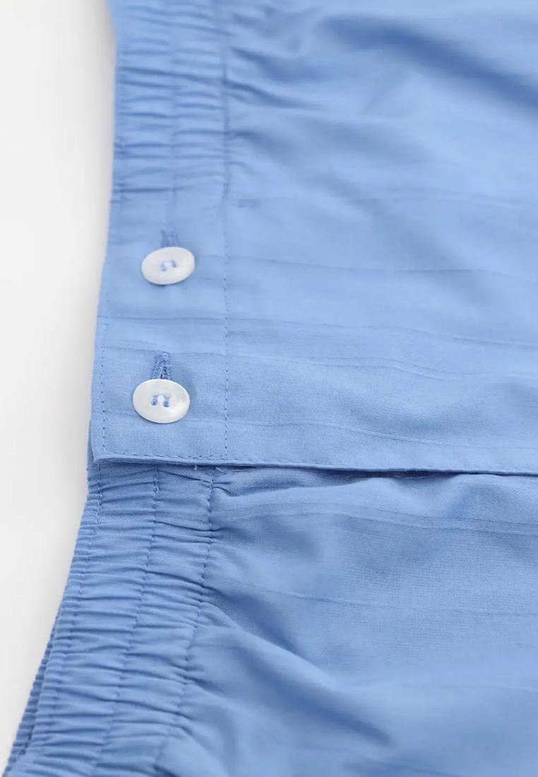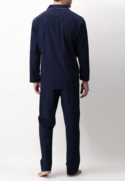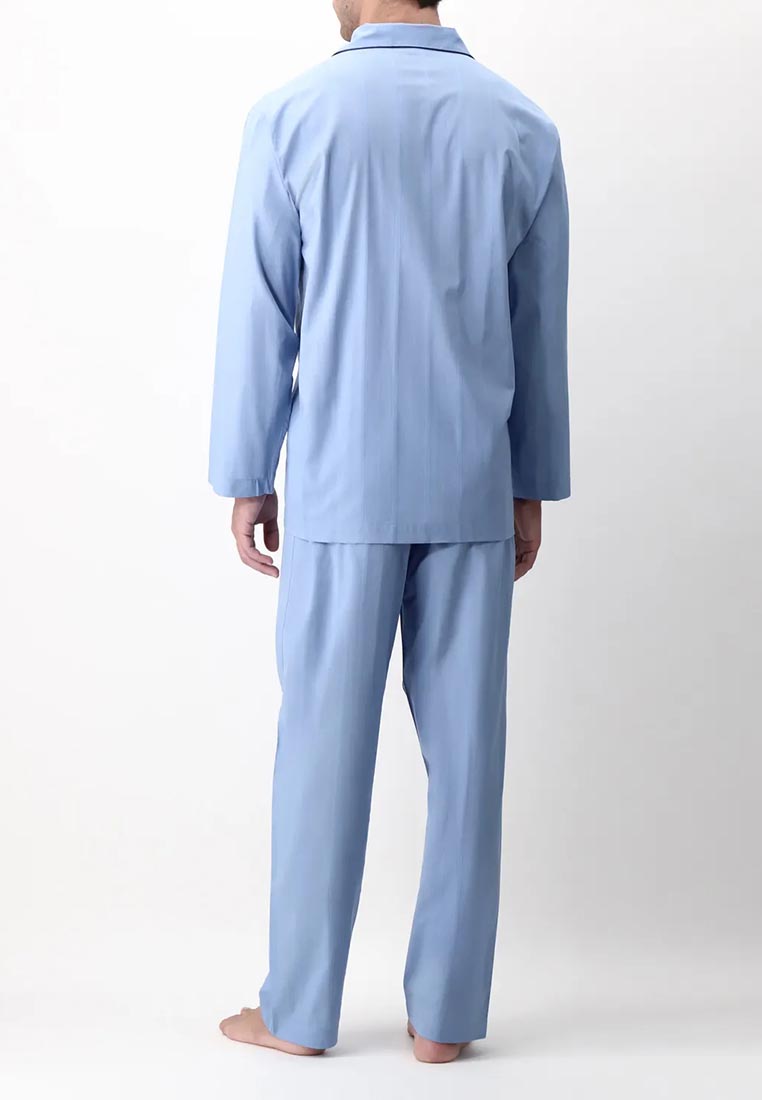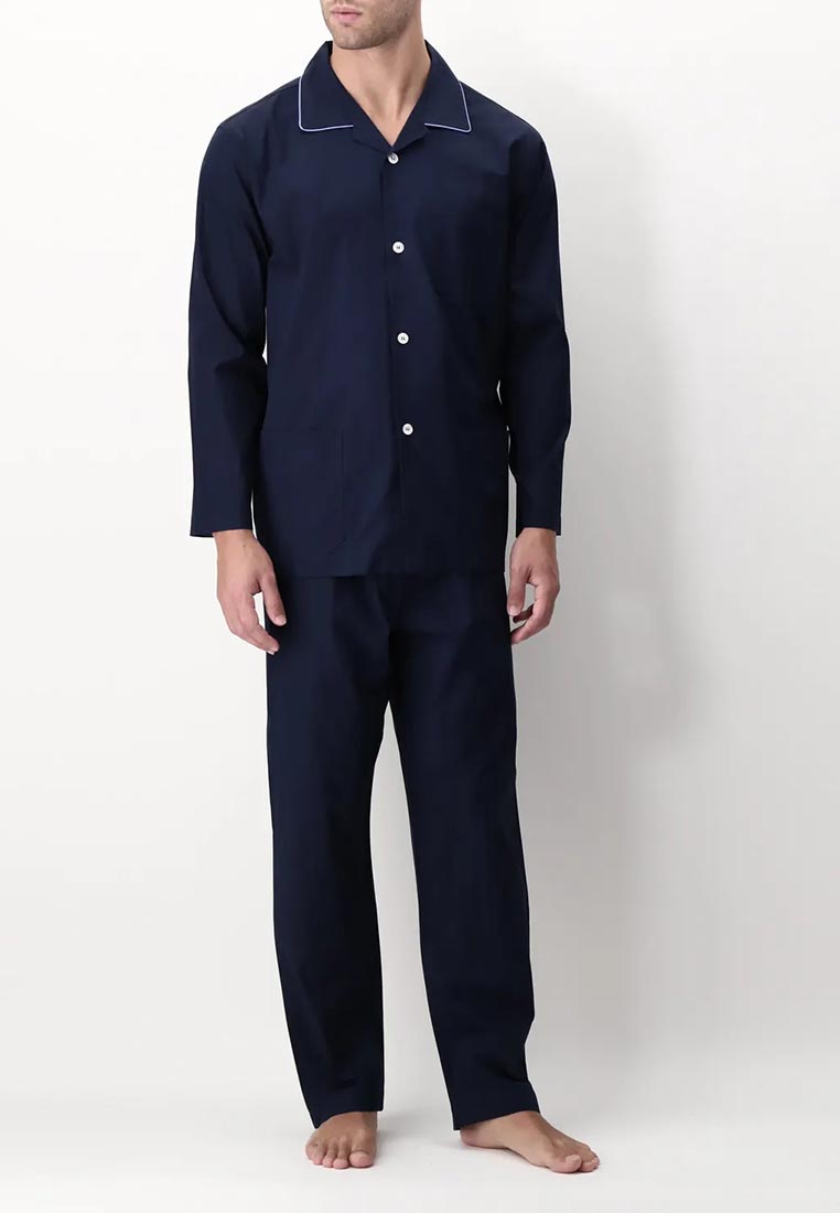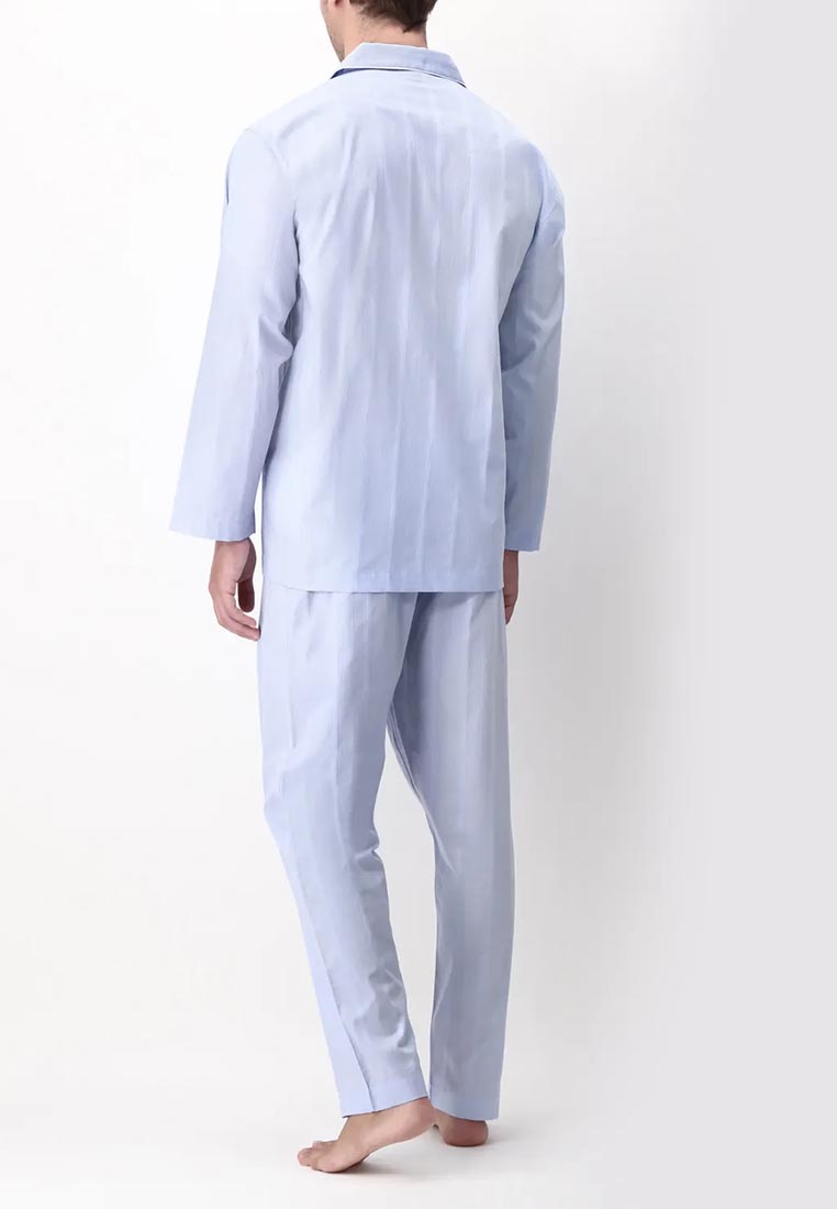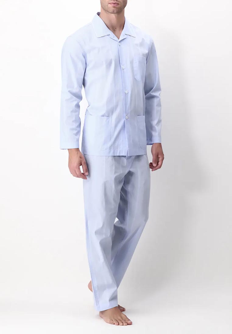 Classico pigiama in pregiato popeline riga raso di cotone, comodo ed elegante. La casacca è a maniche lunghe con collo con profilo di raso, aperta con bottoni e con tre taschine. Il pantalone lungo ha una vestibilità comoda, è aperto con patta, vita con elastico ricoperto e due bottoni per la regolazione della circonferenza vita.