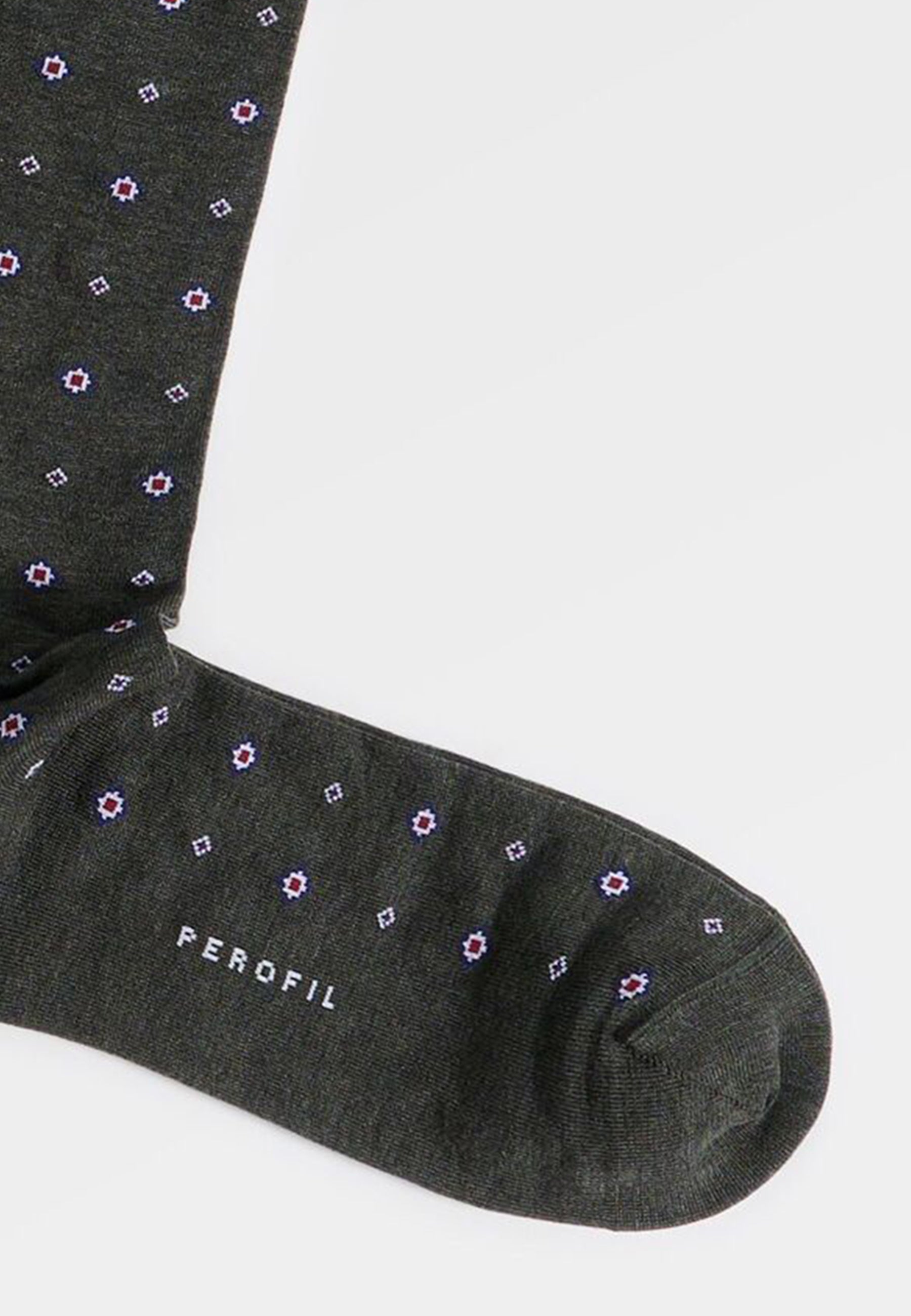 Calza lunga uomo Perofil in cotone leggero con fantasia cravattiera, ideale per comfort quotidiano e stile curato.