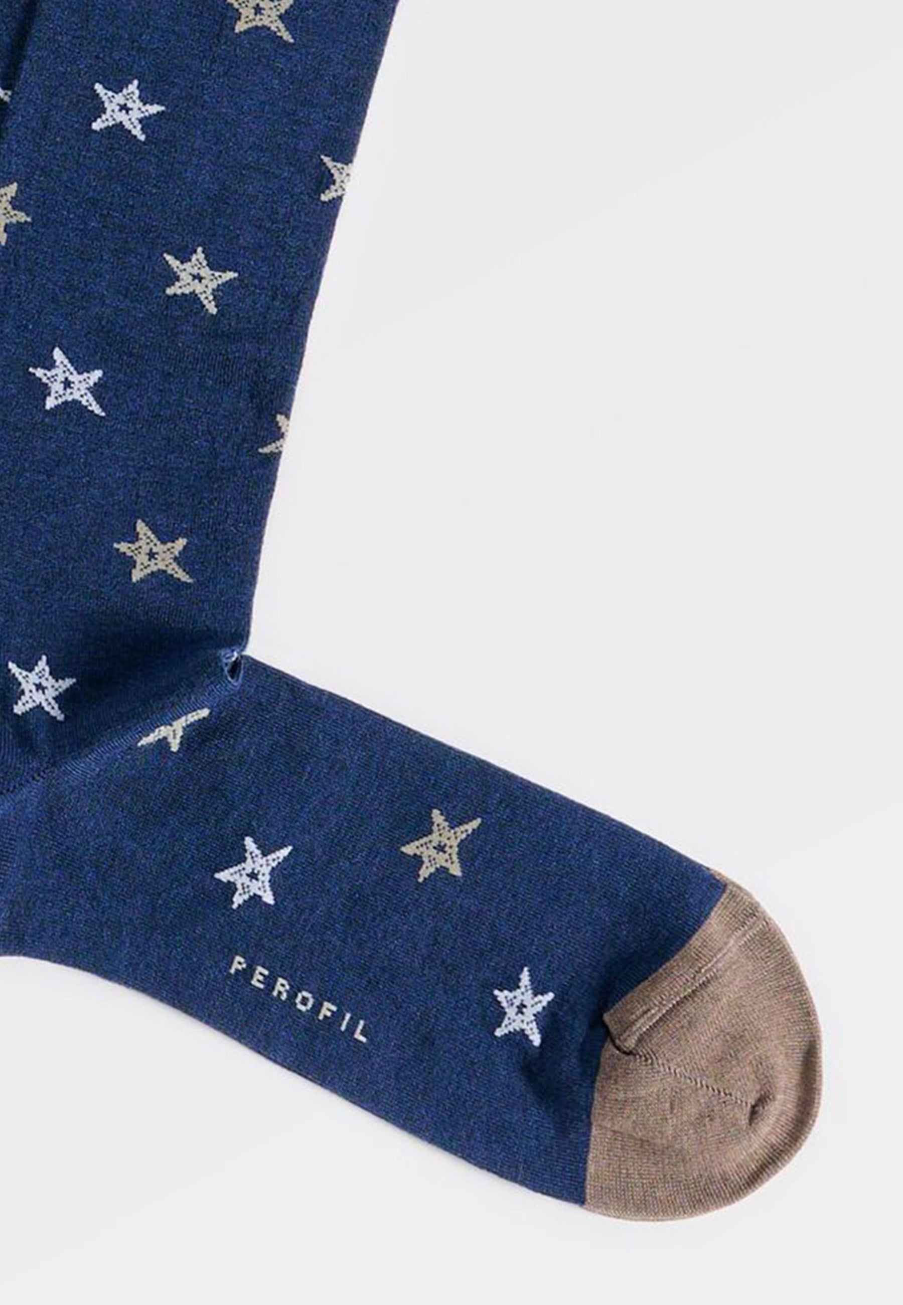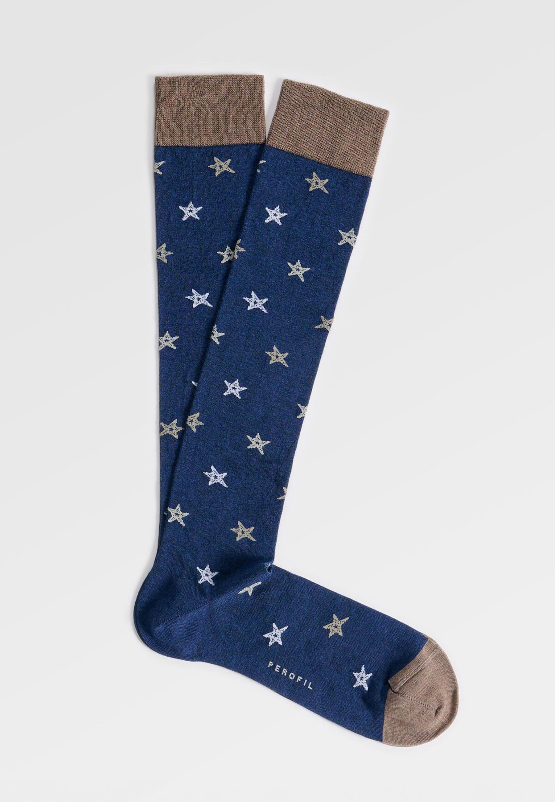 Calza lunga uomo Perofil in cotone leggero con fantasia stelle marine, pensata per comfort quotidiano e stile curato.