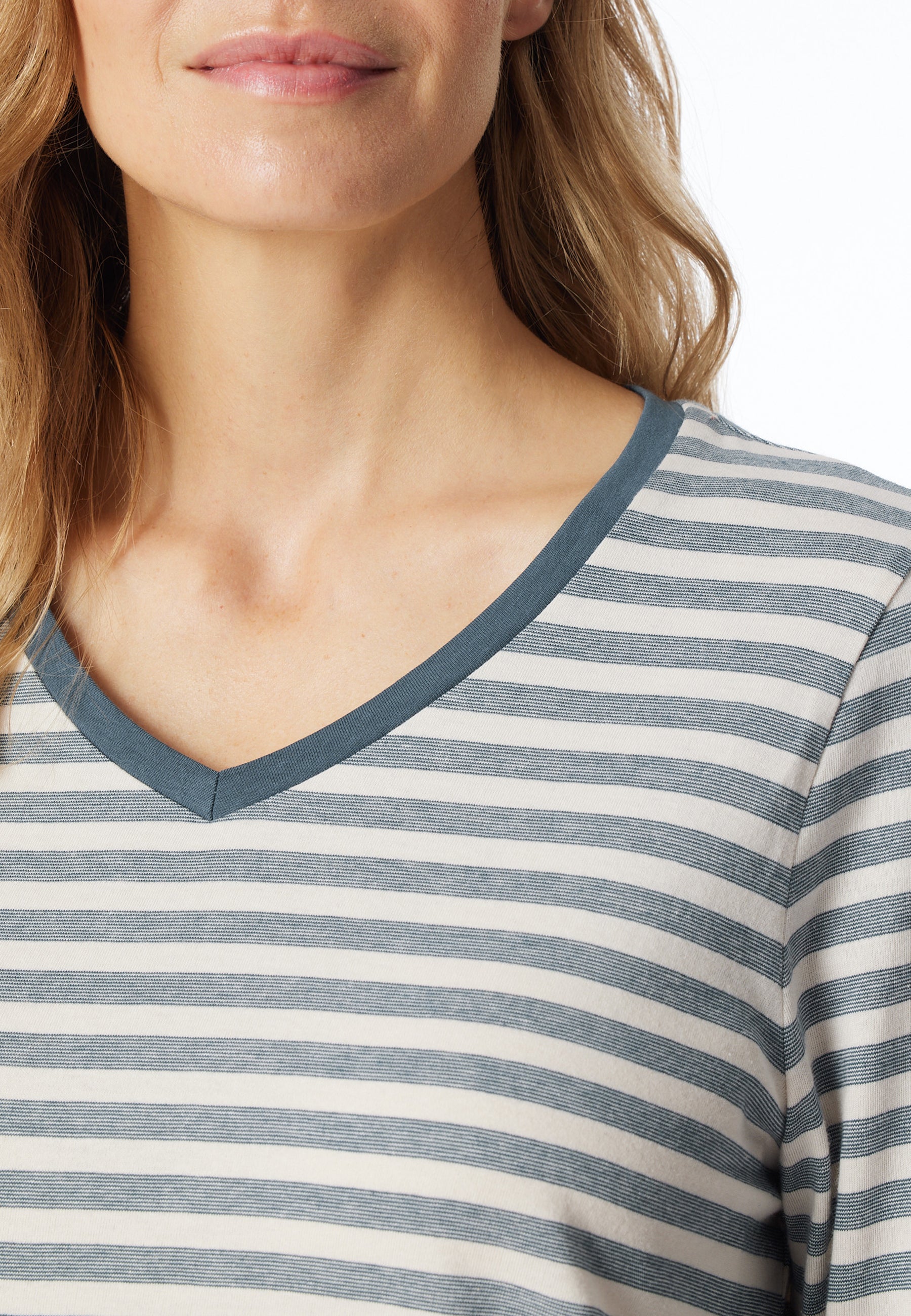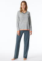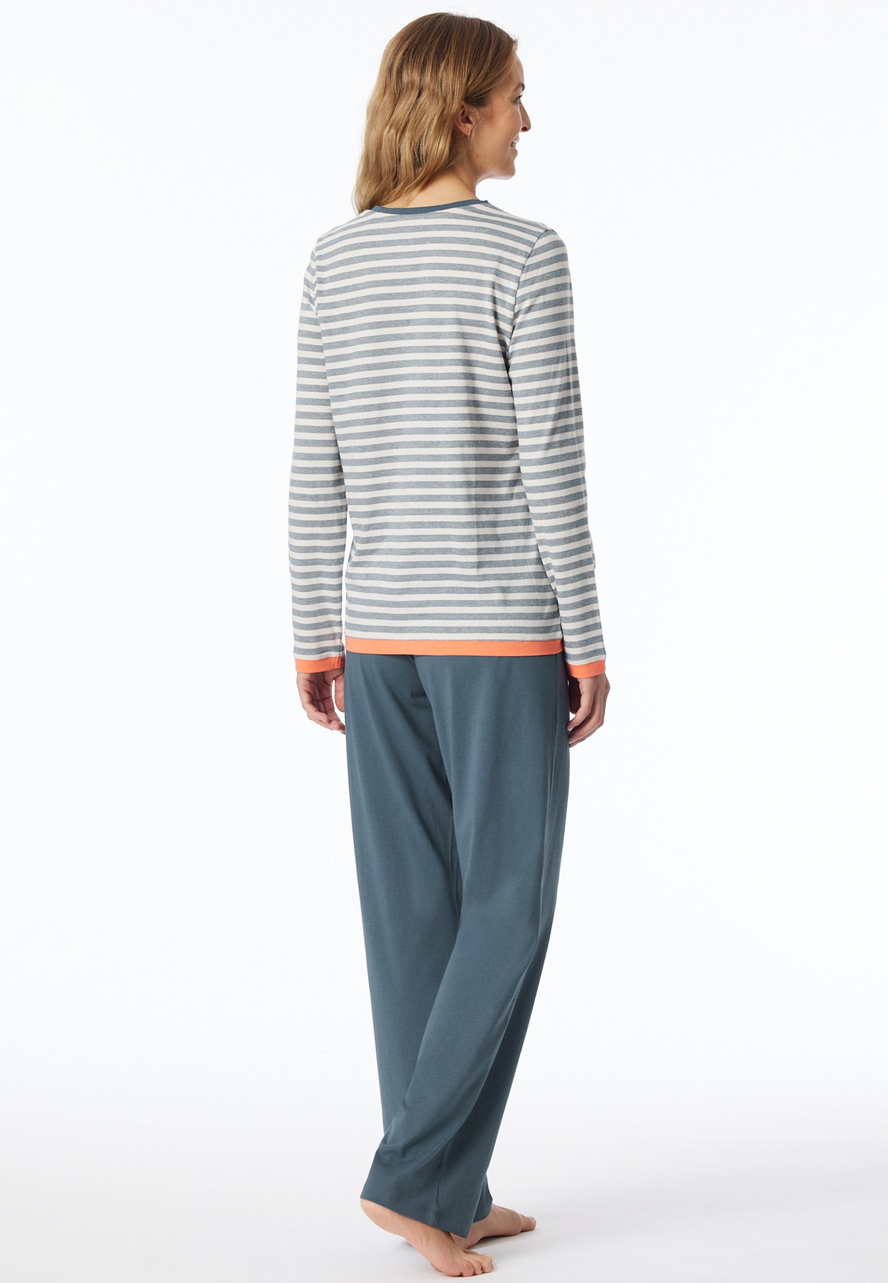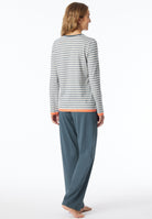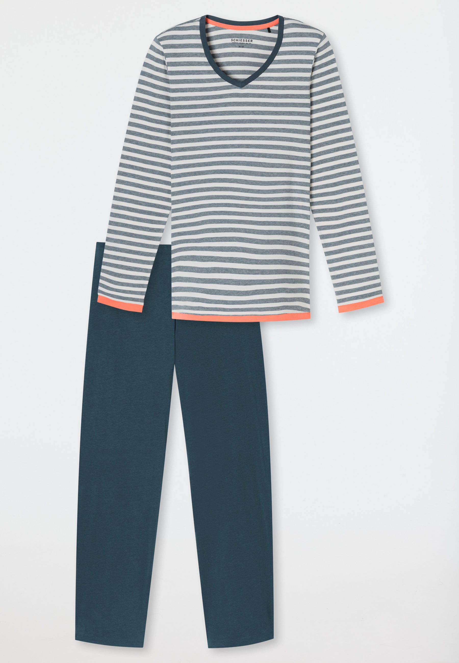 Il pigiama interlock di alta qualità tedesca Schiesser è realizzato in puro cotone leggermente felpato per offrire il massimo comfort durante il tuo riposo. Con il suo girocollo e le maniche lunghe, ti terrà al caldo durante la notte. Goditi la sua morbidezza e il suo design rigato per un look elegante e rilassato.