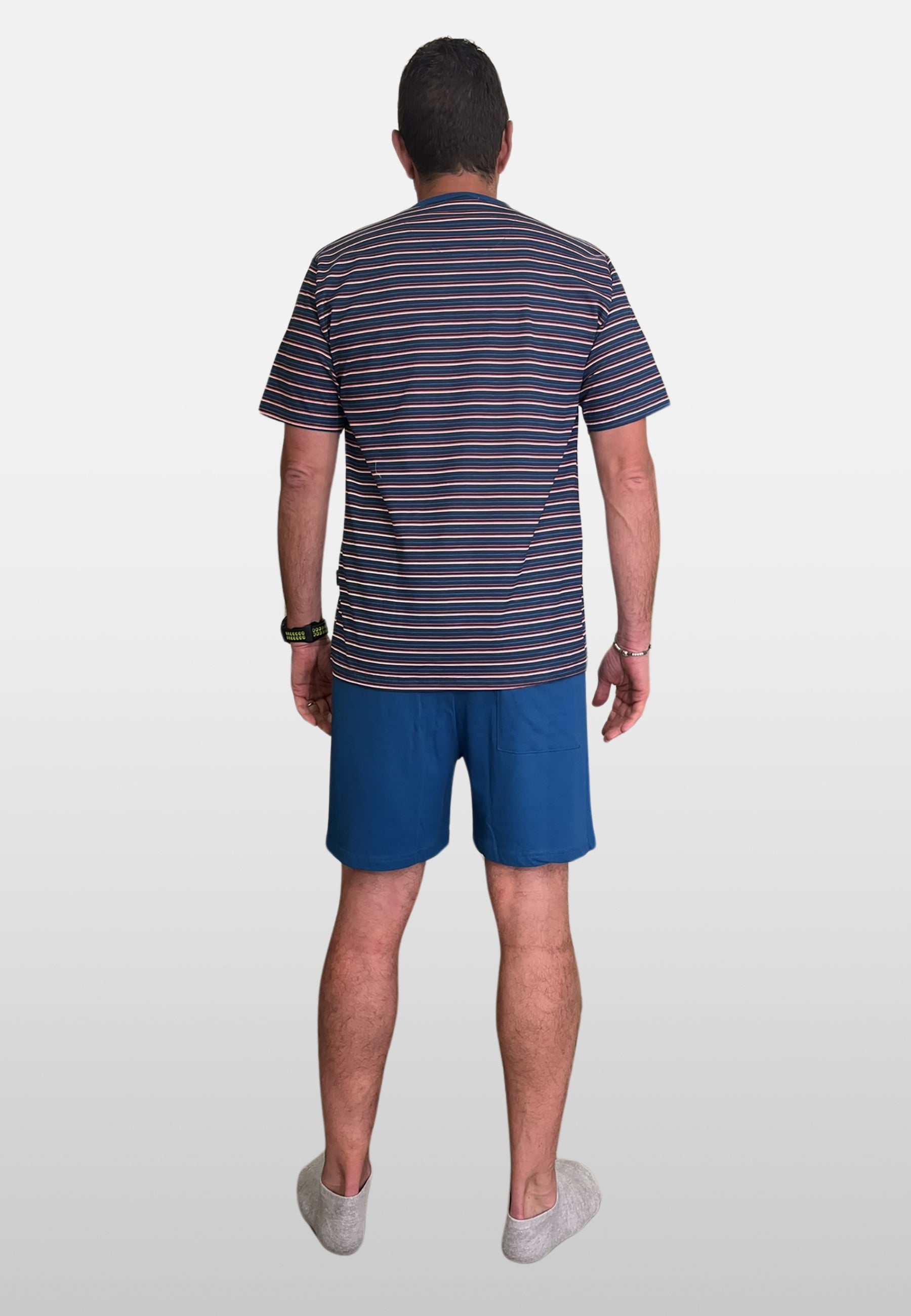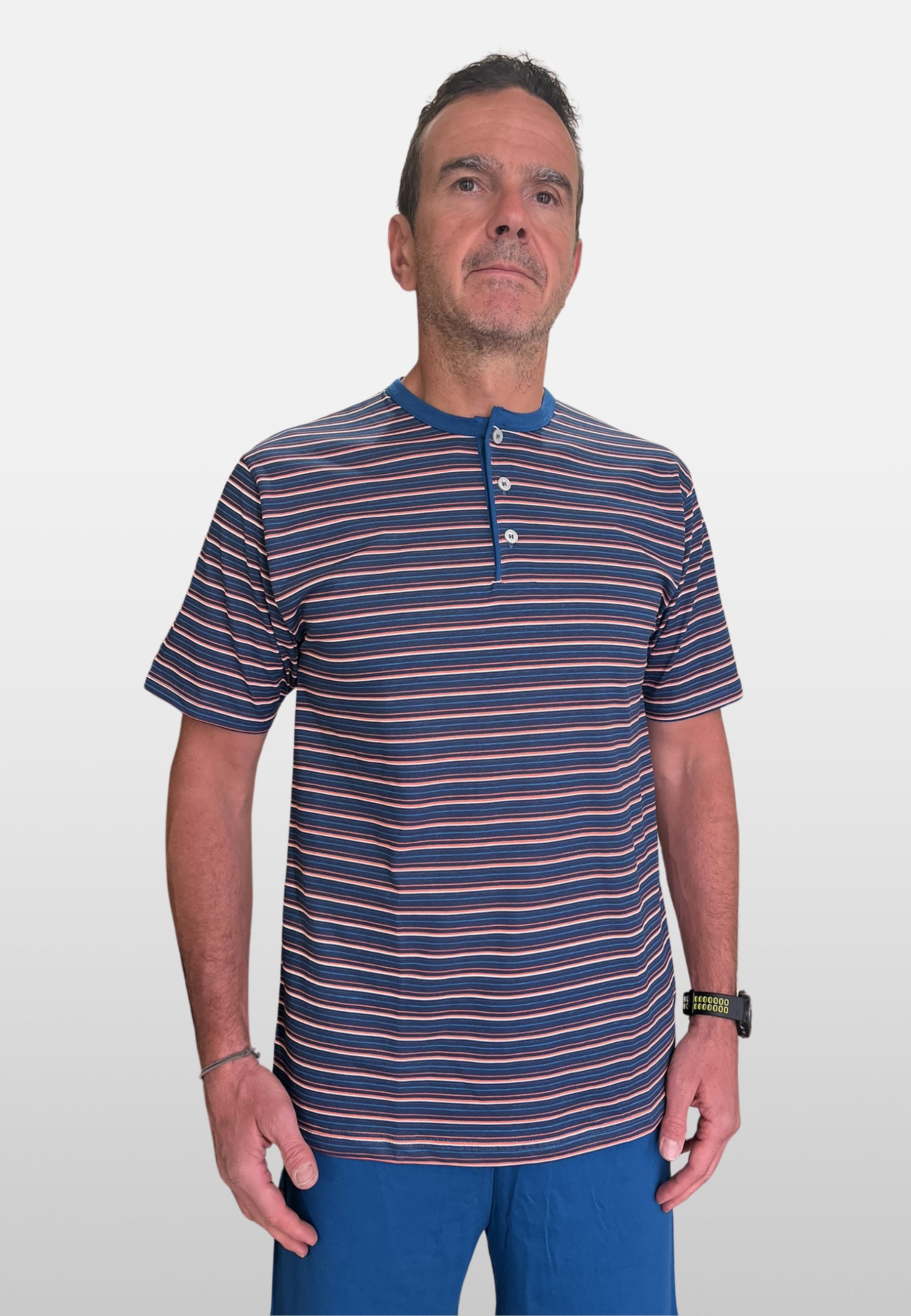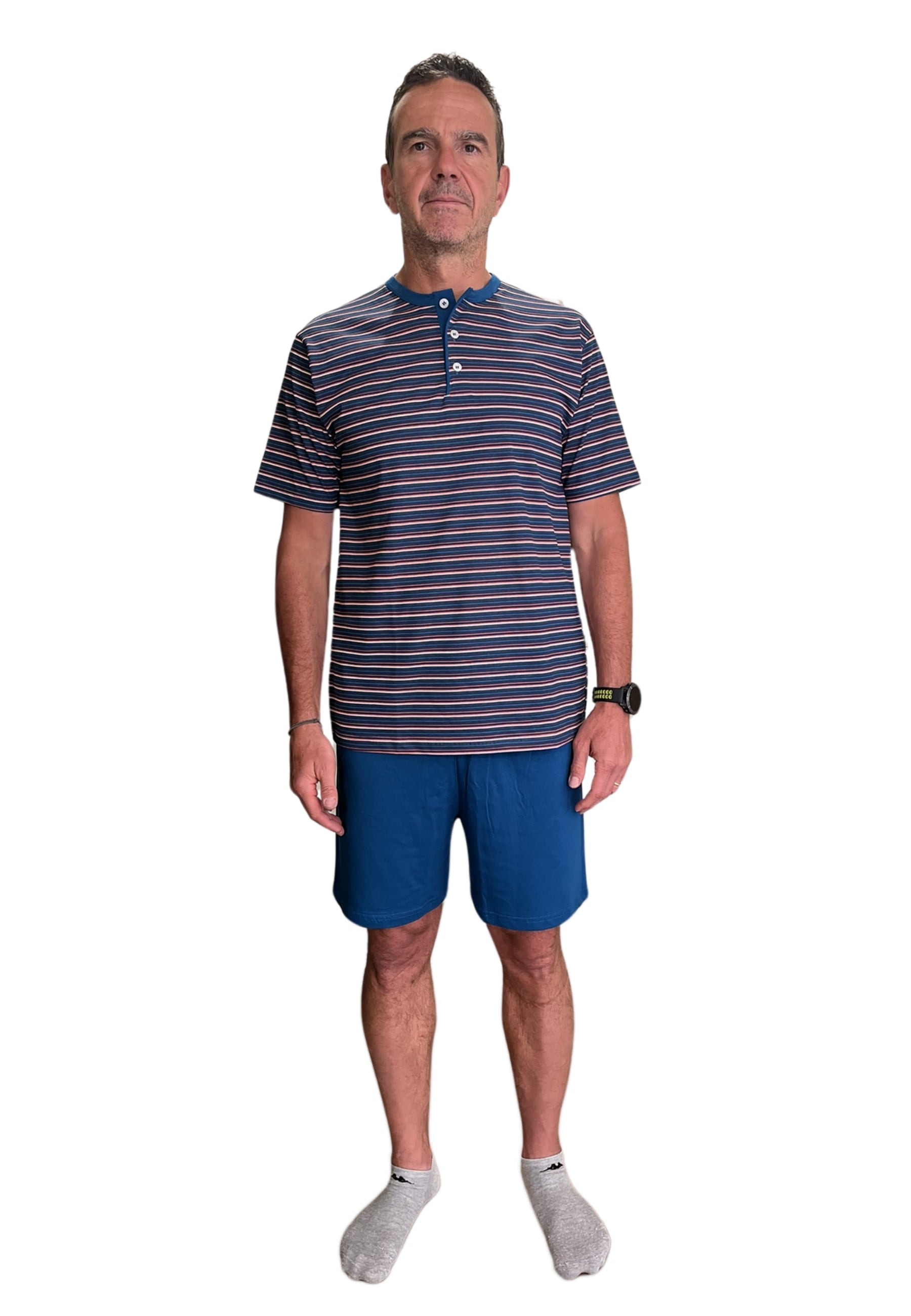 Ottimizza il tuo sonno con il nostro pigiama leggero in morbido cotone. Questo pigiama uomo in maglina corto con mezze maniche ti offre il massimo comfort e freschezza durante le notti calde. Addormentati in tutta tranquillità e svegliati rigenerato ogni mattina. Capo prodotto in Italia. Made in Italy.