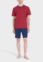 Il pigiama da uomo in jersey di cotone di RAGNO combina comfort e stile per garantire un riposo ottimale in ogni stagione. La maglia a manica corta con collo a serafino presenta una fantasia moderna e ricercata, perfetta per chi ama dettagli distintivi anche nei capi da notte. Il pantalone corto in tinta unita, dotato di una pratica tasca posteriore, offre una vestibilità comoda e funzionale. Realizzato in morbido jersey di cotone, questo pigiama assicura una sensazione di freschezza e leggerezza sulla pelle, ideale per le notti più calde. Un capo essenziale per chi cerca qualità, praticità e un tocco di eleganza anche nei momenti di relax.