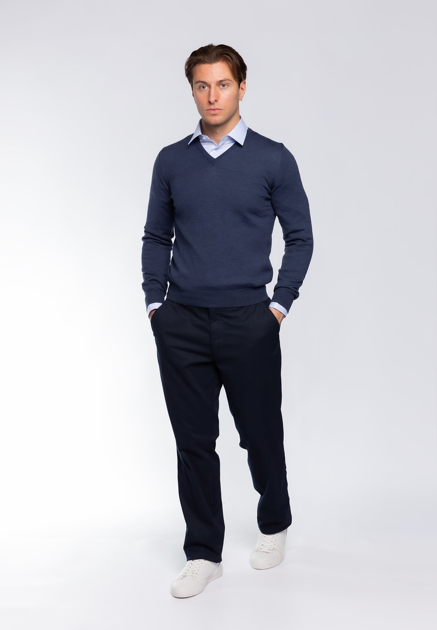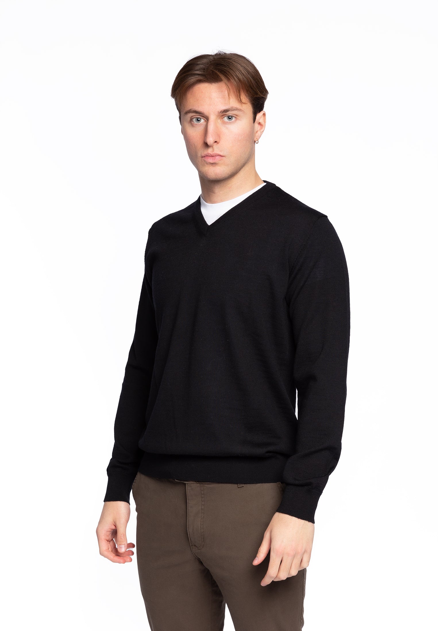 Elegante maglia a scollo a V realizzata con pregiata lana merinos 100% made in Italy. la lavorazione tinto in filo garantisce una colorazione vibrante e duratura alla maglia, dalla vestibilità classica, perfetta per un look moderno ed elegante. Con il suo peso sottogiacca ottimale, questa maglia è l'ideale per aggiungere un tocco di raffinatezza al tuo stile. Esplora la nostra collezione di prodotti in pura lana merinos made in Italy per un comfort e uno stile senza compromessi.