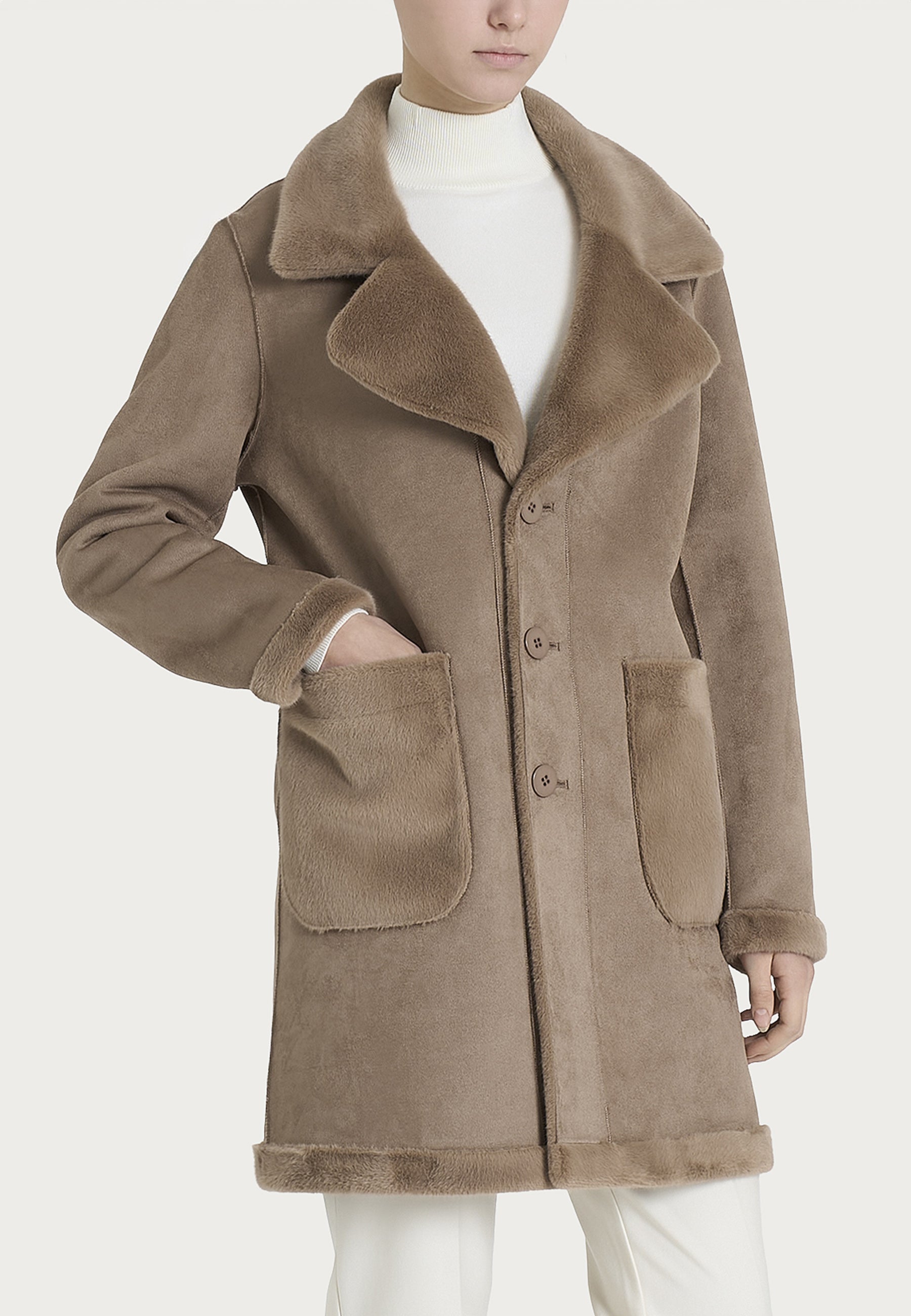 L'ecomontone da donna firmato RAGNO unisce stile, comfort e sostenibilità in un capo di tendenza perfetto per la stagione fredda. Realizzato con materiali ecologici, presenta una lunghezza media che valorizza la figura e garantisce protezione dal freddo. L’interno è interamente foderato in morbida ecopelliccia, calda e avvolgente, pensata per offrire una sensazione di comfort durante tutta la giornata. Le tasche applicate, anch'esse rifinite in ecopelliccia, aggiungono un tocco pratico ed elegante, completando il look con cura dei dettagli. Ideale per chi cerca un’alternativa cruelty-free senza rinunciare alla qualità e all’eleganza distintiva del brand RAGNO.