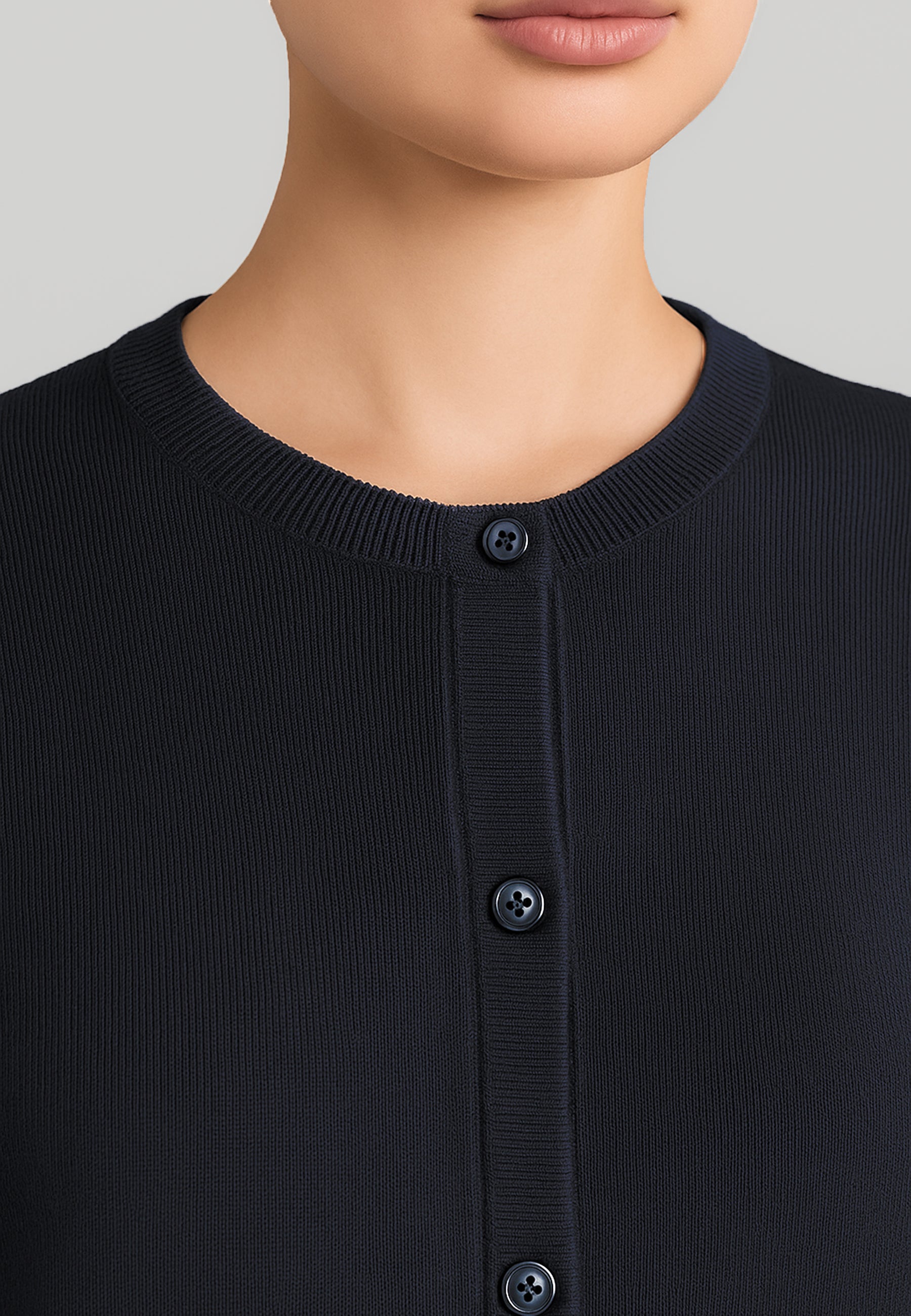 Il cardigan con collo alla coreana di RAGNO unisce eleganza senza tempo e comfort raffinato, perfetto per affrontare le giornate più fresche con stile. Realizzato in una pregiata maglia che combina viscosa, lana e angora, offre una texture morbida e avvolgente al tatto, garantendo calore e traspirabilità. La silhouette pulita è arricchita da una chiusura frontale con bottoni, che conferisce un tocco classico e versatile, adatto sia ad abbinamenti casual che a look più sofisticati. Il design essenziale valorizza la qualità dei materiali e l’attenzione ai dettagli tipica del brand, rendendo questo capo un must-have del guardaroba femminile.
